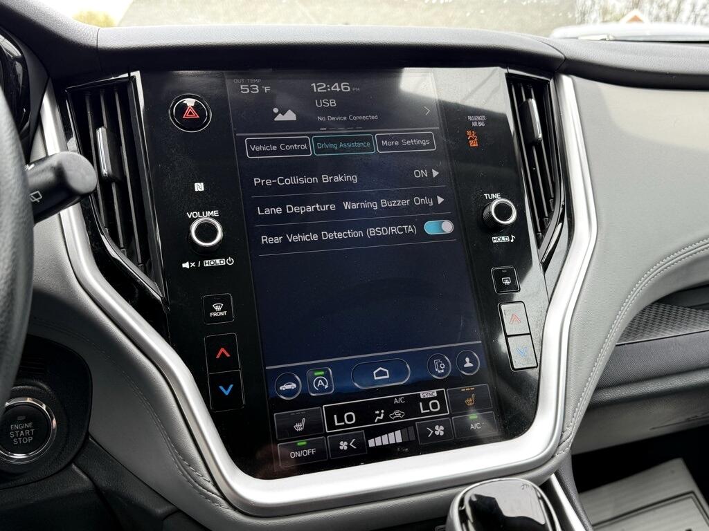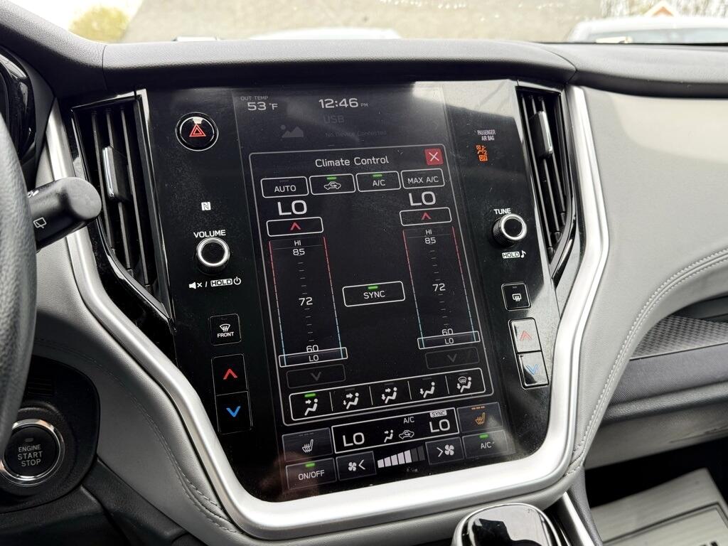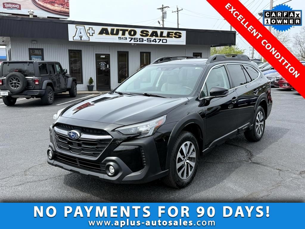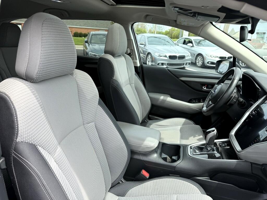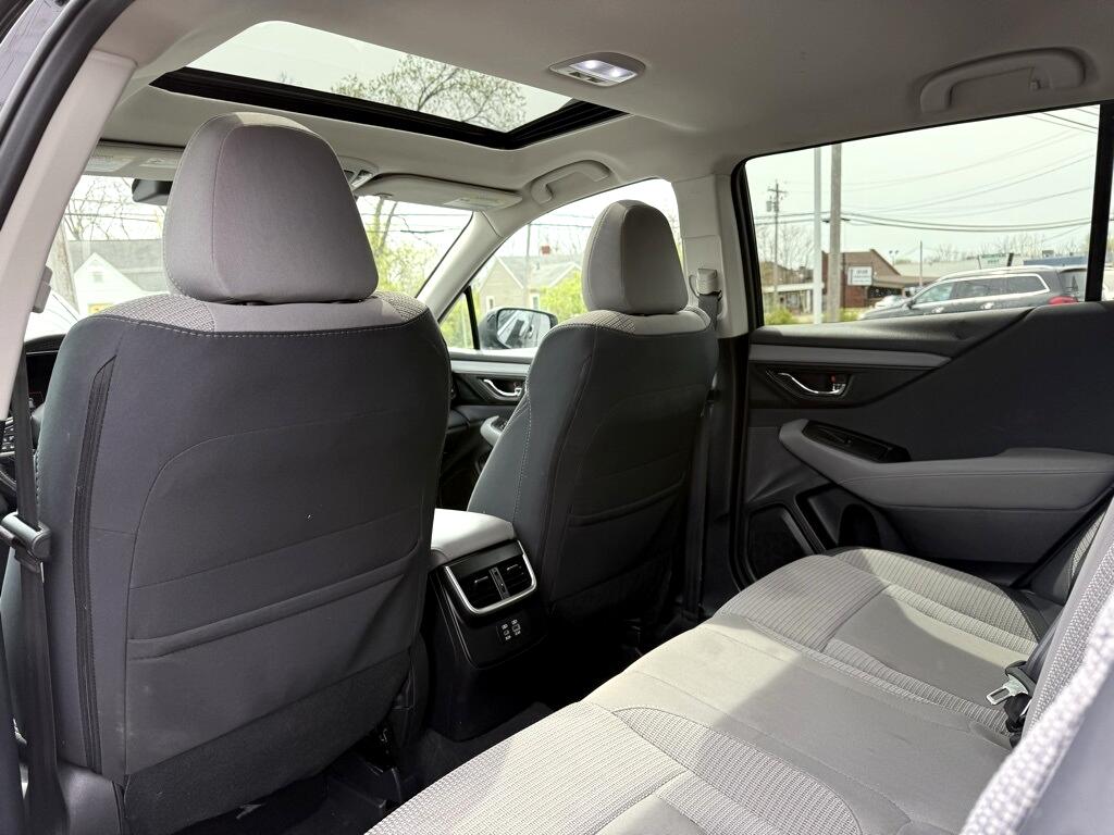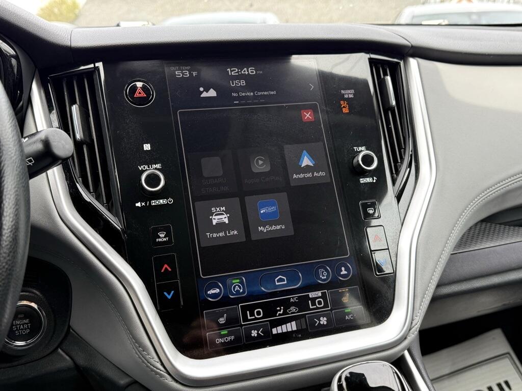 Outback Premium, 4D Sport Utility, 2.5L 4-Cylinder DOHC 16V, CVT Lineartronic, AWD, Black, Gray Cloth, 3.90 Axle Ratio, 4-Wheel Disc Brakes, 6 Speakers, ABS brakes, Air Conditioning, Alloy wheels, AM/FM radio: SiriusXM, Auto High-beam Headlights, Automatic temperature control, Brake assist, Bumpers: body-color, Cloth Upholstery, Driver door bin, Driver vanity mirror, Dual front impact airbags, Dual front side impact airbags, Electronic Stability Control, Emergency communication system: STARLINK Safety Plus (3-year free trial), Exterior Parking Camera Rear, Four wheel independent suspension, Front anti-roll bar, Front Bucket Seats, Front Center Armrest w/Storage, Front dual zone A/C, Front fog lights, Front reading lights, Fully automatic headlights, Heated door mirrors, Heated Front Bucket Seats, Heated front seats, Illuminated entry, Knee airbag, Leather Shift Knob, Leather steering wheel, Low tire pressure warning, Occupant sensing airbag, Outside temperature display, Overhead airbag, Overhead console, Panic alarm, Passenger door bin, Passenger vanity mirror, Power door mirrors, Power driver seat, Power steering, Power windows, Radio: Subaru STARLINK 11.6" Multimedia Plus Sys, Rear anti-roll bar, Rear seat center armrest, Rear window defroster, Rear window wiper, Remote keyless entry, Roof rack, Security system, Speed control, Speed-sensing steering, Split folding rear seat, Spoiler, Steering wheel mounted audio controls, Steering Wheel Paddle Shift Control Switches, Tachometer, Telescoping steering wheel, Tilt steering wheel, Traction control, Trip computer, Turn signal indicator mirrors, Variably intermittent wipers, Wheels: 17" x 7J Black Aluminum Alloy, Outback Premium, 4D Sport Utility, 2.5L 4-Cylinder DOHC 16V, CVT Lineartronic, AWD, Black, Gray Cloth.