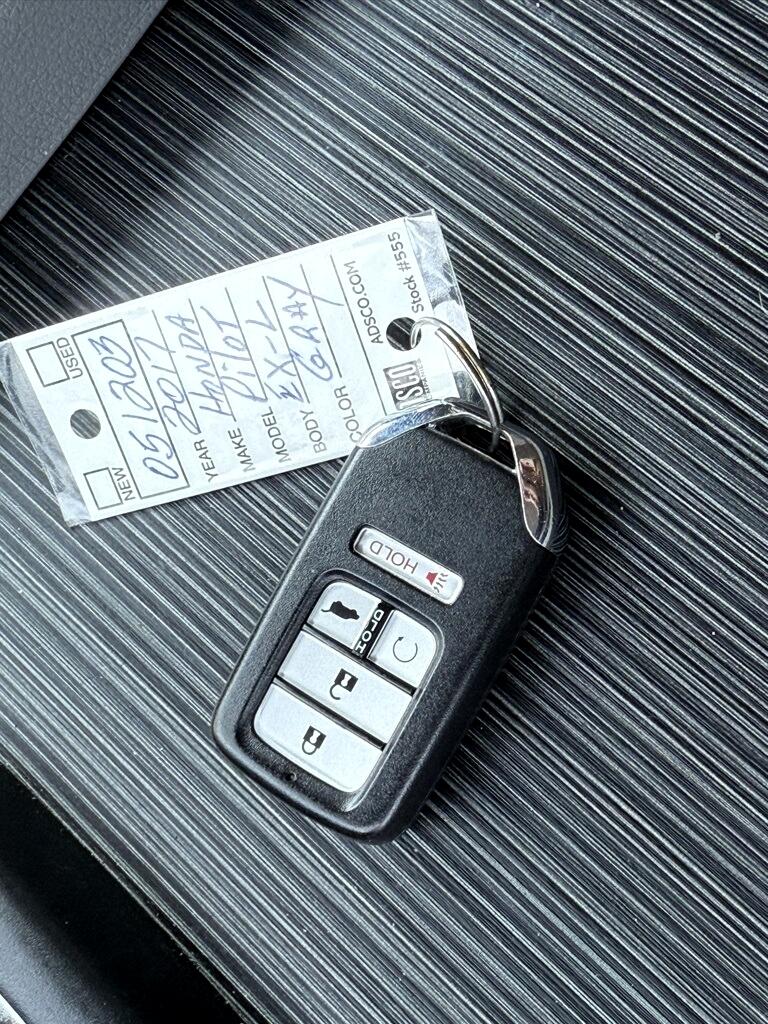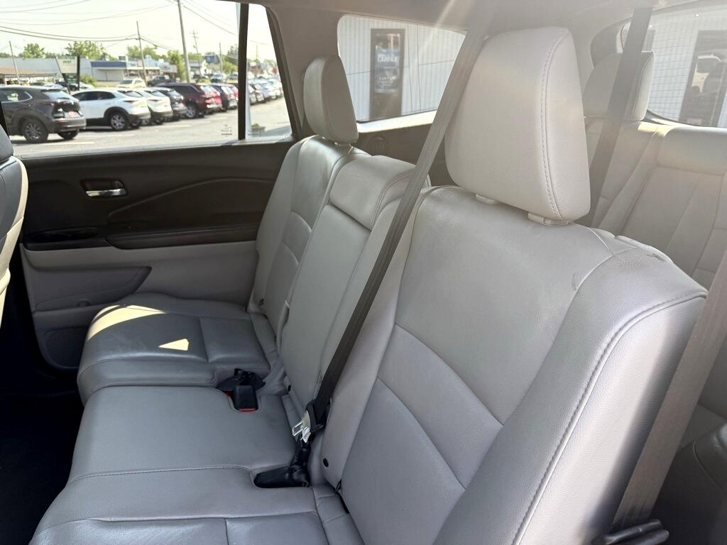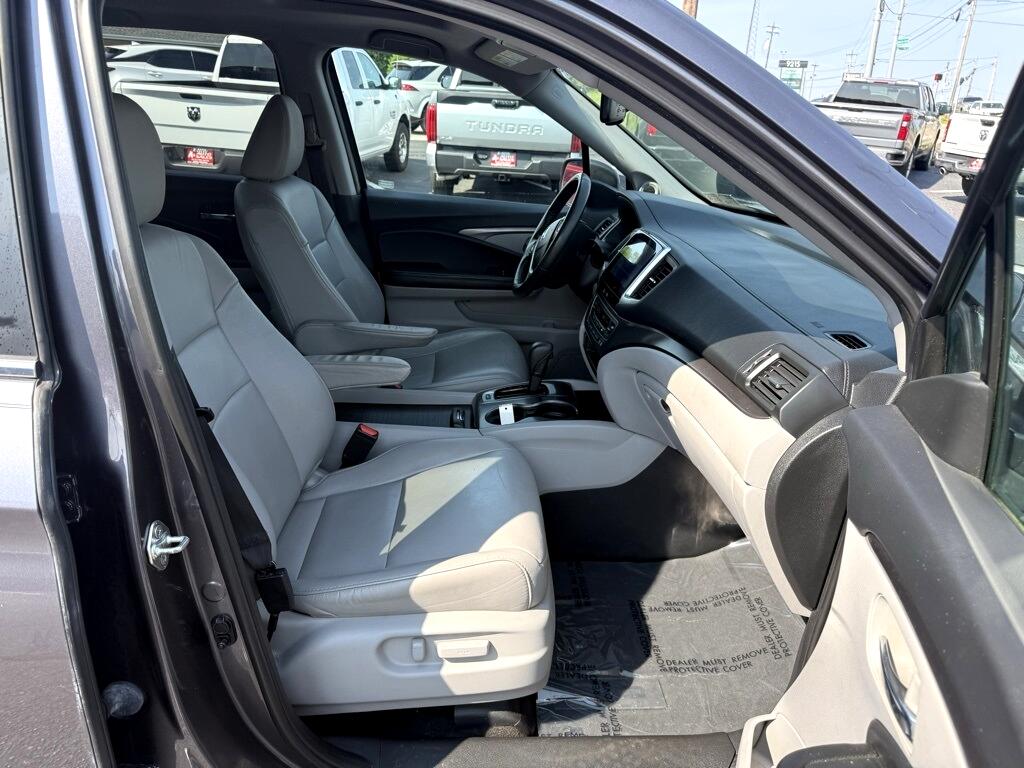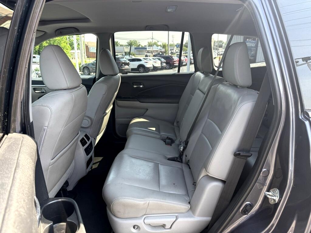Pilot EX-L, 4D Sport Utility, 3.5L V6 24V SOHC i-VTEC, 6-Speed Automatic, AWD, Gray, Black Leather, 18" Alloy Wheels, 3rd row seats: split-bench, 4-Wheel Disc Brakes, 4.25 Axle Ratio, 7 Speakers, ABS brakes, Air Conditioning, Alloy wheels, AM/FM radio: SiriusXM, Apple CarPlay/Android Auto, Auto-dimming Rear-View mirror, Automatic temperature control, Brake assist, Bumpers: body-color, Compass, Delay-off headlights, Driver door bin, Driver vanity mirror, Dual front impact airbags, Dual front side impact airbags, Electronic Stability Control, Emergency communication system: HondaLink Assist, Exterior Parking Camera Rear, Four wheel independent suspension, Front anti-roll bar, Front Bucket Seats, Front Center Armrest, Front dual zone A/C, Front fog lights, Front reading lights, Fully automatic headlights, Garage door transmitter: HomeLink, Heated door mirrors, Heated Front Bucket Seats, Heated front seats, Illuminated entry, Leather Shift Knob, Leather-Trimmed Seats, Low tire pressure warning, Occupant sensing airbag, Outside temperature display, Overhead airbag, Overhead console, Panic alarm, Passenger door bin, Passenger vanity mirror, Power door mirrors, Power driver seat, Power Liftgate, Power moonroof, Power passenger seat, Power steering, Power windows, Radio data system, Radio: AM/FM Audio System, Rear air conditioning, Rear anti-roll bar, Rear reading lights, Rear seat center armrest, Rear window defroster, Rear window wiper, Remote keyless entry, Security system, SiriusXM Radio, Speed control, Speed-sensing steering, Speed-Sensitive Wipers, Split folding rear seat, Spoiler, Steering wheel mounted audio controls, Tachometer, Telescoping steering wheel, Tilt steering wheel, Traction control, Trip computer, Variably intermittent wipers, Pilot EX-L, 4D Sport Utility, 3.5L V6 24V SOHC i-VTEC, 6-Speed Automatic, AWD, Gray, Black Leather.