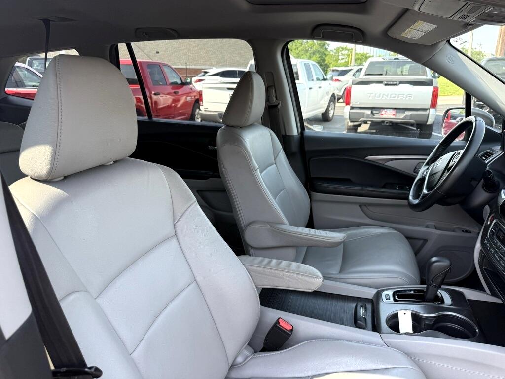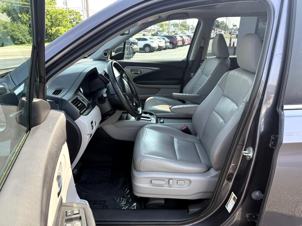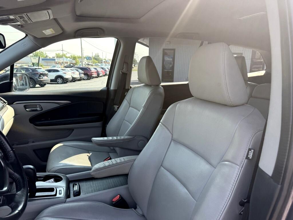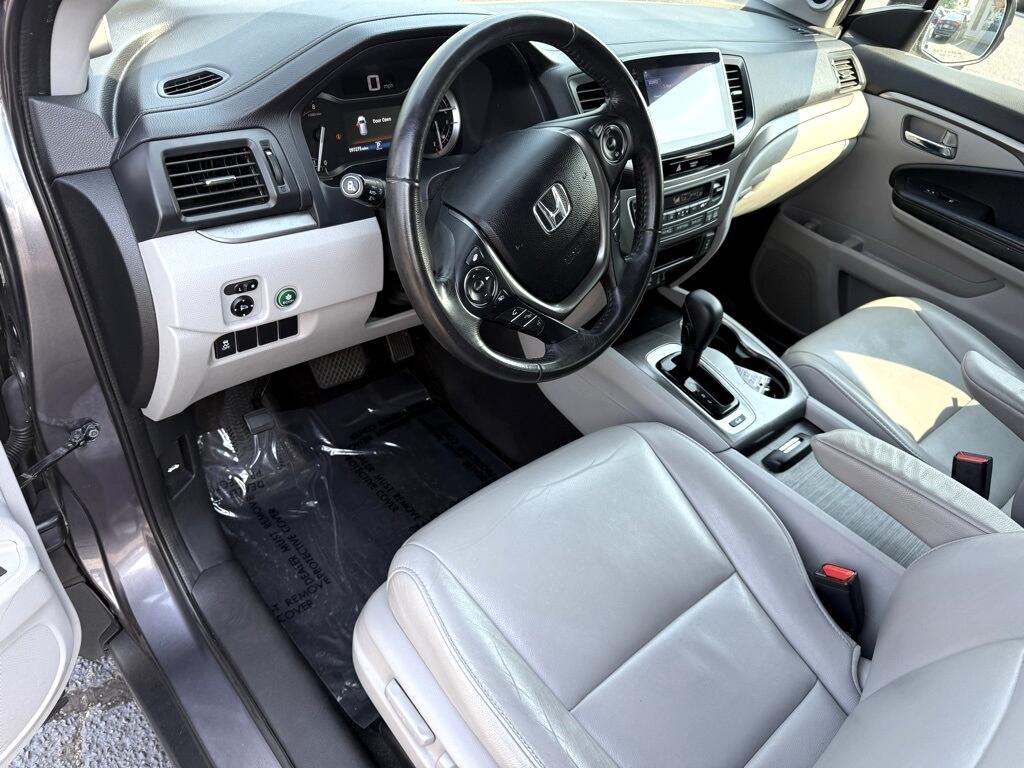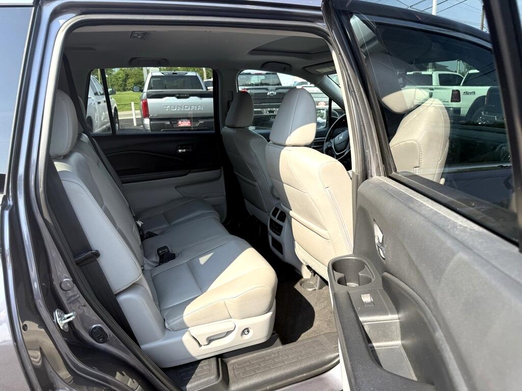 Pilot EX-L, 4D Sport Utility, 3.5L V6 24V SOHC i-VTEC, 6-Speed Automatic, AWD, Gray, Black Leather, 18" Alloy Wheels, 3rd row seats: split-bench, 4-Wheel Disc Brakes, 4.25 Axle Ratio, 7 Speakers, ABS brakes, Air Conditioning, Alloy wheels, AM/FM radio: SiriusXM, Apple CarPlay/Android Auto, Auto-dimming Rear-View mirror, Automatic temperature control, Brake assist, Bumpers: body-color, Compass, Delay-off headlights, Driver door bin, Driver vanity mirror, Dual front impact airbags, Dual front side impact airbags, Electronic Stability Control, Emergency communication system: HondaLink Assist, Exterior Parking Camera Rear, Four wheel independent suspension, Front anti-roll bar, Front Bucket Seats, Front Center Armrest, Front dual zone A/C, Front fog lights, Front reading lights, Fully automatic headlights, Garage door transmitter: HomeLink, Heated door mirrors, Heated Front Bucket Seats, Heated front seats, Illuminated entry, Leather Shift Knob, Leather-Trimmed Seats, Low tire pressure warning, Occupant sensing airbag, Outside temperature display, Overhead airbag, Overhead console, Panic alarm, Passenger door bin, Passenger vanity mirror, Power door mirrors, Power driver seat, Power Liftgate, Power moonroof, Power passenger seat, Power steering, Power windows, Radio data system, Radio: AM/FM Audio System, Rear air conditioning, Rear anti-roll bar, Rear reading lights, Rear seat center armrest, Rear window defroster, Rear window wiper, Remote keyless entry, Security system, SiriusXM Radio, Speed control, Speed-sensing steering, Speed-Sensitive Wipers, Split folding rear seat, Spoiler, Steering wheel mounted audio controls, Tachometer, Telescoping steering wheel, Tilt steering wheel, Traction control, Trip computer, Variably intermittent wipers, Pilot EX-L, 4D Sport Utility, 3.5L V6 24V SOHC i-VTEC, 6-Speed Automatic, AWD, Gray, Black Leather.