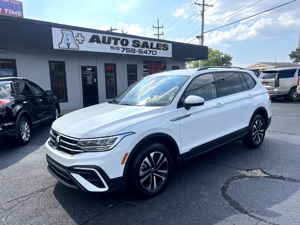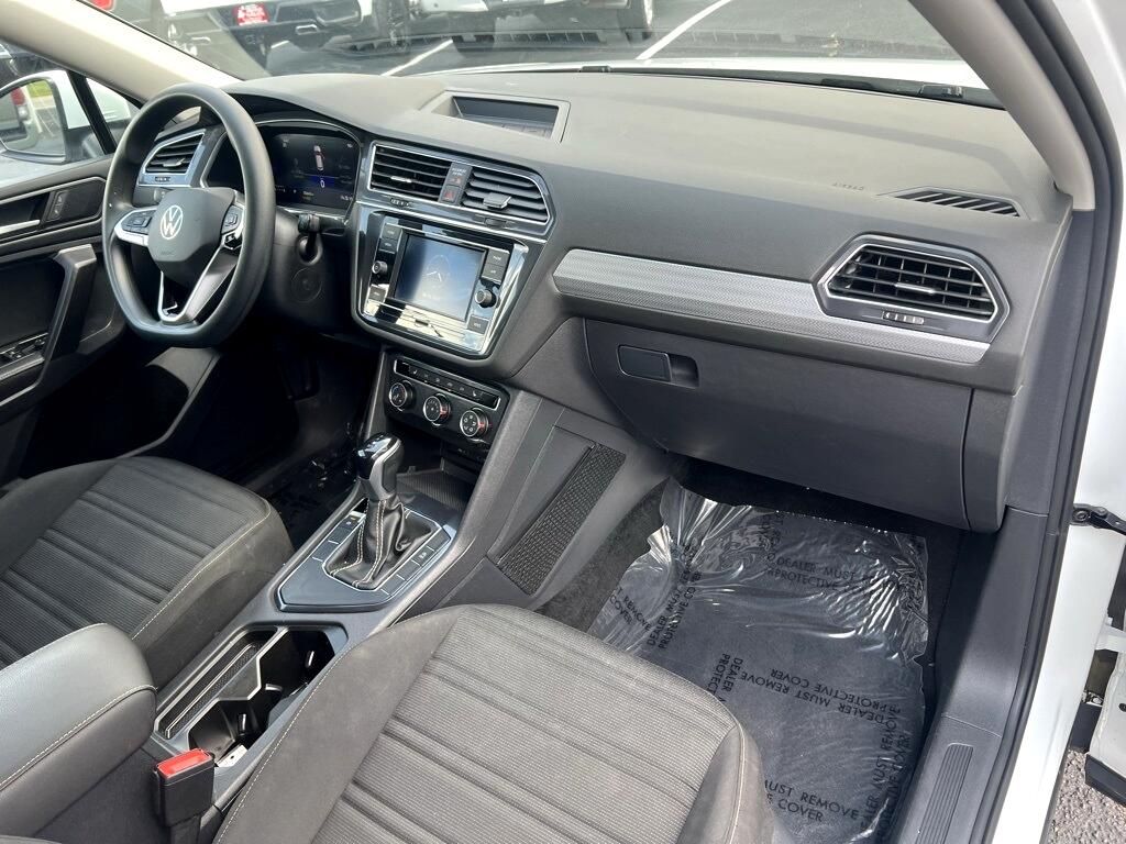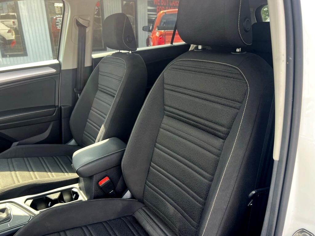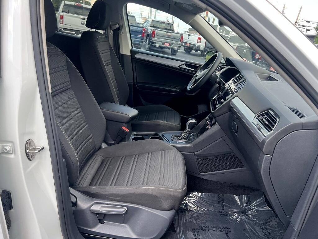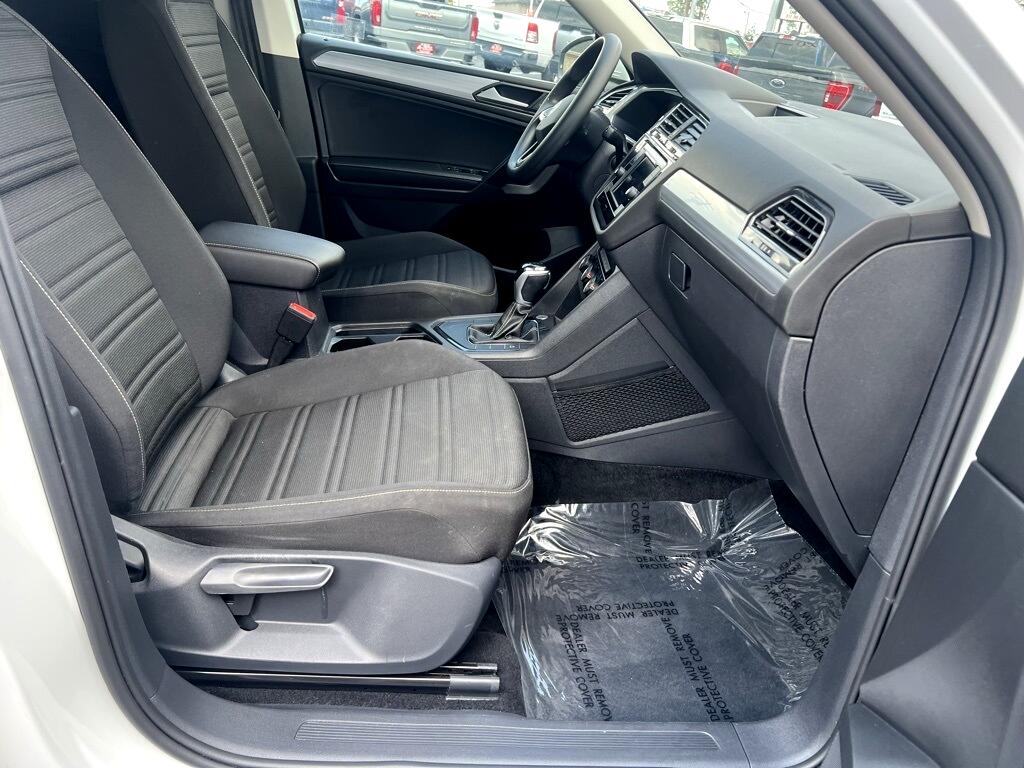 Tiguan 2.0T S, 4D Sport Utility, 2.0L TSI DOHC, 8-Speed Automatic with Tiptronic, FWD, Pure White, Titan Black Cloth, 3-Row Rubber Monster Mats w/Logo Kit (Set of 5), 3.33 Axle Ratio, 3rd row seats: bench, 4-Wheel Disc Brakes, 4-Wheel Independent Suspension, 6 Speakers, ABS brakes, Air Conditioning, Alloy wheels, AM/FM radio, Brake assist, Bumpers: body-color, Cloth Seating Surfaces, Compass, Credit - Rear Sensors Removed, Delay-off headlights, Driver door bin, Driver vanity mirror, Dual front impact airbags, Dual front side impact airbags, Electronic Stability Control, Emergency communication system: VW Car-Net Safe & Secure 5-year, Extended Range Remote Engine Start, Exterior Parking Camera Rear, Forward collision: FCW w/Autonomous Emergency Braking mitigation, Four wheel independent suspension, Front anti-roll bar, Front Bucket Seats, Front Center Armrest, Front reading lights, Fully automatic headlights, Heated door mirrors, Heated Front Bucket Seats, Heated front seats, Heavy Duty Trunk Liner w/VW CarGo Blocks, Illuminated entry, Leather Shift Knob, Low tire pressure warning, Occupant sensing airbag, Outside temperature display, Overhead airbag, Overhead console, Panic alarm, Passenger door bin, Passenger vanity mirror, Power door mirrors, Power steering, Power windows, Radio data system, Radio: Composition Color AM/FM, Rear anti-roll bar, Rear reading lights, Rear seat center armrest, Rear window defroster, Rear window wiper, Remote keyless entry, Speed control, Speed-sensing steering, Split folding rear seat, Spoiler, Steering wheel mounted audio controls, Tachometer, Telescoping steering wheel, Tilt steering wheel, Traction control, Trip computer, Turn signal indicator mirrors, Variably intermittent wipers, VW Care, Wheels: 17" 2-Tone Machined Twin 5-Spoke Alloy, Tiguan 2.0T S, 4D Sport Utility, 2.0L TSI DOHC, 8-Speed Automatic with Tiptronic, FWD, Pure White, Titan Black Cloth.