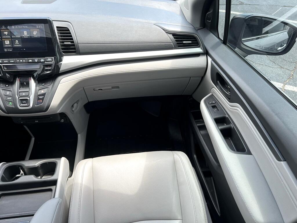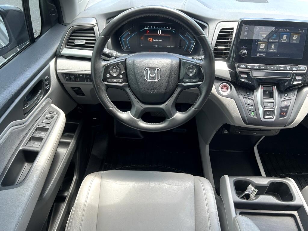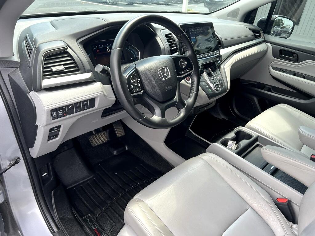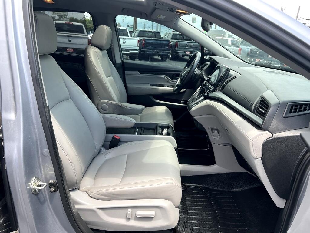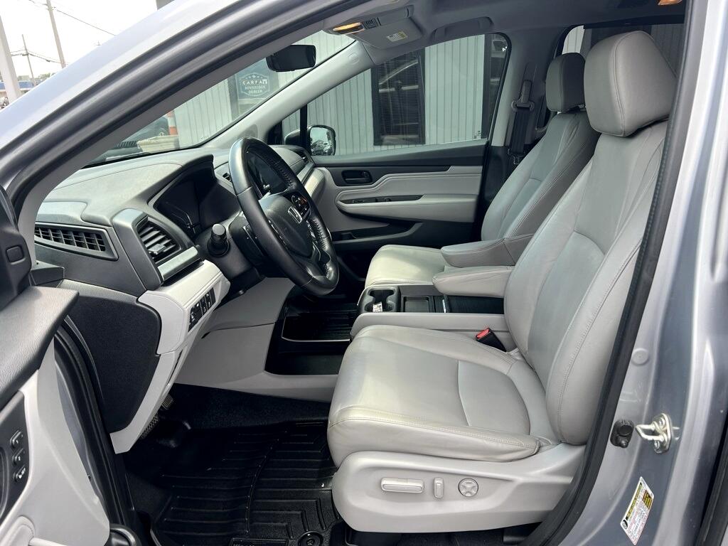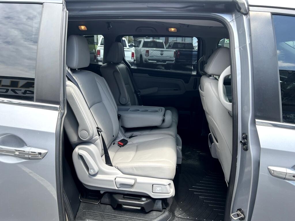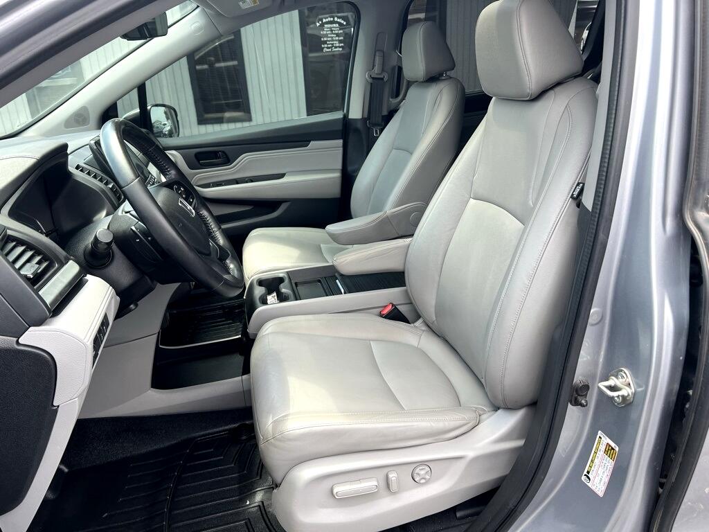 **New Tires**, **New Brakes**, Fresh Oil Change, Odyssey Touring, 4D Passenger Van, 3.5L V6 SOHC i-VTEC 24V, 10-Speed Automatic, FWD, Silver, Gray Leather, 18" Machine-Finished Alloy Wheels, 3.61 Axle Ratio, 3rd row seats: split-bench, 4-Wheel Disc Brakes, 7 Speakers, A/V remote, ABS brakes, Air Conditioning, Alloy wheels, AM/FM radio: SiriusXM, Anti-whiplash front head restraints, Apple CarPlay/Android Auto, Auto High-beam Headlights, Auto-dimming Rear-View mirror, Automatic temperature control, Blind Spot Information (BSI) System warning, Brake assist, Bumpers: body-color, CD player, Compass, Delay-off headlights, Driver door bin, Driver vanity mirror, Driver's Seat Mounted Armrest, Dual front impact airbags, Dual front side impact airbags, DVD-Audio, Electronic Stability Control, Emergency communication system: HondaLink, Exterior Parking Camera Rear, Four wheel independent suspension, Front anti-roll bar, Front Bucket Seats, Front dual zone A/C, Front fog lights, Front reading lights, Fully automatic headlights, Garage door transmitter: HomeLink, Headphones, Heated door mirrors, Heated Front Bucket Seats, Heated front seats, Illuminated entry, Knee airbag, Leather Seat Trim, Leather steering wheel, Low tire pressure warning, Memory seat, Navigation system: Honda Satellite-Linked Navigation System, Occupant sensing airbag, Outside temperature display, Overhead airbag, Overhead console, Panic alarm, Passenger door bin, Passenger seat mounted armrest, Passenger vanity mirror, Power door mirrors, Power driver seat, Power Liftgate, Power moonroof, Power passenger seat, Power steering, Power windows, Radio data system, Radio: 160-Watt AM/FM/HD/SiriusXM Audio System, Rear air conditioning, Rear anti-roll bar, Rear audio controls, Rear reading lights, Rear seat center armrest, Rear window defroster, Rear window wiper, Reclining 3rd row seat, Remote keyless entry, Security system, Speed control, Speed-sensing steering, Speed-Sensitive Wipers, Split folding rear seat, Spoiler, Steering wheel mounted audio controls, Tachometer, Telescoping steering wheel, Tilt steering wheel, Traction control, Trip computer, Turn signal indicator mirrors, Variably intermittent wipers, Odyssey Touring, 4D Passenger Van, 3.5L V6 SOHC i-VTEC 24V, 10-Speed Automatic, FWD, Silver, Gray Leather.
