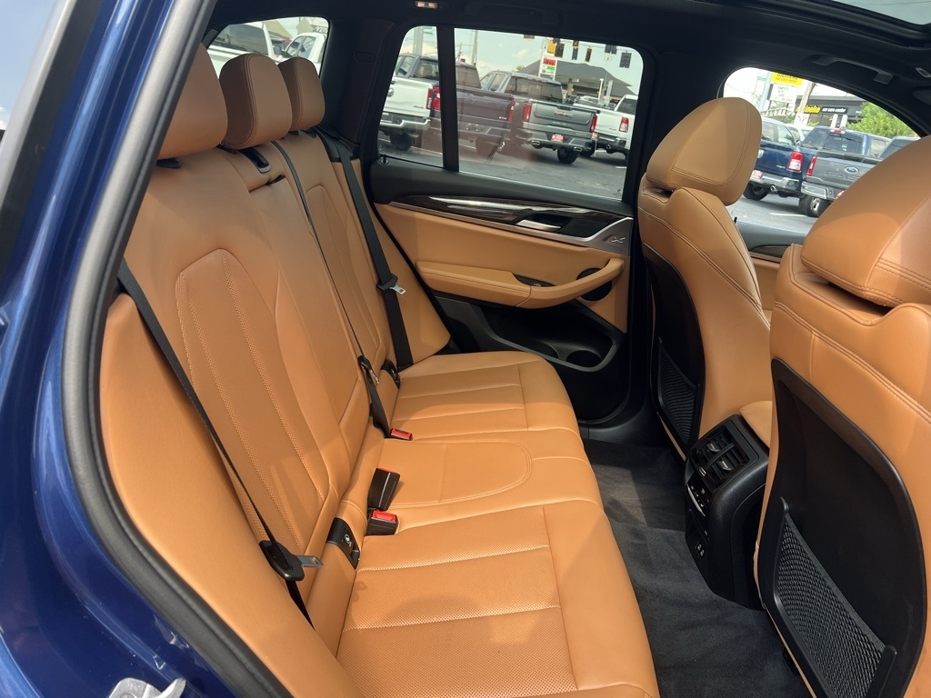 Recent Arrival! Clean CARFAX. Phytonic Blue Metallic 2022 BMW X3 xDrive30i AWD 8-Speed Automatic Sport 2.0L I4 TwinPower Turbo,X3 xDrive30i, 4D Sport Utility, 2.0L I4 TwinPower Turbo, 8-Speed Automatic Sport, AWD, Phytonic Blue Metallic, Cognac Artificial Leather, 12 Speakers, 3.385 Axle Ratio, 4-Wheel Disc Brakes, ABS brakes, Air Conditioning, Alloy wheels, AM/FM Radio, AM/FM radio: SiriusXM with 360L, Apple CarPlay & Android Auto Compatibility, Auto High-beam Headlights, Auto-dimming door mirrors, Auto-dimming Rear-View mirror, Automatic temperature control, BMW Assist eCall, BMW TeleServices, Brake assist, Bumpers: body-color, Comfort Access Keyless Entry, Connected Package Pro, ConnectedDrive Services, Convenience Package w/ZPA, Delay-off headlights, Driver door bin, Driver vanity mirror, Dual front impact airbags, Dual front side impact airbags, Dynamic Handling Package, Electronic Stability Control, Emergency communication system: BMW Assist eCall, Enhanced Bluetooth, Exterior Parking Camera Rear, Four wheel independent suspension, Front anti-roll bar, Front Bucket Seats, Front Center Armrest, Front dual zone A/C, Front reading lights, Fully automatic headlights, Garage door transmitter, Genuine wood dashboard insert, Genuine wood door panel insert, Gesture Control, Heated door mirrors, Heated Front Seats, Heated Steering Wheel, Hi-Fi Sound System, Illuminated entry, Knee airbag, Live Cockpit Pro w/Navigation, Low tire pressure warning, Lumbar Support, Memory seat, Navigation, Navigation System, Occupant sensing airbag, Outside temperature display, Overhead airbag, Panic alarm, Panoramic Moonroof (ZPA), Passenger door bin, Passenger vanity mirror, Perforated SensaTec Upholstery, Power door mirrors, Power driver seat, Power Front Seats, Power Liftgate, Power passenger seat, Power steering, Power windows, Premium Package 2 (ZPA), Premium Package w/ZPA, Radio data system, Rain sensing wipers, Rear air conditioning, Rear anti-roll bar, Rear reading lights, Rear seat center armrest, Rear window defroster, Rear window wiper, Reinforced Brakes, Remote Engine Start, Remote keyless entry, Roof rack: rails only, Security system, Shadowline Package (DISC), SiriusXM w/360L, Speed control, Speed-sensing steering, Speed-Sensitive Wipers, Split folding rear seat, Spoiler, Sport Seats, Sport steering wheel, Steering wheel mounted audio controls, Tachometer, Telescoping steering wheel, Tilt steering wheel, Traction control, Trailer Hitch, Trip computer, Turn signal indicator mirrors, Variably intermittent wipers, Wheels: 19" x 7.5" Y-Spoke (Style 693), WiFi Hotspot, **Backup Sensors**, X3 xDrive30i, 4D Sport Utility, 2.0L I4 TwinPower Turbo, 8-Speed Automatic Sport, AWD, Phytonic Blue Metallic, Cognac Artificial Leather.