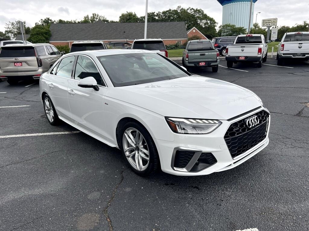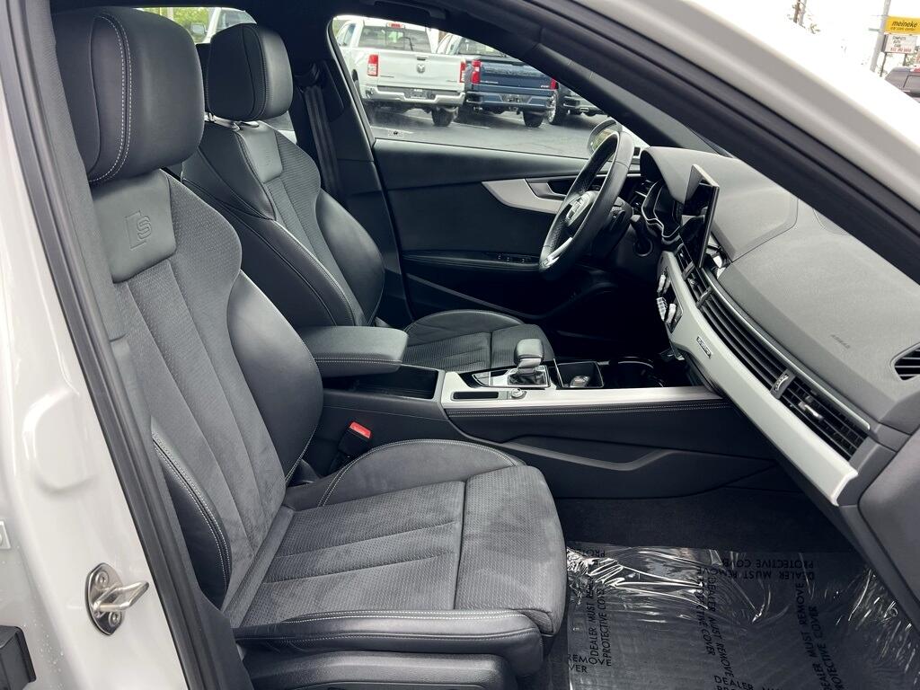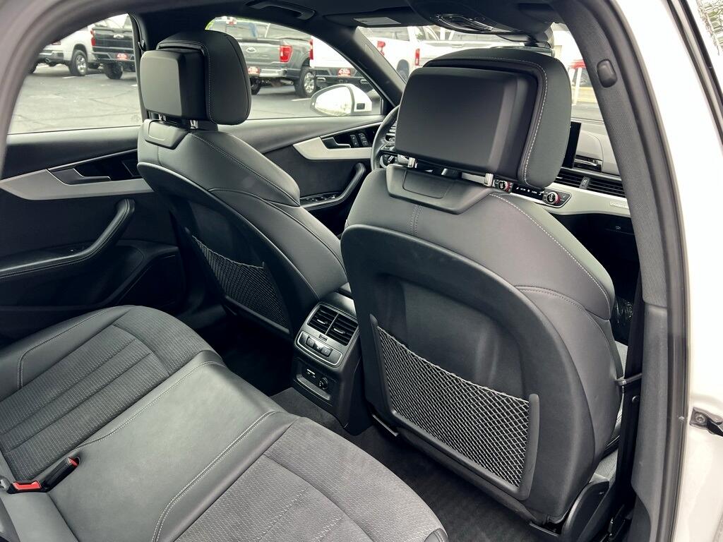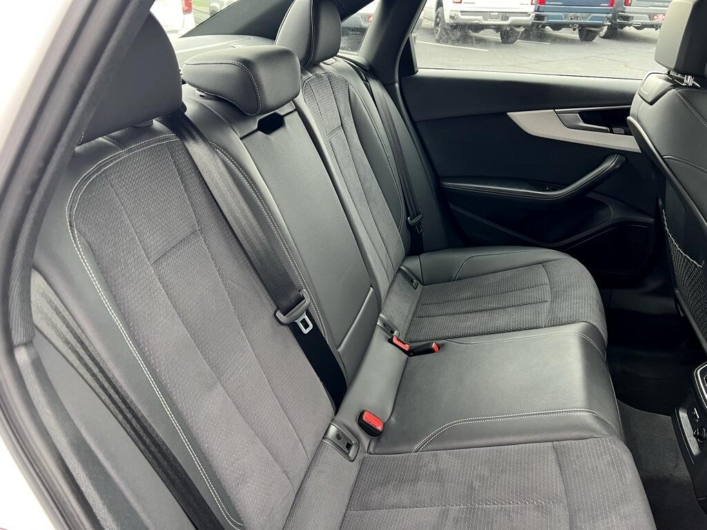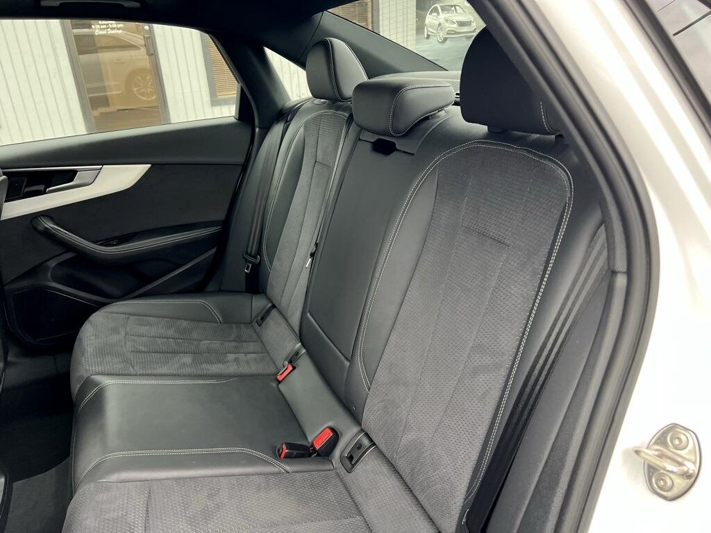 A4 45 S line Premium Plus quattro, 4D Sedan, 2.0L TFSI, 7-Speed Automatic S tronic, quattro, White, Black Leather, 10 Speakers, 4-Wheel Disc Brakes, ABS brakes, Air Conditioning, Alloy wheels, AM/FM radio, Anti-whiplash front head restraints, Audi smartphone interface (Apple CarPlay/Android Auto), Auto High-beam Headlights, Auto-dimming Rear-View mirror, Automatic temperature control, Brake assist, Bumpers: body-color, Compass, Delay-off headlights, Driver door bin, Driver vanity mirror, Dual front impact airbags, Dual front side impact airbags, Electronic Stability Control, Emergency communication system: Audi connect CARE, Exterior Parking Camera Rear, Four wheel independent suspension, Front anti-roll bar, Front Bucket Seats, Front Center Armrest, Front dual zone A/C, Front fog lights, Front reading lights, Garage door transmitter: HomeLink, Genuine wood dashboard insert, Genuine wood door panel insert, Heated door mirrors, Heated front seats, Heated Front Sport Bucket Seats, Illuminated entry, Knee airbag, Leather Seating Surfaces, Leather Shift Knob, Leather steering wheel, Low tire pressure warning, Occupant sensing airbag, Outside temperature display, Overhead airbag, Overhead console, Panic alarm, Passenger door bin, Passenger vanity mirror, Power door mirrors, Power driver seat, Power moonroof, Power passenger seat, Power steering, Power windows, Radio data system, Radio: Audi Sound System, Rain sensing wipers, Rear air conditioning, Rear anti-roll bar, Rear reading lights, Rear seat center armrest, Rear window defroster, Remote keyless entry, Speed control, Speed-sensing steering, Speed-Sensitive Wipers, Split folding rear seat, Steering wheel mounted audio controls, Tachometer, Telescoping steering wheel, Tilt steering wheel, Traction control, Trip computer, Turn signal indicator mirrors, Variably intermittent wipers, Wheels: 18" 5-Double-Spoke Design, A4 45 S line Premium Plus quattro, 4D Sedan, 2.0L TFSI, 7-Speed Automatic S tronic, quattro, White, Black Leather.
