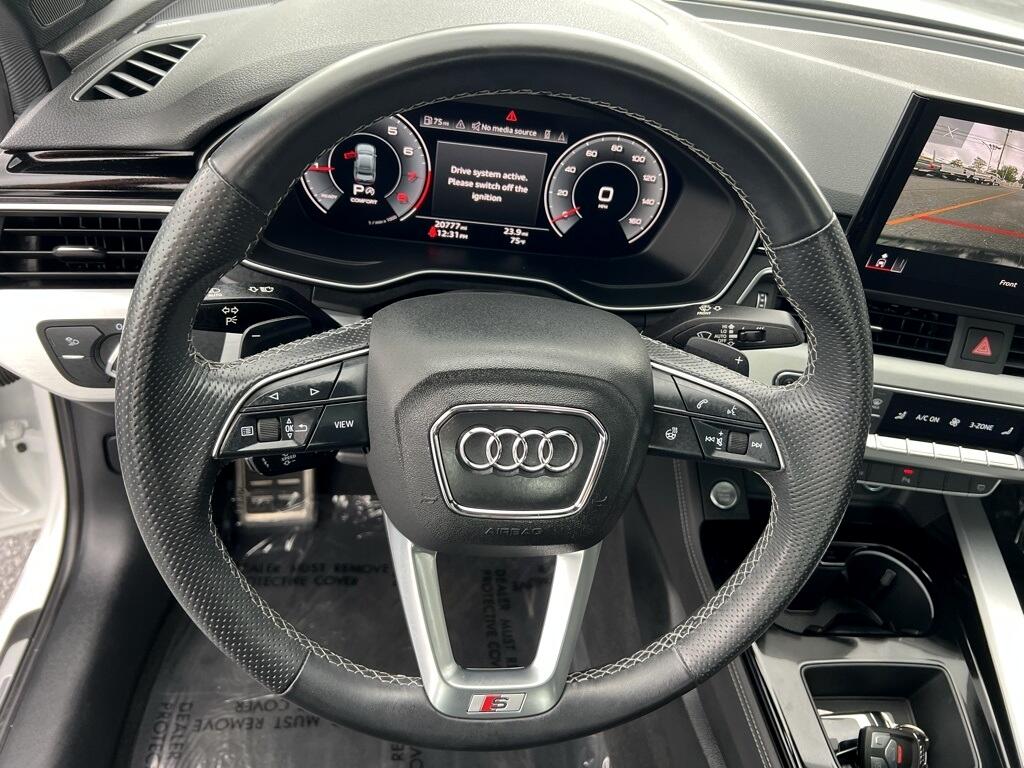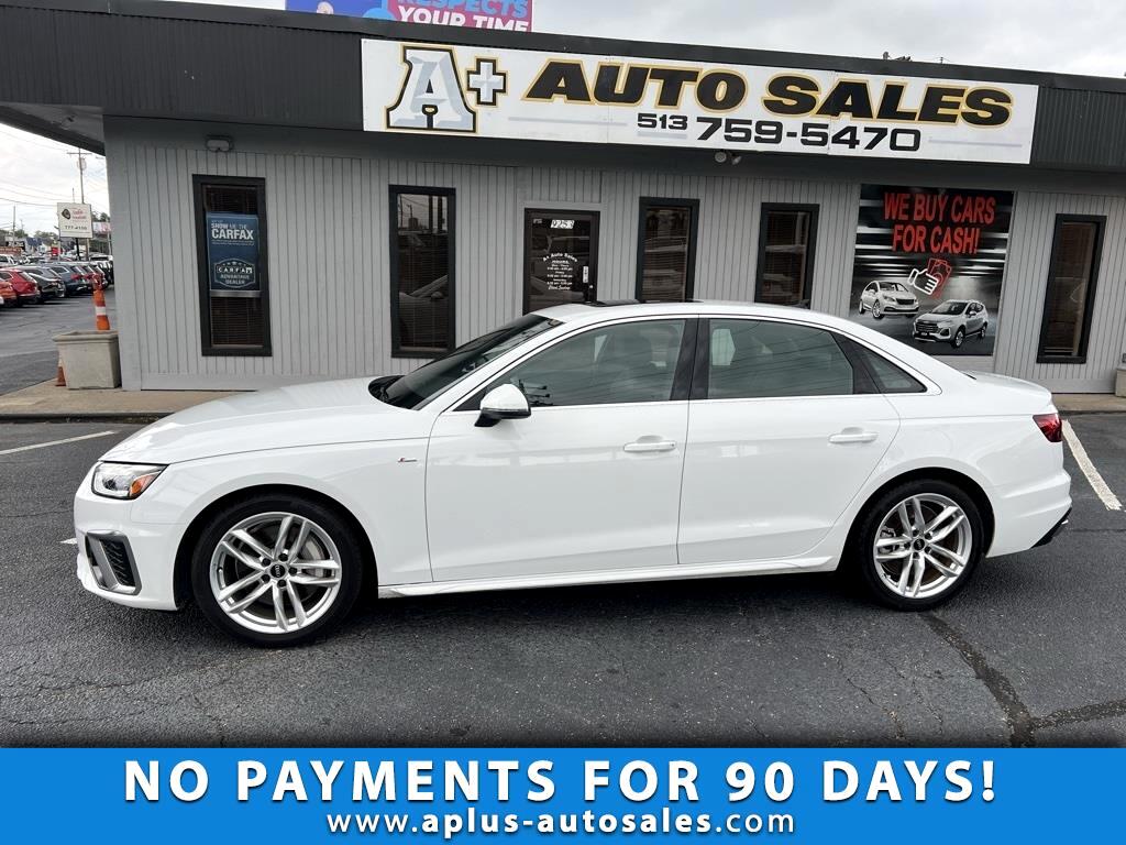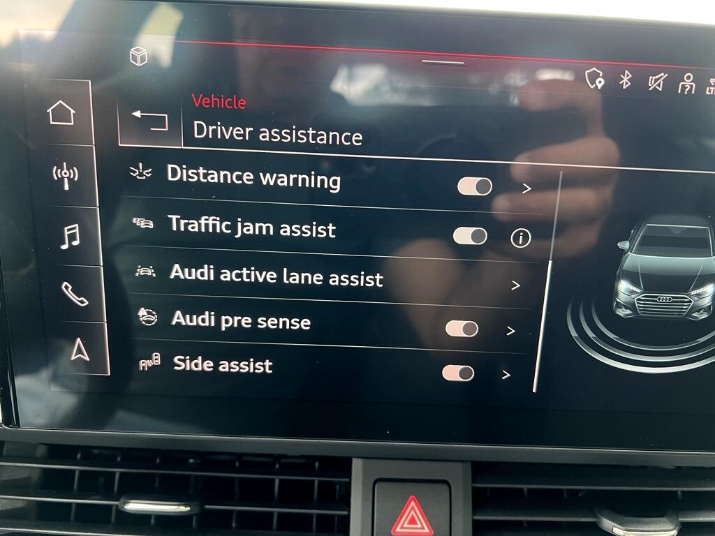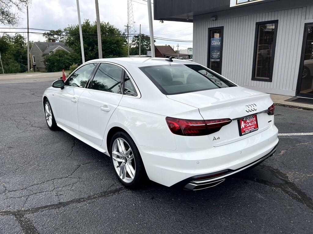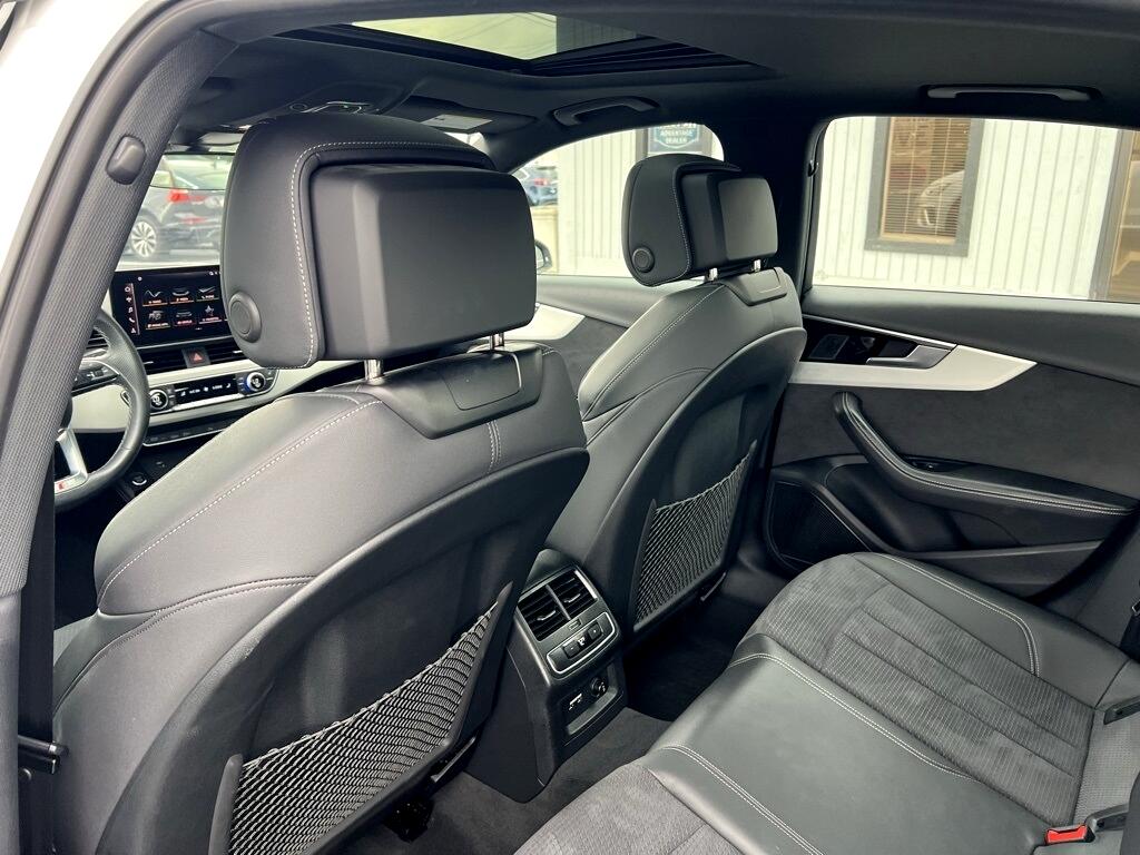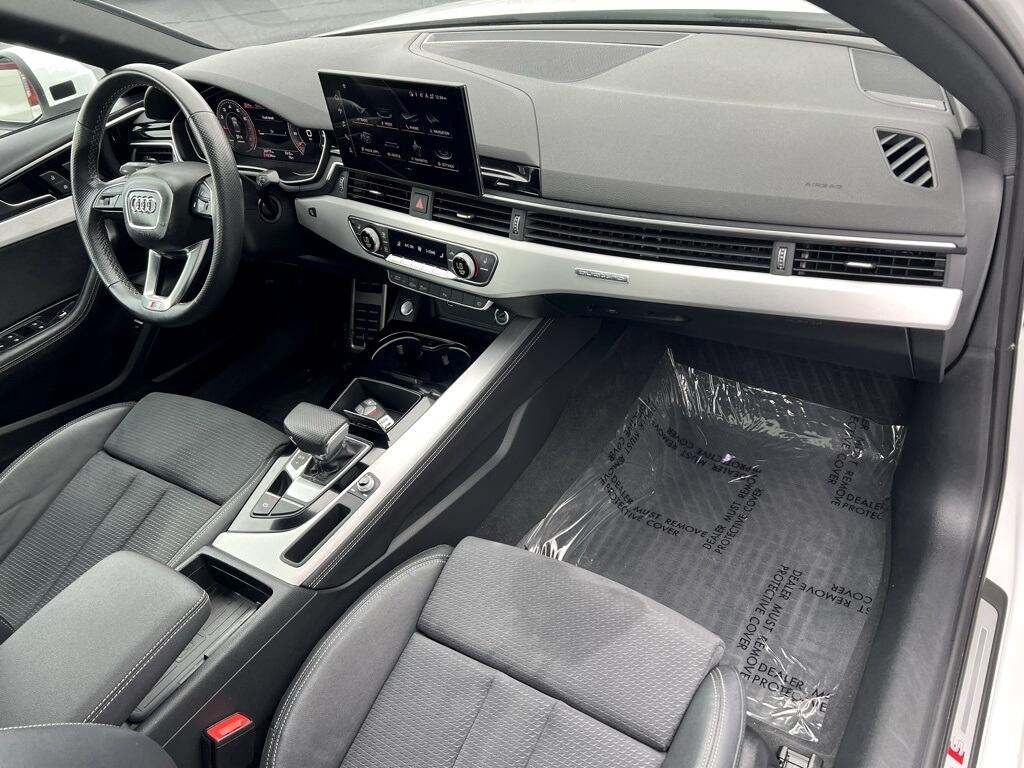 A4 45 S line Premium Plus quattro, 4D Sedan, 2.0L TFSI, 7-Speed Automatic S tronic, quattro, White, Black Leather, 10 Speakers, 4-Wheel Disc Brakes, ABS brakes, Air Conditioning, Alloy wheels, AM/FM radio, Anti-whiplash front head restraints, Audi smartphone interface (Apple CarPlay/Android Auto), Auto High-beam Headlights, Auto-dimming Rear-View mirror, Automatic temperature control, Brake assist, Bumpers: body-color, Compass, Delay-off headlights, Driver door bin, Driver vanity mirror, Dual front impact airbags, Dual front side impact airbags, Electronic Stability Control, Emergency communication system: Audi connect CARE, Exterior Parking Camera Rear, Four wheel independent suspension, Front anti-roll bar, Front Bucket Seats, Front Center Armrest, Front dual zone A/C, Front fog lights, Front reading lights, Garage door transmitter: HomeLink, Genuine wood dashboard insert, Genuine wood door panel insert, Heated door mirrors, Heated front seats, Heated Front Sport Bucket Seats, Illuminated entry, Knee airbag, Leather Seating Surfaces, Leather Shift Knob, Leather steering wheel, Low tire pressure warning, Occupant sensing airbag, Outside temperature display, Overhead airbag, Overhead console, Panic alarm, Passenger door bin, Passenger vanity mirror, Power door mirrors, Power driver seat, Power moonroof, Power passenger seat, Power steering, Power windows, Radio data system, Radio: Audi Sound System, Rain sensing wipers, Rear air conditioning, Rear anti-roll bar, Rear reading lights, Rear seat center armrest, Rear window defroster, Remote keyless entry, Speed control, Speed-sensing steering, Speed-Sensitive Wipers, Split folding rear seat, Steering wheel mounted audio controls, Tachometer, Telescoping steering wheel, Tilt steering wheel, Traction control, Trip computer, Turn signal indicator mirrors, Variably intermittent wipers, Wheels: 18" 5-Double-Spoke Design, A4 45 S line Premium Plus quattro, 4D Sedan, 2.0L TFSI, 7-Speed Automatic S tronic, quattro, White, Black Leather.