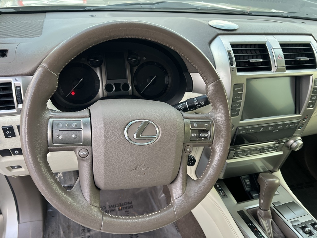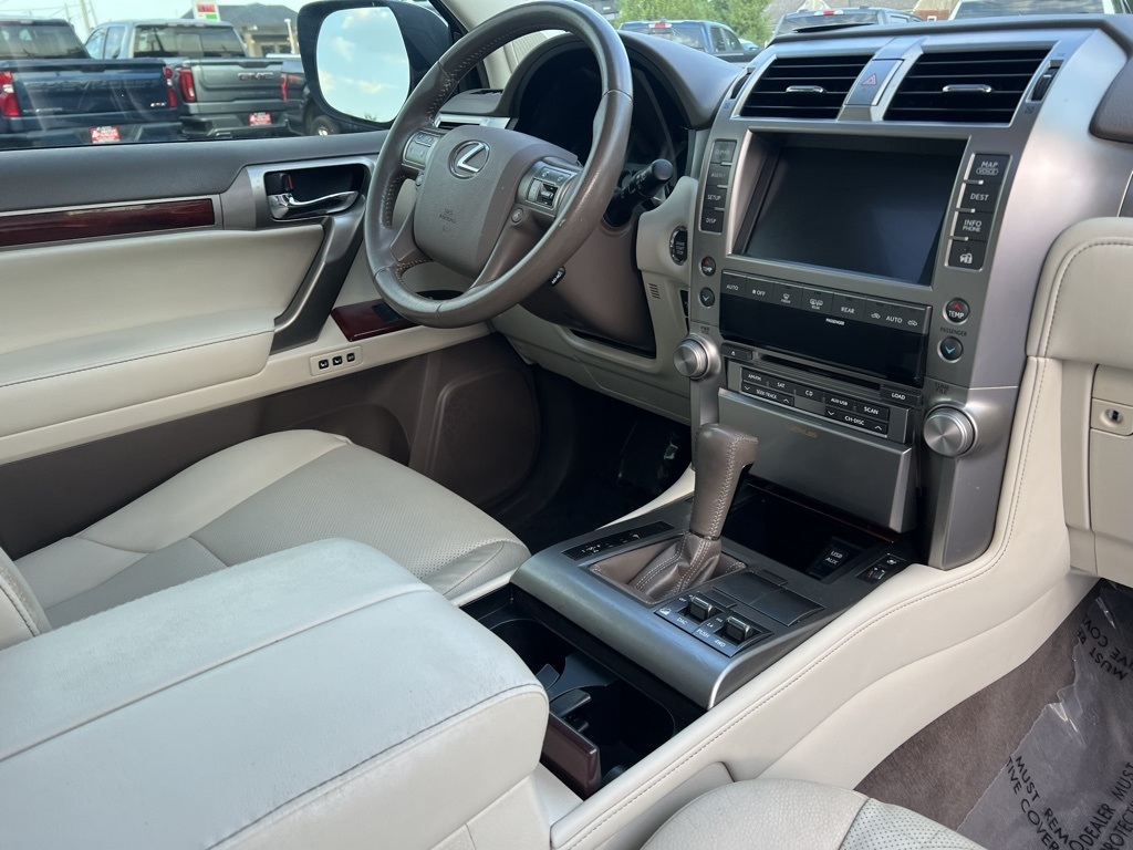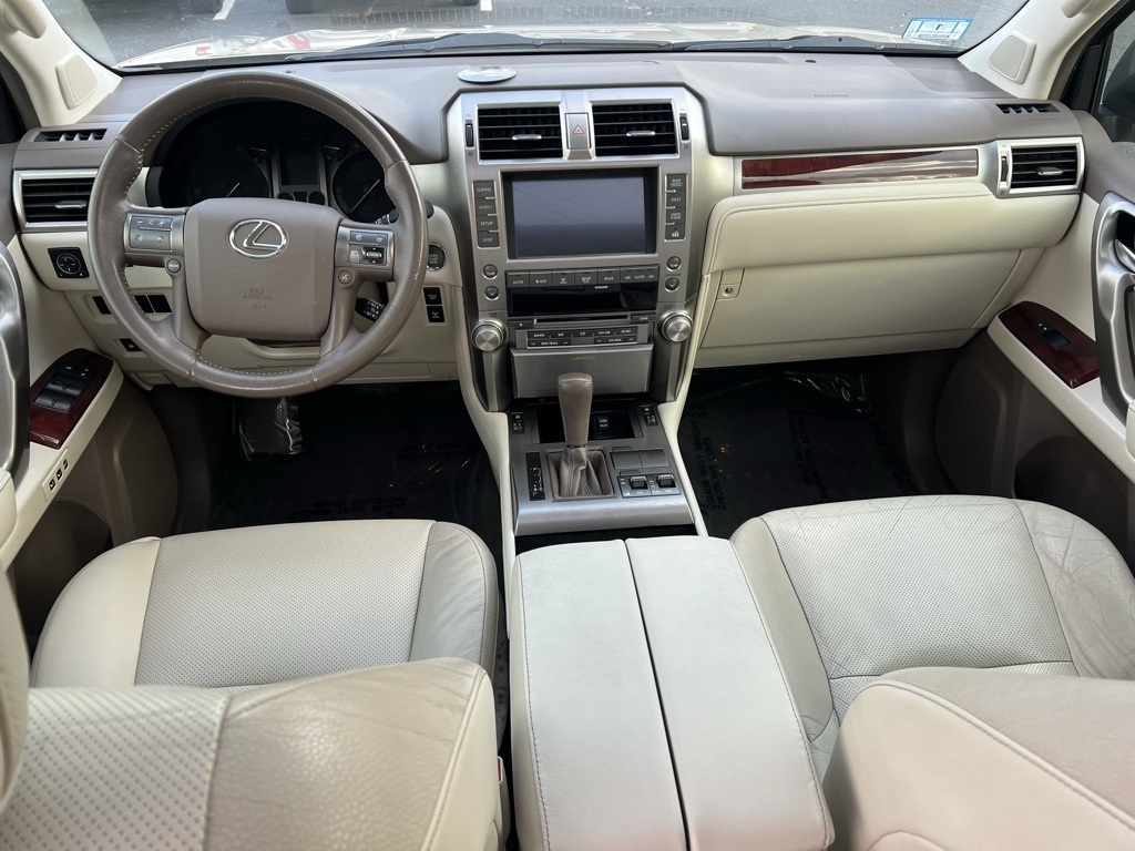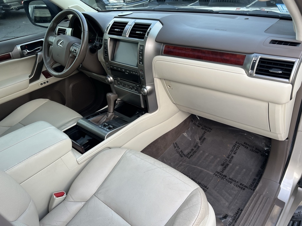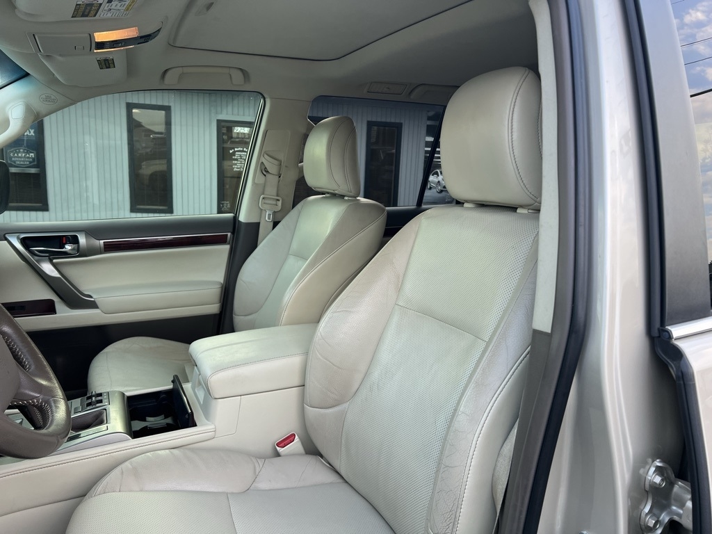 GX 460, 4D Sport Utility, 4.6L V8 DOHC Dual VVT-i 32V, 6-Speed Automatic with Sequential Shift ECT, 4WD, Silver, Beige Leather, 18" x 7.5" 6-Spoke Aluminum Alloy Wheels, 3.909 Axle Ratio, 3rd row seats: split-bench, 4-Wheel Disc Brakes, 9 Speakers, ABS brakes, Air Conditioning, Alloy wheels, AM/FM radio: SiriusXM, Anti-whiplash front head restraints, Auto tilt-away steering wheel, Auto-dimming Rear-View mirror, Automatic temperature control, Bodyside moldings, Brake assist, Bumpers: body-color, CD player, Comfort Plus Package, Compass, Convenience Package, Delay-off headlights, Driver door bin, Driver vanity mirror, Driver's Seat Mounted Armrest, Dual front impact airbags, Dual front side impact airbags, Electronic Stability Control, Emergency communication system: Safety Connect, Exterior Parking Camera Rear, Front anti-roll bar, Front Bucket Seats, Front dual zone A/C, Front fog lights, Front reading lights, Front wheel independent suspension, Fully automatic headlights, Garage door transmitter: HomeLink, Genuine wood console insert, Genuine wood dashboard insert, Genuine wood door panel insert, Heated & Ventilated Front Bucket Seats, Heated door mirrors, Heated front seats, Illuminated entry, Illuminated running boards, Knee airbag, Leather Shift Knob, Leather steering wheel, Low tire pressure warning, Memory seat, Navigation System, Occupant sensing airbag, Outside temperature display, Overhead airbag, Overhead console, Panic alarm, Passenger door bin, Passenger seat mounted armrest, Passenger vanity mirror, Perforated Leather Seat Trim, Power door mirrors, Power driver seat, Power moonroof, Power passenger seat, Power steering, Power windows, Preferred Accessory Package, Radio data system, Radio: AM/FM Lexus Premium Audio, Rain sensing wipers, Rear anti-roll bar, Rear reading lights, Rear seat center armrest, Rear side impact airbag, Rear window defroster, Rear window wiper, Remote keyless entry, Roof rack: rails only, Security system, Semi-Aniline Leather Seat Trim, Speed control, Speed-sensing steering, Split folding rear seat, Spoiler, Steering wheel memory, Steering wheel mounted audio controls, Tachometer, Telescoping steering wheel, Tilt steering wheel, Traction control, Trip computer, Turn signal indicator mirrors, Variably intermittent wipers, Ventilated front seats, GX 460, 4D Sport Utility, 4.6L V8 DOHC Dual VVT-i 32V, 6-Speed Automatic with Sequential Shift ECT, 4WD, Silver, Beige Leather.
