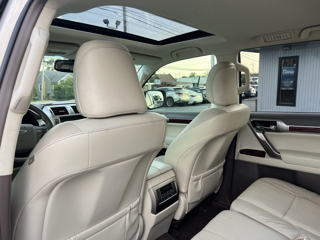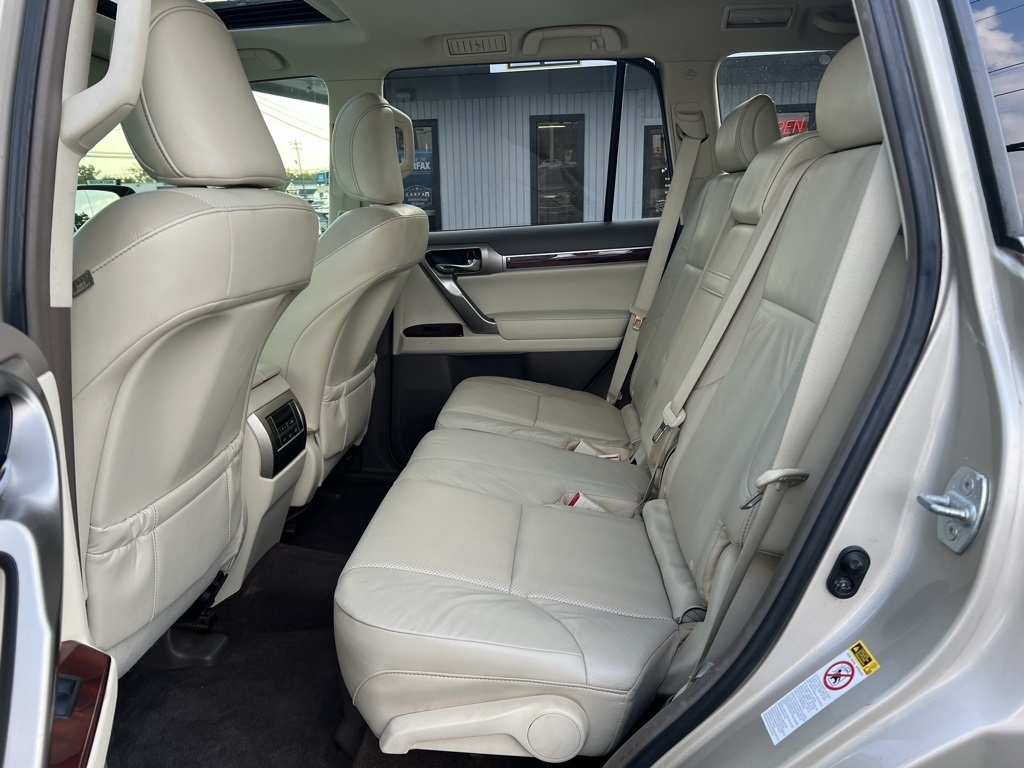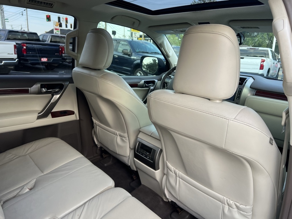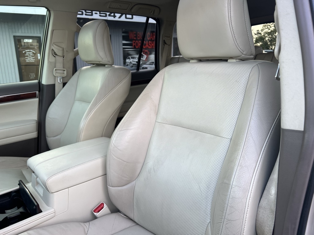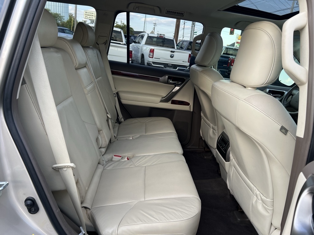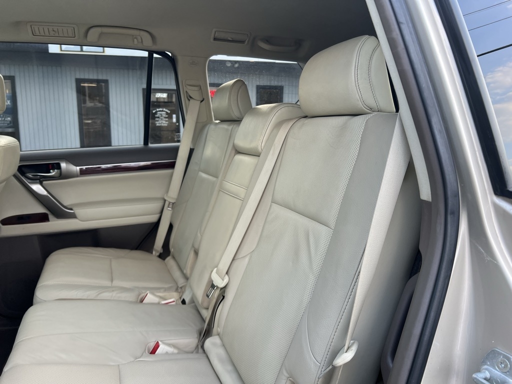 GX 460, 4D Sport Utility, 4.6L V8 DOHC Dual VVT-i 32V, 6-Speed Automatic with Sequential Shift ECT, 4WD, Silver, Beige Leather, 18" x 7.5" 6-Spoke Aluminum Alloy Wheels, 3.909 Axle Ratio, 3rd row seats: split-bench, 4-Wheel Disc Brakes, 9 Speakers, ABS brakes, Air Conditioning, Alloy wheels, AM/FM radio: SiriusXM, Anti-whiplash front head restraints, Auto tilt-away steering wheel, Auto-dimming Rear-View mirror, Automatic temperature control, Bodyside moldings, Brake assist, Bumpers: body-color, CD player, Comfort Plus Package, Compass, Convenience Package, Delay-off headlights, Driver door bin, Driver vanity mirror, Driver's Seat Mounted Armrest, Dual front impact airbags, Dual front side impact airbags, Electronic Stability Control, Emergency communication system: Safety Connect, Exterior Parking Camera Rear, Front anti-roll bar, Front Bucket Seats, Front dual zone A/C, Front fog lights, Front reading lights, Front wheel independent suspension, Fully automatic headlights, Garage door transmitter: HomeLink, Genuine wood console insert, Genuine wood dashboard insert, Genuine wood door panel insert, Heated & Ventilated Front Bucket Seats, Heated door mirrors, Heated front seats, Illuminated entry, Illuminated running boards, Knee airbag, Leather Shift Knob, Leather steering wheel, Low tire pressure warning, Memory seat, Navigation System, Occupant sensing airbag, Outside temperature display, Overhead airbag, Overhead console, Panic alarm, Passenger door bin, Passenger seat mounted armrest, Passenger vanity mirror, Perforated Leather Seat Trim, Power door mirrors, Power driver seat, Power moonroof, Power passenger seat, Power steering, Power windows, Preferred Accessory Package, Radio data system, Radio: AM/FM Lexus Premium Audio, Rain sensing wipers, Rear anti-roll bar, Rear reading lights, Rear seat center armrest, Rear side impact airbag, Rear window defroster, Rear window wiper, Remote keyless entry, Roof rack: rails only, Security system, Semi-Aniline Leather Seat Trim, Speed control, Speed-sensing steering, Split folding rear seat, Spoiler, Steering wheel memory, Steering wheel mounted audio controls, Tachometer, Telescoping steering wheel, Tilt steering wheel, Traction control, Trip computer, Turn signal indicator mirrors, Variably intermittent wipers, Ventilated front seats, GX 460, 4D Sport Utility, 4.6L V8 DOHC Dual VVT-i 32V, 6-Speed Automatic with Sequential Shift ECT, 4WD, Silver, Beige Leather.
