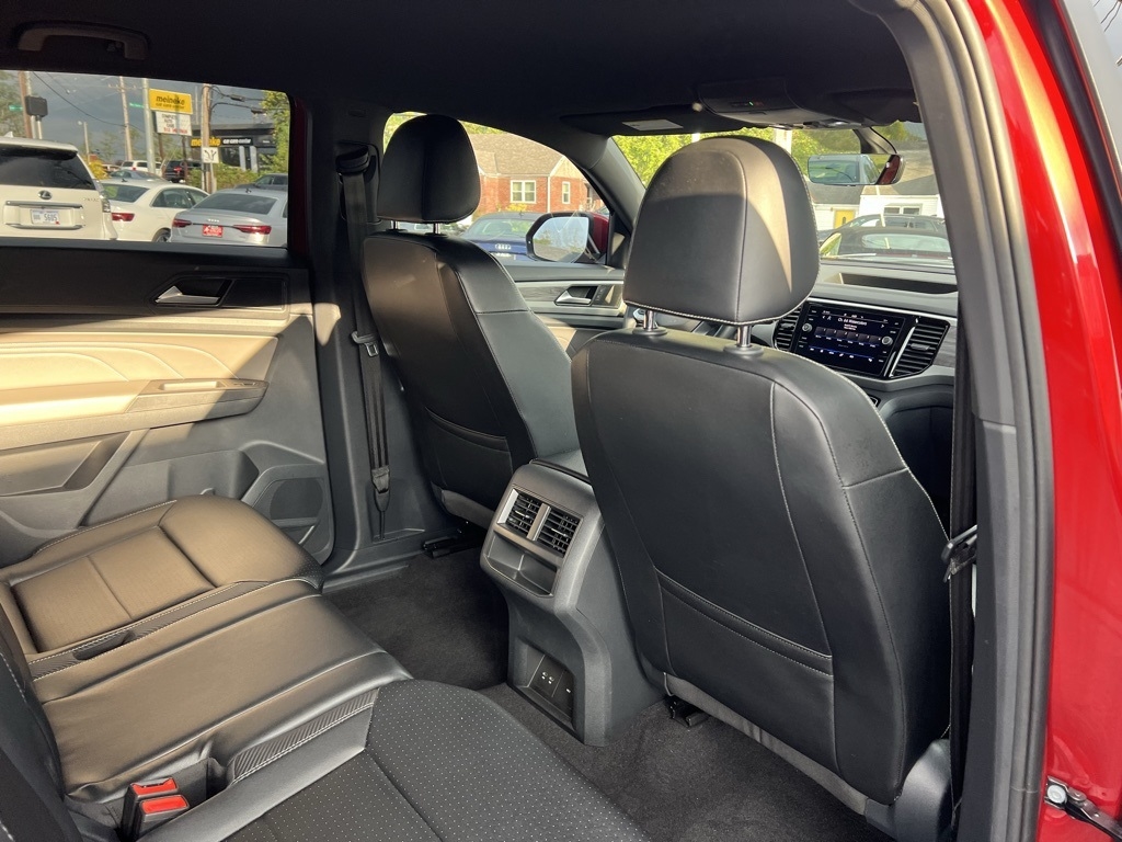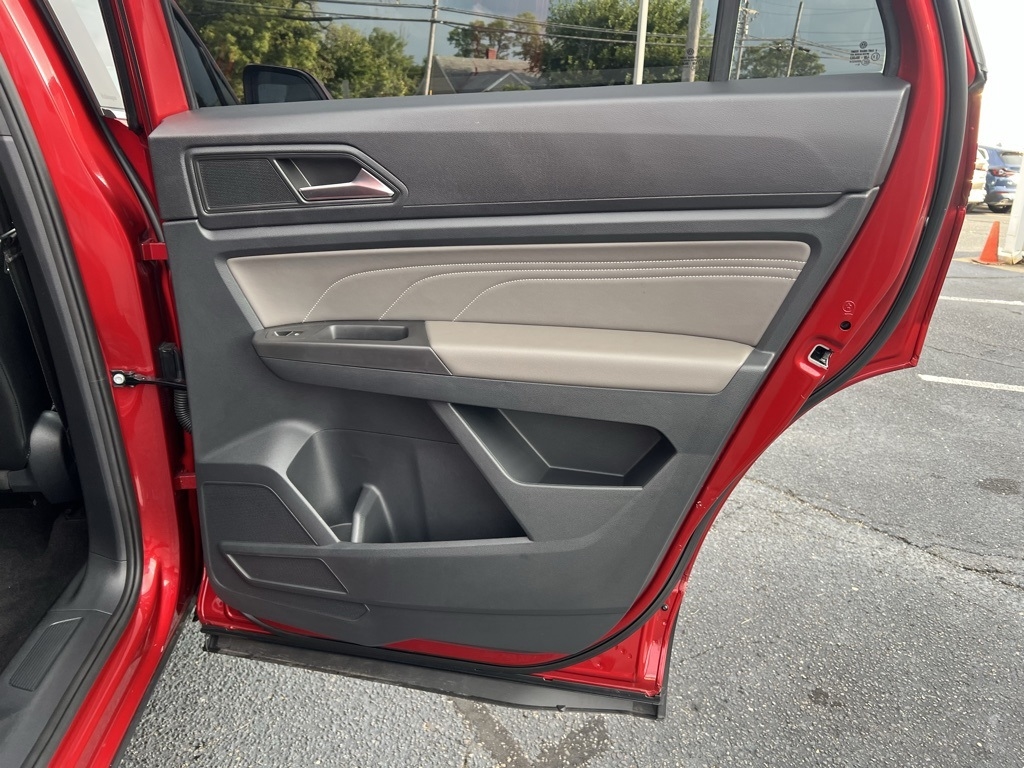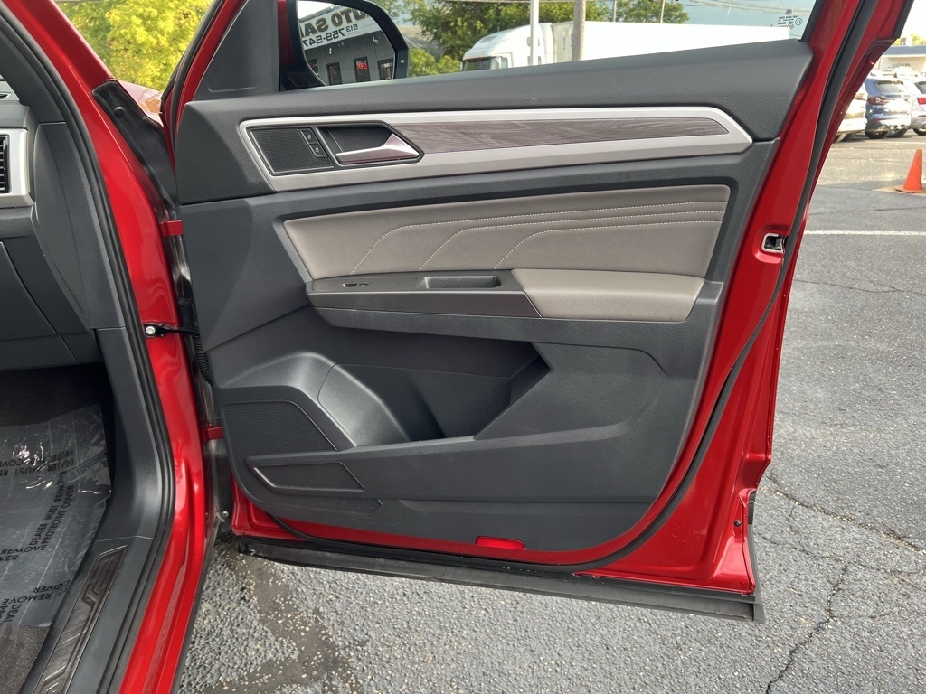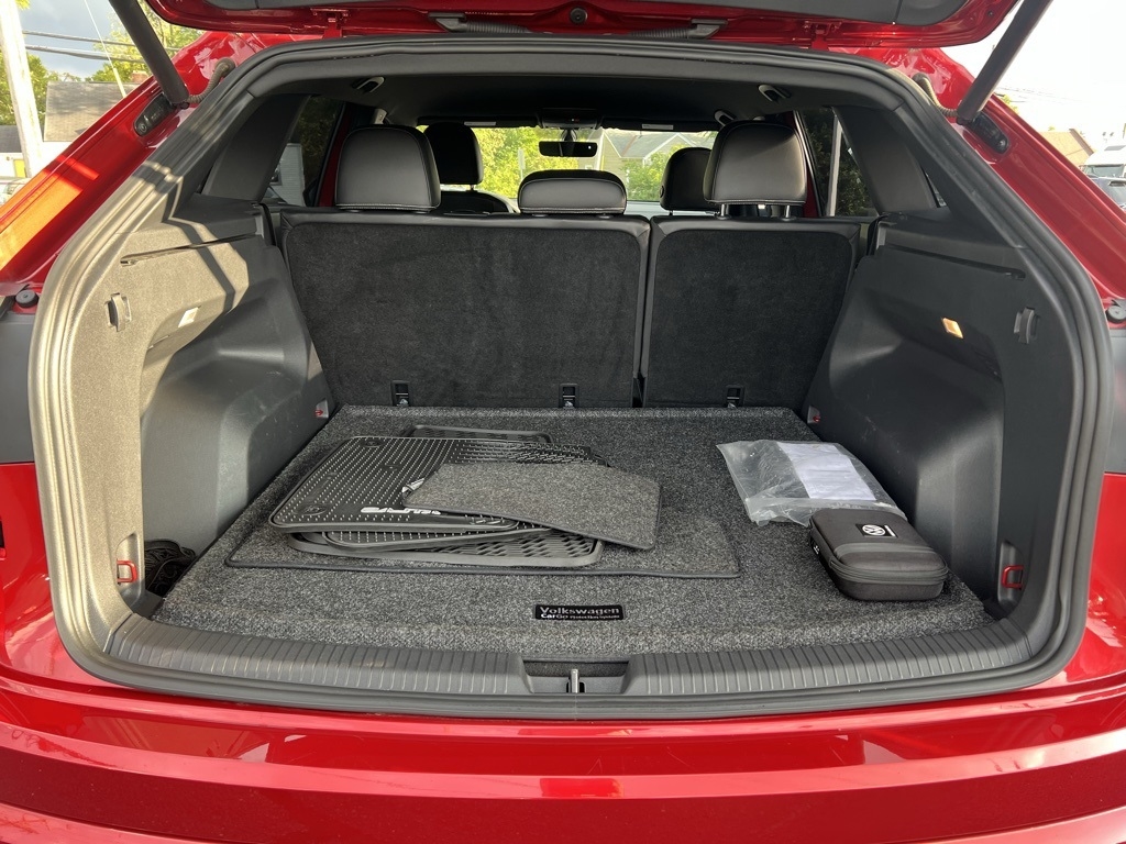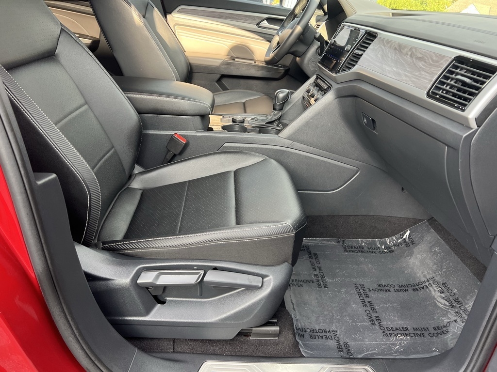 Atlas Cross Sport 2.0T SE w/Technology (A8), 4D Sport Utility, 2.0L TSI, 8-Speed Automatic with Tiptronic, AWD, Red Metallic, Titan Black Premium Synthetic, 3.60 Axle Ratio, 4-Wheel Disc Brakes, 6 Speakers, ABS brakes, Air Conditioning, Alloy wheels, AM/FM radio: SiriusXM with 360L, Auto-dimming Rear-View mirror, Automatic temperature control, Black Wheel Package, Brake assist, Bumpers: body-color, Compass, Delay-off headlights, Driver door bin, Driver vanity mirror, Dual front impact airbags, Dual front side impact airbags, Electronic Stability Control, Emergency communication system, Exterior Parking Camera Rear, First Aid Kit, Four wheel independent suspension, Frameless Auto-Dimming Rearview Mirror, Front anti-roll bar, Front Bucket Seats, Front Center Armrest, Front dual zone A/C, Front fog lights, Front reading lights, Fully automatic headlights, Heated Comfort Front Bucket Seats, Heated door mirrors, Heated front seats, Heavy Duty Trunk Liner w/VW CarGo Blocks, Illuminated entry, Leather Shift Knob, Low tire pressure warning, Occupant sensing airbag, Outside temperature display, Overhead airbag, Overhead console, Panic alarm, Passenger door bin, Passenger vanity mirror, Perforated V-Tex Leatherette Seating Surfaces, Power door mirrors, Power driver seat, Power steering, Power windows, Radio data system, Radio: MIB3 Composition Media w/8" Touchscreen, Rain sensing wipers, Rear anti-roll bar, Rear reading lights, Rear seat center armrest, Rear window defroster, Rear window wiper, Remote keyless entry, Roadside Assistance Kit, Roof rack: rails only, Rubber Mats Kit, Security system, Speed control, Speed-sensing steering, Split folding rear seat, Spoiler, Standard Suspension, Steering wheel mounted audio controls, Tachometer, Telescoping steering wheel, Tilt steering wheel, Traction control, Trip computer, Turn signal indicator mirrors, Variably intermittent wipers, VW Care, Wheels: 20" x 8J 5-Spoke Black Painted Alloy, Wheels: 20" x 8J 5-Spoke Silver Painted Alloy, Atlas Cross Sport 2.0T SE w/Technology (A8), 4D Sport Utility, 2.0L TSI, 8-Speed Automatic with Tiptronic, AWD, Red Metallic, Titan Black Premium Synthetic.