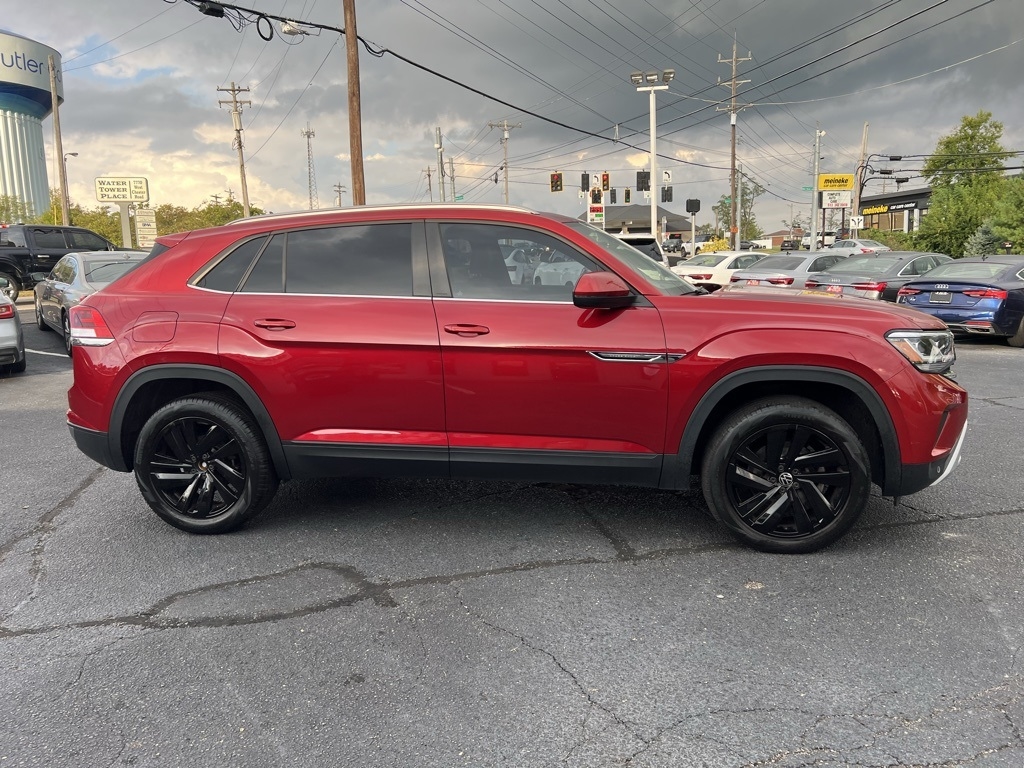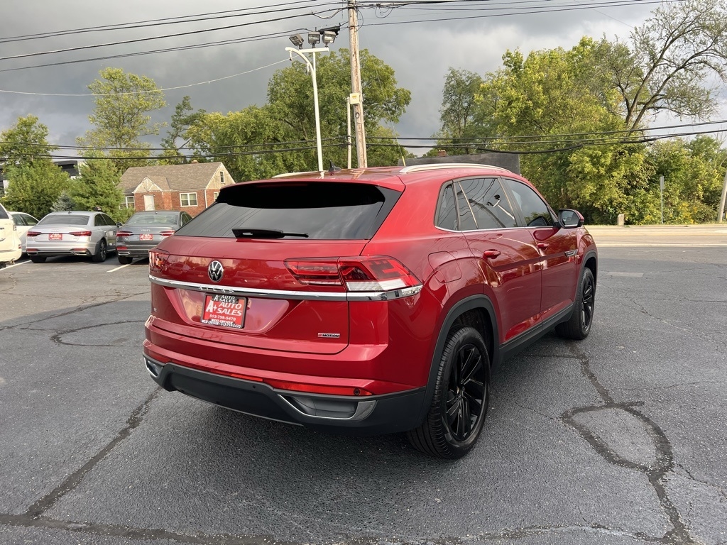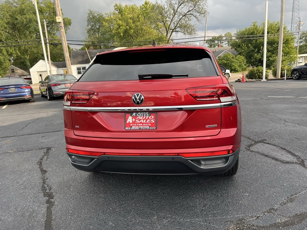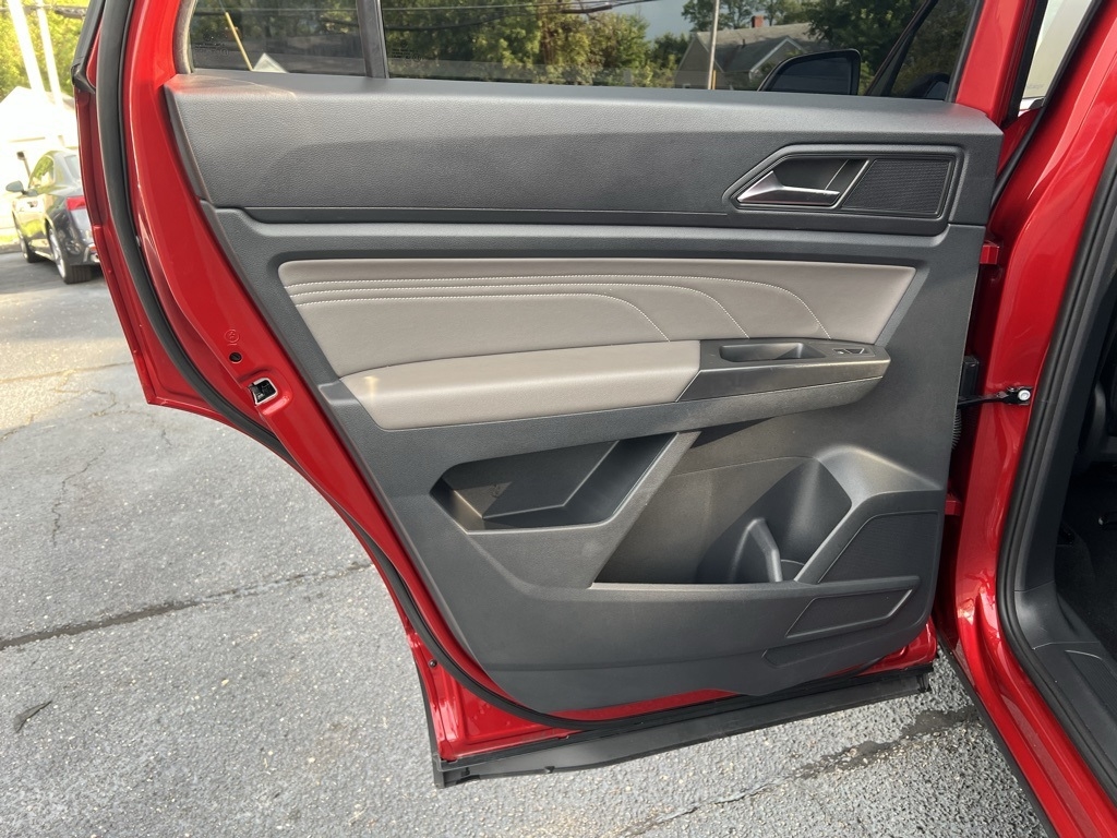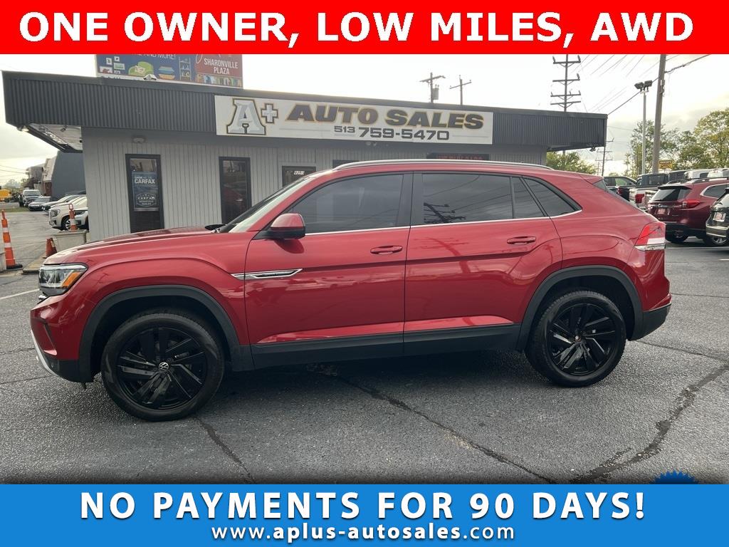 Atlas Cross Sport 2.0T SE w/Technology (A8), 4D Sport Utility, 2.0L TSI, 8-Speed Automatic with Tiptronic, AWD, Red Metallic, Titan Black Premium Synthetic, 3.60 Axle Ratio, 4-Wheel Disc Brakes, 6 Speakers, ABS brakes, Air Conditioning, Alloy wheels, AM/FM radio: SiriusXM with 360L, Auto-dimming Rear-View mirror, Automatic temperature control, Black Wheel Package, Brake assist, Bumpers: body-color, Compass, Delay-off headlights, Driver door bin, Driver vanity mirror, Dual front impact airbags, Dual front side impact airbags, Electronic Stability Control, Emergency communication system, Exterior Parking Camera Rear, First Aid Kit, Four wheel independent suspension, Frameless Auto-Dimming Rearview Mirror, Front anti-roll bar, Front Bucket Seats, Front Center Armrest, Front dual zone A/C, Front fog lights, Front reading lights, Fully automatic headlights, Heated Comfort Front Bucket Seats, Heated door mirrors, Heated front seats, Heavy Duty Trunk Liner w/VW CarGo Blocks, Illuminated entry, Leather Shift Knob, Low tire pressure warning, Occupant sensing airbag, Outside temperature display, Overhead airbag, Overhead console, Panic alarm, Passenger door bin, Passenger vanity mirror, Perforated V-Tex Leatherette Seating Surfaces, Power door mirrors, Power driver seat, Power steering, Power windows, Radio data system, Radio: MIB3 Composition Media w/8" Touchscreen, Rain sensing wipers, Rear anti-roll bar, Rear reading lights, Rear seat center armrest, Rear window defroster, Rear window wiper, Remote keyless entry, Roadside Assistance Kit, Roof rack: rails only, Rubber Mats Kit, Security system, Speed control, Speed-sensing steering, Split folding rear seat, Spoiler, Standard Suspension, Steering wheel mounted audio controls, Tachometer, Telescoping steering wheel, Tilt steering wheel, Traction control, Trip computer, Turn signal indicator mirrors, Variably intermittent wipers, VW Care, Wheels: 20" x 8J 5-Spoke Black Painted Alloy, Wheels: 20" x 8J 5-Spoke Silver Painted Alloy, Atlas Cross Sport 2.0T SE w/Technology (A8), 4D Sport Utility, 2.0L TSI, 8-Speed Automatic with Tiptronic, AWD, Red Metallic, Titan Black Premium Synthetic.