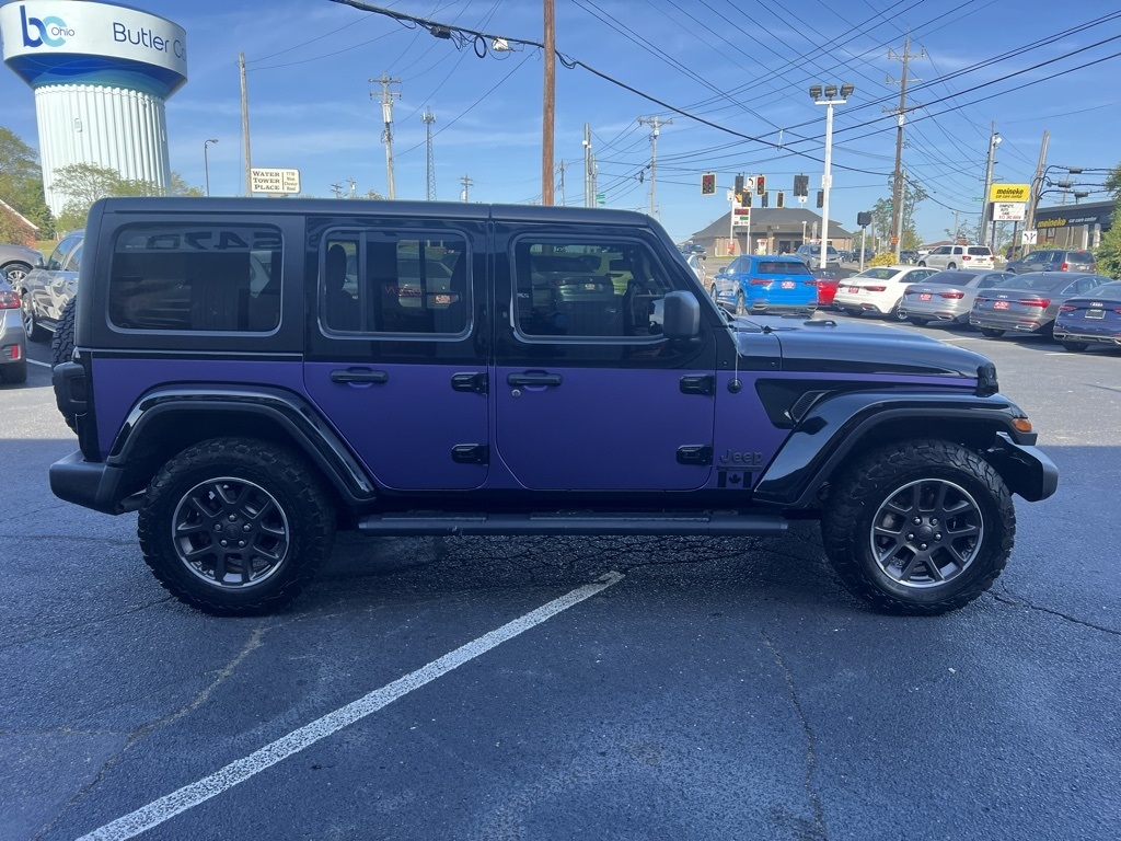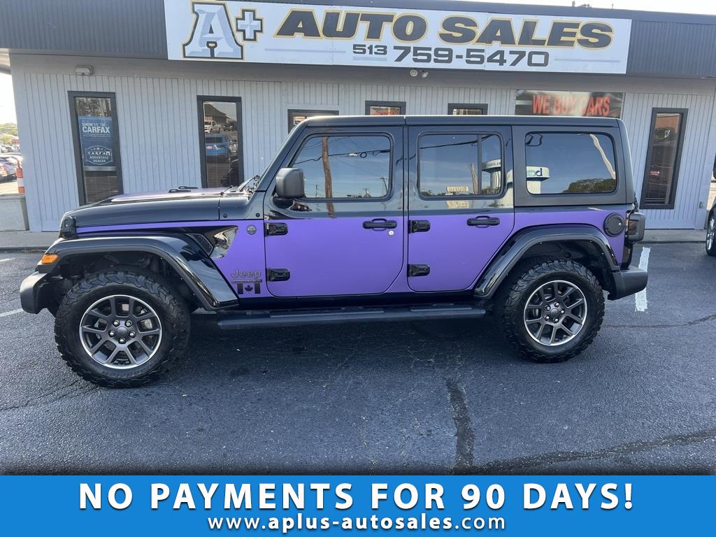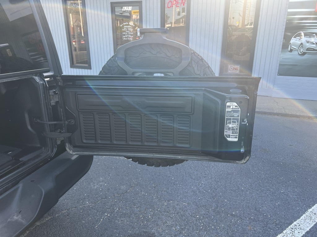 Wrangler Unlimited Sport S, 4D Sport Utility, 3.6L V6 24V VVT, 8-Speed Automatic, 4WD, Black Clearcoat, Black Cloth, Quick Order Package 25Q 80th Edition (DISC), Quick Order Package 26Q 80th Edition (DISC), 240 Amp Alternator, 3.45 Rear Axle Ratio, 4-Wheel Disc Brakes, 7 & 4 Pin Wiring Harness, 700 Amp Maintenance Free Battery, 8 Speakers, ABS brakes, Air Conditioning, AM/FM radio, Aux Battery, Auxiliary Switches, Brake assist, Class II Receiver Hitch, Cloth Low-Back Bucket Seats, Compass, Delay-off headlights, Driver door bin, Driver vanity mirror, Dual front impact airbags, Dual front side impact airbags, Electronic Stability Control, Front anti-roll bar, Front Bucket Seats, Front Center Armrest w/Storage, Front fog lights, Front reading lights, Integrated roll-over protection, Low tire pressure warning, Navigation System, Non-Lock Fuel Cap w/o Discriminator, Normal Duty Suspension, Occupant sensing airbag, Outside temperature display, ParkView Rear Back-Up Camera, Passenger door bin, Passenger vanity mirror, Power steering, Radio data system, Radio: Uconnect 3 w/5" Display, Rear anti-roll bar, Rear reading lights, Speed control, Split folding rear seat, Steering wheel mounted audio controls, Stop-Start Dual Battery System, Tachometer, Telescoping steering wheel, Tilt steering wheel, Traction control, Trailer Tow & HD Electrical Group, Trip computer, Variably intermittent wipers, Wheels: 17" x 7.5" Black Steel Styled, Wrangler Unlimited Sport S, 4D Sport Utility, 3.6L V6 24V VVT, 8-Speed Automatic, 4WD, Black Clearcoat, Black Cloth, Quick Order Package 25Q 80th Edition (DISC), Quick Order Package 26Q 80th Edition (DISC).