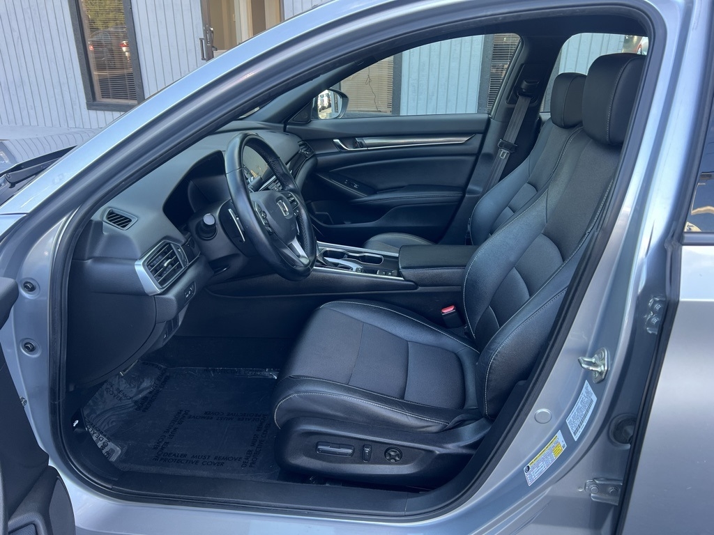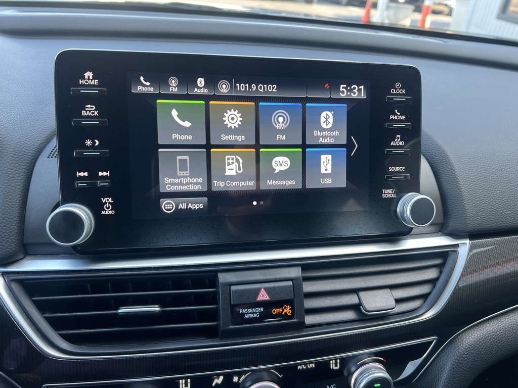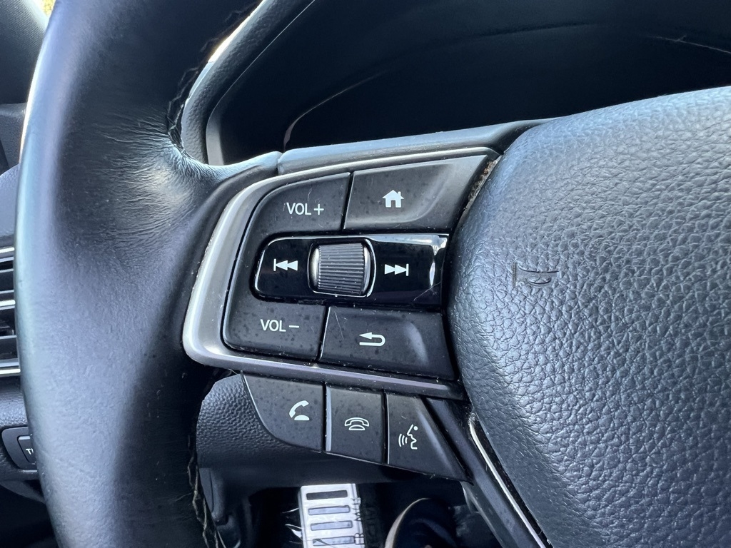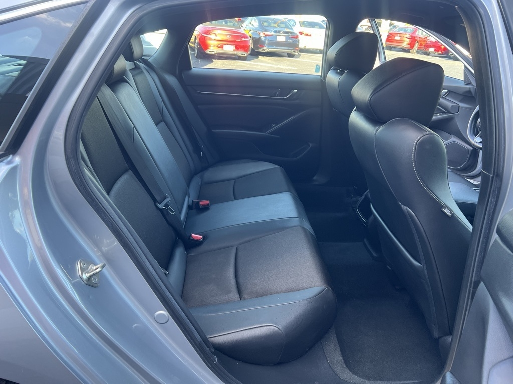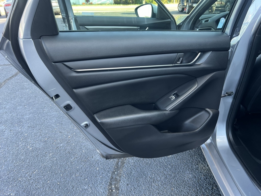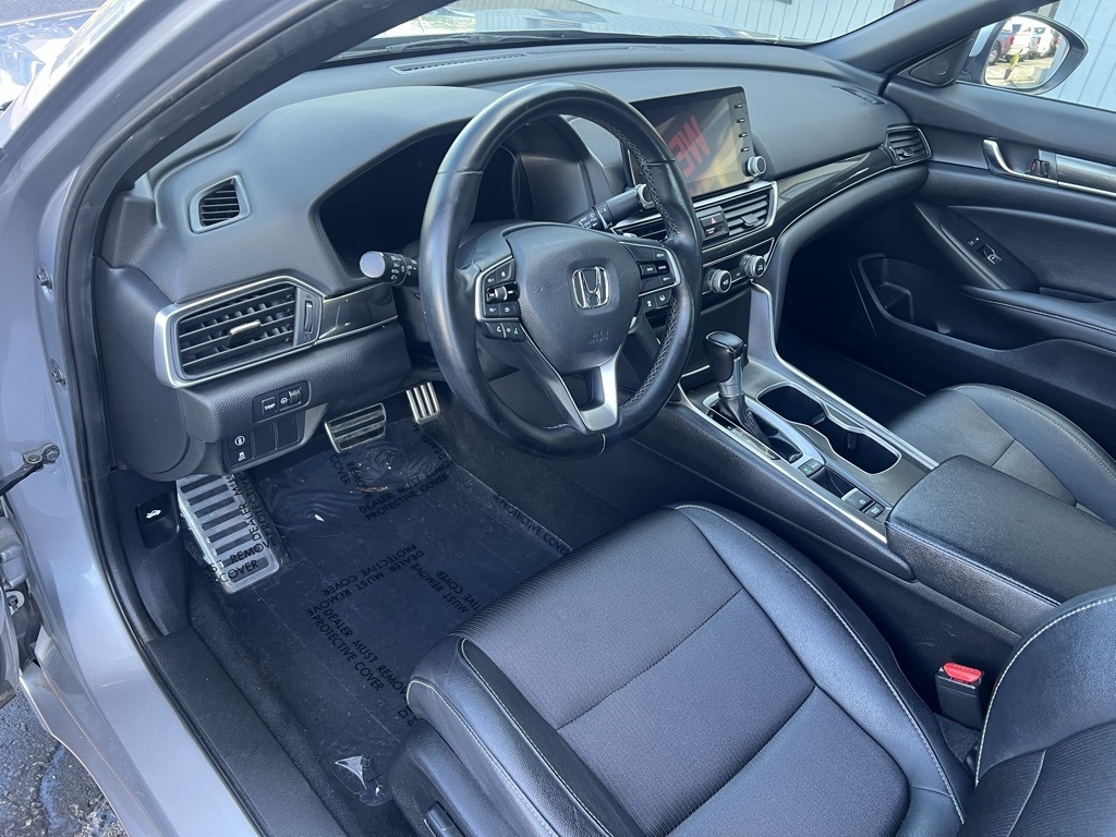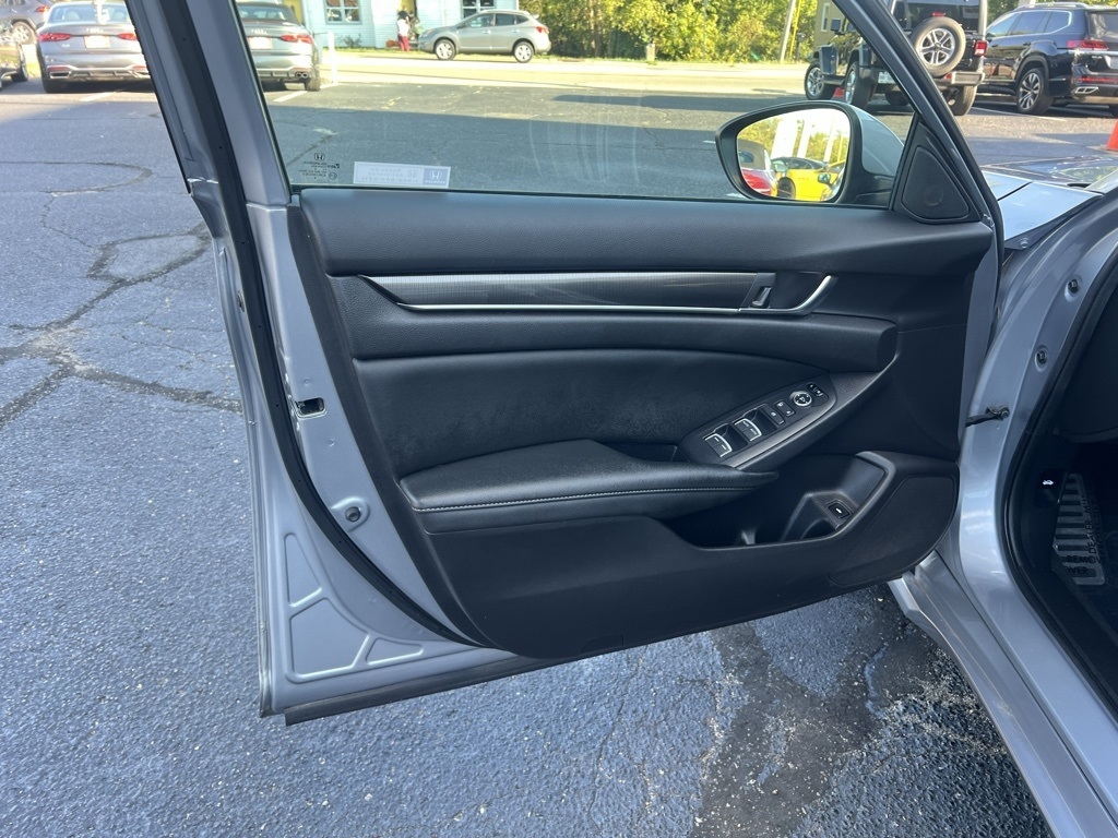 Accord Sport, 4D Sedan, 1.5T I4 DOHC 16V Turbocharged VTEC, CVT, FWD, Silver, Black Cloth, 4-Wheel Disc Brakes, 8 Speakers, ABS brakes, Air Conditioning, Alloy wheels, AM/FM radio, Apple CarPlay/Android Auto, Auto High-beam Headlights, Automatic temperature control, Brake assist, Bumpers: body-color, Cloth Seat Trim, Delay-off headlights, Driver door bin, Driver vanity mirror, Dual front impact airbags, Dual front side impact airbags, Electronic Stability Control, Emergency communication system: HondaLink, Exterior Parking Camera Rear, Forward collision: Collision Mitigation Braking System (CMBS) + FCW mitigation, Four wheel independent suspension, Front anti-roll bar, Front Bucket Seats, Front Center Armrest, Front dual zone A/C, Front fog lights, Front reading lights, Fully automatic headlights, Illuminated entry, Knee airbag, Leather Shift Knob, Leather steering wheel, Low tire pressure warning, Occupant sensing airbag, Outside temperature display, Overhead airbag, Overhead console, Panic alarm, Passenger door bin, Passenger vanity mirror, Power door mirrors, Power driver seat, Power steering, Power windows, Radio data system, Radio: 180-Watt AM/FM Audio System, Rear anti-roll bar, Rear seat center armrest, Rear window defroster, Remote keyless entry, Security system, Speed control, Speed-sensing steering, Speed-Sensitive Wipers, Split folding rear seat, Spoiler, Steering wheel mounted audio controls, Tachometer, Telescoping steering wheel, Tilt steering wheel, Traction control, Trip computer, Variably intermittent wipers, Wheels: 19" Machine-Finished Alloy w/Black Inserts, Accord Sport, 4D Sedan, 1.5T I4 DOHC 16V Turbocharged VTEC, CVT, FWD, Silver, Black Cloth.