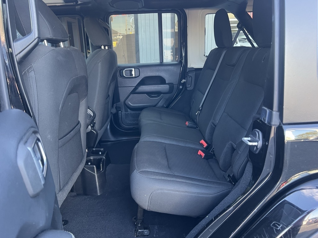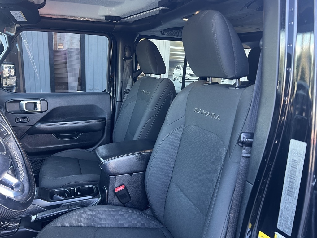 Wrangler Unlimited Sahara, 4D Sport Utility, 3.6L V6 24V VVT, 8-Speed Automatic, 4WD, Black Clearcoat, Black Cloth, 3.45 Rear Axle Ratio, 4-Wheel Disc Brakes, 8 Speakers, ABS brakes, Air Conditioning, Alloy wheels, AM/FM radio: SiriusXM, Apple CarPlay/Android Auto, Automatic temperature control, Brake assist, Cloth Low-Back Bucket Seats, Compass, Delay-off headlights, Driver door bin, Driver vanity mirror, Dual front impact airbags, Dual front side impact airbags, Electronic Stability Control, Front anti-roll bar, Front Bucket Seats, Front Center Armrest w/Storage, Front dual zone A/C, Front fog lights, Front reading lights, Fully automatic headlights, Garage door transmitter, Heated door mirrors, Heavy Duty Suspension w/Gas Shocks, Illuminated entry, Integrated roll-over protection, Leather steering wheel, Low tire pressure warning, Non-Lock Fuel Cap w/o Discriminator, Occupant sensing airbag, Outside temperature display, Panic alarm, ParkView Rear Back-Up Camera, Passenger door bin, Passenger vanity mirror, Power door mirrors, Power steering, Power windows, Quick Order Package 24G, Radio data system, Radio: Uconnect 4 w/7" Display, Rear anti-roll bar, Rear reading lights, Remote keyless entry, Security system, Speed control, Split folding rear seat, Steering wheel mounted audio controls, Tachometer, Telescoping steering wheel, Tilt steering wheel, Traction control, Trip computer, Variably intermittent wipers, Voltmeter, Wheels: 18" x 7.5" Polished w/Gray Spokes, Wrangler Unlimited Sahara, 4D Sport Utility, 3.6L V6 24V VVT, 8-Speed Automatic, 4WD, Black Clearcoat, Black Cloth.