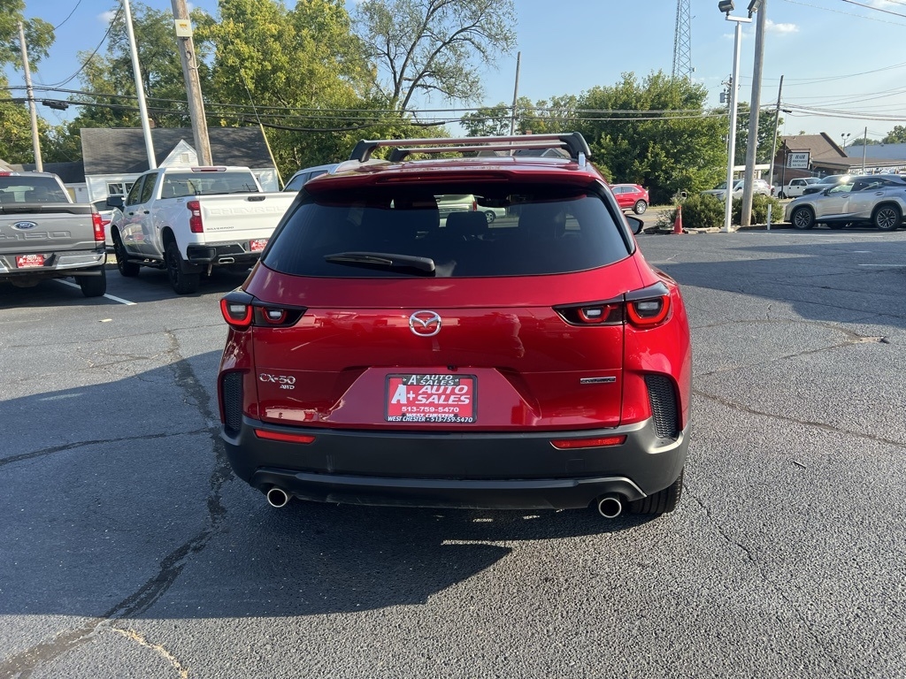 **New Tires**, Fresh Oil Change, CX-50 2.5 S Preferred Package, 4D Sport Utility, SKYACTIV® 2.5L 4-Cylinder DOHC 16V, 6-Speed Automatic, AWD, Soul Red Crystal Metallic, Gray Artificial Leather, 4-Wheel Disc Brakes, 8 Speakers, ABS brakes, Air Conditioning, Alloy wheels, AM/FM radio, AppLink/Apple CarPlay and Android Auto, Auto High-beam Headlights, Automatic temperature control, Brake assist, Bumpers: body-color, Cargo Blocks, Cargo Package, Delay-off headlights, Driver door bin, Driver vanity mirror, Dual front impact airbags, Dual front side impact airbags, E911 Automatic Emergency Notification, Electronic Stability Control, Emergency communication system: MAZDA CONNECT, Exterior Parking Camera Rear, Front anti-roll bar, Front Bucket Seats, Front Center Armrest, Front dual zone A/C, Front reading lights, Front wheel independent suspension, Fully automatic headlights, Half Leatherette Seat Trim, Heated door mirrors, Heated Front Bucket Seats, Heated front seats, Illuminated entry, Infotainment System Voice Command, Knee airbag, Leather Shift Knob, Leather steering wheel, Low tire pressure warning, Multifunction Commander Control, Occupant sensing airbag, Outside temperature display, Overhead airbag, Overhead console, Panic alarm, Passenger door bin, Passenger vanity mirror, Power door mirrors, Power driver seat, Power Liftgate, Power steering, Power windows, Radio Broadcast Data System Program Information, Radio data system, Radio: AM/FM/HD Audio System, Rain sensing wipers, Rear seat center armrest, Rear window defroster, Rear window wiper, Remote keyless entry, Silver Cross Bars, SMS Text Msg Audio Delivery & Reply, Soul Red Crystal Metallic Paint Charge, Speed control, Speed-sensing steering, Split folding rear seat, Spoiler, Steering wheel mounted audio controls, Tachometer, Telescoping steering wheel, Tilt steering wheel, Traction control, Trip computer, Turn signal indicator mirrors, Variably intermittent wipers, Wheels: 17" x 7J Aluminum Alloy, CX-50 2.5 S Preferred Package, 4D Sport Utility, SKYACTIV® 2.5L 4-Cylinder DOHC 16V, 6-Speed Automatic, AWD, Soul Red Crystal Metallic, Gray Artificial Leather.
