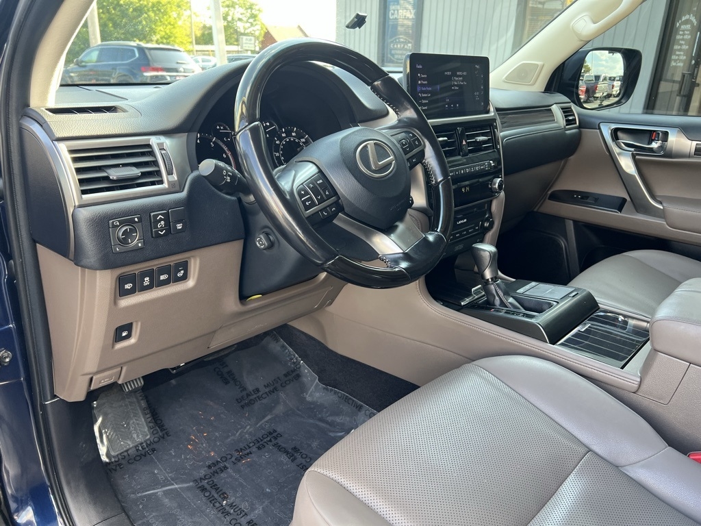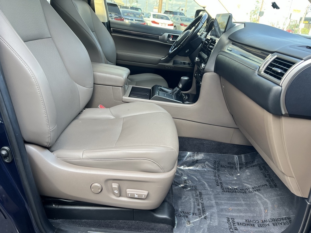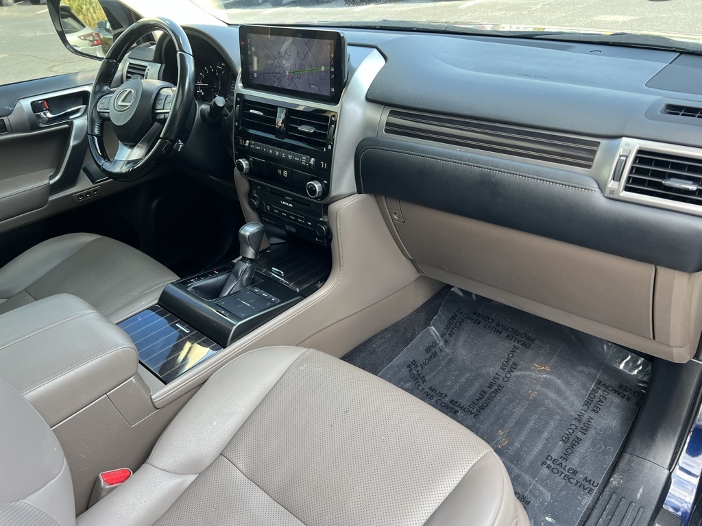 **New Tires**, GX 460, 4D Sport Utility, 4.6L V8 DOHC Dual VVT-i 32V, 6-Speed Automatic with Sequential Shift ECT, 4WD, Blue, Brown Artificial Leather, 18" x 7.5J Aluminum Alloy Wheels, 2nd Row Captain's Chairs, 3rd Row Power Seats, Headlamp Washers, Wheels: 19" x 7.5J Dark Gray Metallic Alum Alloy, 3.909 Axle Ratio, 3rd row seats: split-bench, 4-Wheel Disc Brakes, 9 Speakers, ABS brakes, Accessory Package, Air Conditioning, All-Weather Cargo Mat, All-Weather Floor Liners, All-Weather Floor Liners w/Cargo Mat, All-Weather Floor Mat, All-Weather Floor Mats w/Cargo Mat, Alloy wheels, AM/FM radio: SiriusXM, Anti-whiplash front head restraints, Apple CarPlay/Android Auto, Auto High-beam Headlights, Auto tilt-away steering wheel, Auto-dimming Rear-View mirror, Automatic temperature control, Brake assist, Bumpers: body-color, CD player, Compass, Delay-off headlights, Driver door bin, Driver vanity mirror, Driver's Seat Mounted Armrest, Dual front impact airbags, Dual front side impact airbags, Electronic Stability Control, Emergency communication system, Exterior Parking Camera Rear, Front anti-roll bar, Front Bucket Seats, Front dual zone A/C, Front reading lights, Front wheel independent suspension, Fully automatic headlights, Garage door transmitter: HomeLink, Heated door mirrors, Heated Wood & Leather Steering Wheel, Illuminated entry, Illuminated running boards, Knee airbag, Leather Shift Knob, Leather steering wheel, Low tire pressure warning, Memory seat, Navigation System, NuLuxe Synthetic Leather Seat Trim, Occupant sensing airbag, Outside temperature display, Overhead airbag, Overhead console, Panic alarm, Passenger door bin, Passenger seat mounted armrest, Passenger vanity mirror, Power door mirrors, Power driver seat, Power moonroof, Power passenger seat, Power steering, Power windows, Premium Paint, Premium Plus Package, Premium Plus Package w/Captain's Chairs, Radio data system, Radio: Lexus Multimedia System, Rear anti-roll bar, Rear reading lights, Rear seat center armrest, Rear side impact airbag, Rear window defroster, Rear window wiper, Remote keyless entry, Roof rack: rails only, Security system, Speed control, Speed-sensing steering, Split folding rear seat, Spoiler, Steering wheel memory, Steering wheel mounted audio controls, Tachometer, Telescoping steering wheel, Tilt steering wheel, Tow Hitch Receiver w/Ball Mount, Traction control, Trip computer, Turn signal indicator mirrors, Variably intermittent wipers, GX 460, 4D Sport Utility, 4.6L V8 DOHC Dual VVT-i 32V, 6-Speed Automatic with Sequential Shift ECT, 4WD, Blue, Brown Artificial Leather, 18" x 7.5J Aluminum Alloy Wheels, 2nd Row Captain's Chairs, 3rd Row Power Seats, Headlamp Washers, Wheels: 19" x 7.5J Dark Gray Metallic Alum Alloy.