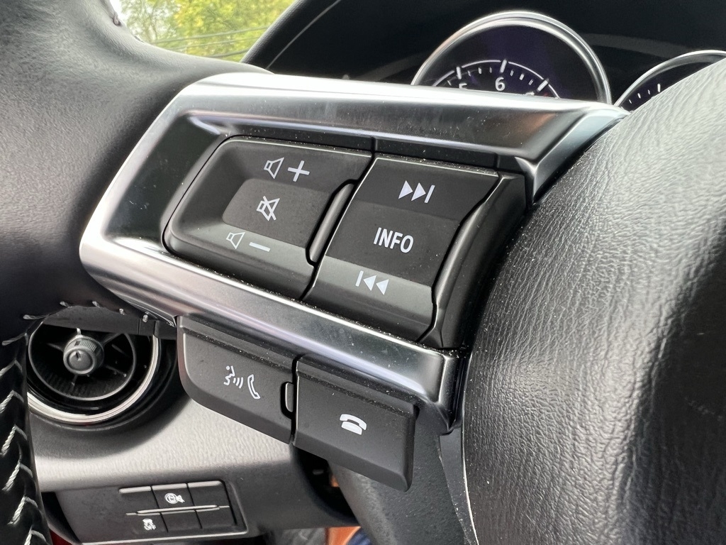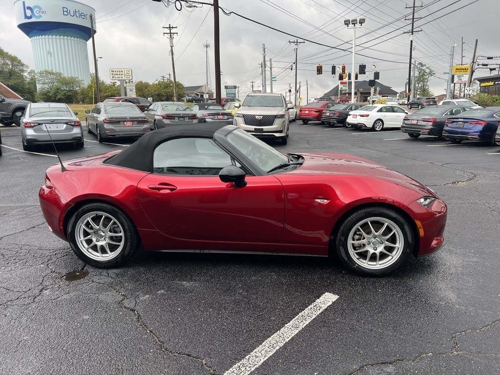 MX-5 Miata Sport, 2D Convertible, 2.0L 4-Cylinder DOHC 16V, 6-Speed Manual, RWD, Soul Red Crystal Metallic, Black Cloth, 4-Wheel Disc Brakes, 6 Speakers, ABS brakes, Air Conditioning, Alloy wheels, AM/FM radio, AppLink/Apple CarPlay and Android Auto, Brake assist, Bumpers: body-color, Cargo Net, Cloth Upholstery, Convertible roof wind blocker, Driver vanity mirror, Dual front impact airbags, Dual front side impact airbags, Electronic Stability Control, Emergency communication system: MAZDA CONNECT, Exterior Parking Camera Rear, First Aid Kit, Four wheel independent suspension, Front anti-roll bar, Front Bucket Seats, Front Center Armrest, Glass rear window, Illuminated entry, Leather Shift Knob, Low tire pressure warning, MAZDA CONNECT Infotainment System, Occupant sensing airbag, Outside temperature display, Panic alarm, Passenger vanity mirror, Power door mirrors, Power steering, Power windows, Radio data system, Radio: AM/FM Sound System, Rear anti-roll bar, Rear window defroster, Remote keyless entry, Roadside Assistance Kit, Soul Red Crystal Paint Charge, Speed control, Speed-sensing steering, Sport steering wheel, Steering wheel mounted audio controls, Tachometer, Telescoping steering wheel, Tilt steering wheel, Traction control, Trip computer, Variably intermittent wipers, Wheel Locks, Wheels: 16" x 6" Metallic Black Alloy Wheel Design, MX-5 Miata Sport, 2D Convertible, 2.0L 4-Cylinder DOHC 16V, 6-Speed Manual, RWD, Soul Red Crystal Metallic, Black Cloth.