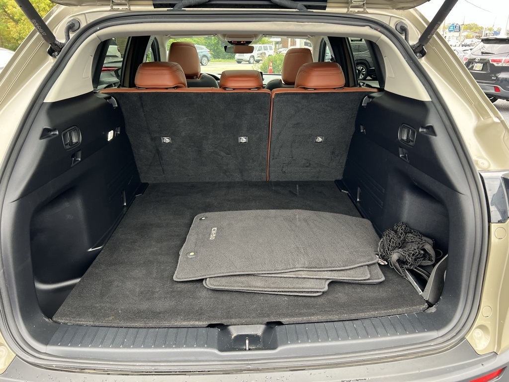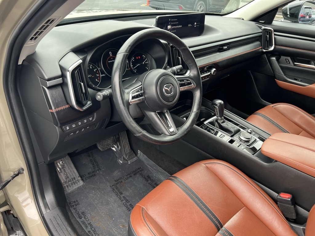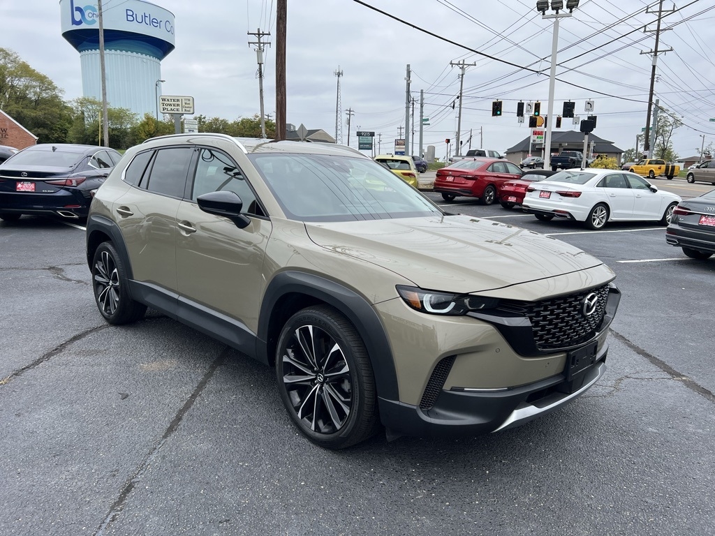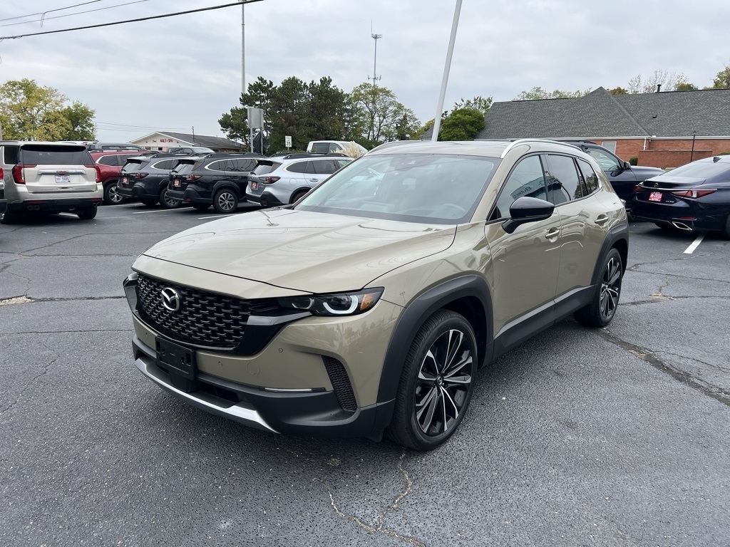 CX-50 2.5 Turbo Premium Plus Package, 4D Sport Utility, 2.5L I4 Turbocharged DOHC 16V LEV3-ULEV125 227hp, 6-Speed Automatic, AWD, Zircon Sand Metallic, Terracotta Leather, 12 Speakers, 20" x 8J Aluminum Alloy Wheels, 3.841 Axle Ratio, 4-Wheel Disc Brakes, ABS brakes, Air Conditioning, Alloy wheels, AM/FM radio: SiriusXM, AppLink/Apple CarPlay and Android Auto, Auto High-beam Headlights, Auto-dimming door mirrors, Auto-dimming Rear-View mirror, Automatic temperature control, Brake assist, Bumpers: body-color, Cargo Blocks, Cargo Package, Compass, Delay-off headlights, Driver door bin, Driver vanity mirror, Dual front impact airbags, Dual front side impact airbags, Electronic Stability Control, Emergency communication system: MAZDA CONNECT, Front anti-roll bar, Front Bucket Seats, Front Center Armrest w/Storage, Front dual zone A/C, Front reading lights, Front wheel independent suspension, Fully automatic headlights, Garage door transmitter: HomeLink, Heads-Up Display, Heated & Ventilated Front Bucket Seats, Heated door mirrors, Heated front seats, Heated rear seats, Heated steering wheel, Illuminated entry, Knee airbag, Leather Seat Trim, Leather Shift Knob, Leather steering wheel, Low tire pressure warning, Memory seat, Navigation system: MAZDA CONNECT, Occupant sensing airbag, Outside temperature display, Overhead airbag, Overhead console, Panic alarm, Passenger door bin, Passenger vanity mirror, Power door mirrors, Power driver seat, Power Liftgate, Power moonroof, Power passenger seat, Power steering, Power windows, Radio data system, Radio: AM/FM/HD Audio System, Rain sensing wipers, Rear seat center armrest, Rear window defroster, Rear window wiper, Remote keyless entry, Speed control, Speed-sensing steering, Split folding rear seat, Spoiler, Steering wheel mounted audio controls, Tachometer, Telescoping steering wheel, Tilt steering wheel, Traction control, Trip computer, Turn signal indicator mirrors, Variably intermittent wipers, Ventilated front seats, Zircon Sand Metallic Paint Charge, CX-50 2.5 Turbo Premium Plus Package, 4D Sport Utility, 2.5L I4 Turbocharged DOHC 16V LEV3-ULEV125 227hp, 6-Speed Automatic, AWD, Zircon Sand Metallic, Terracotta Leather.