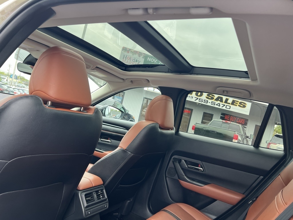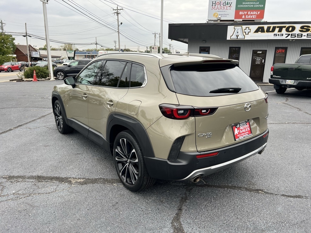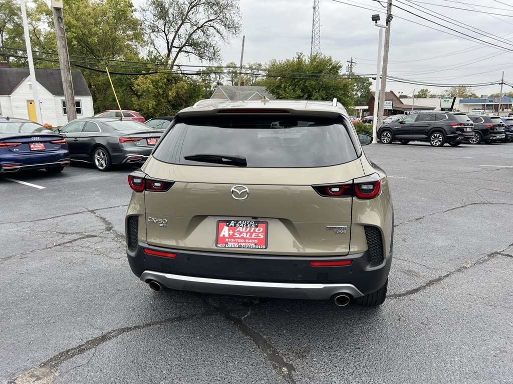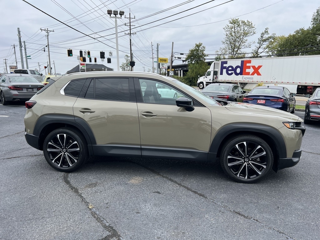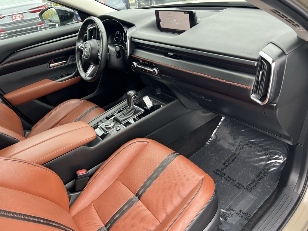CX-50 2.5 Turbo Premium Plus Package, 4D Sport Utility, 2.5L I4 Turbocharged DOHC 16V LEV3-ULEV125 227hp, 6-Speed Automatic, AWD, Zircon Sand Metallic, Terracotta Leather, 12 Speakers, 20" x 8J Aluminum Alloy Wheels, 3.841 Axle Ratio, 4-Wheel Disc Brakes, ABS brakes, Air Conditioning, Alloy wheels, AM/FM radio: SiriusXM, AppLink/Apple CarPlay and Android Auto, Auto High-beam Headlights, Auto-dimming door mirrors, Auto-dimming Rear-View mirror, Automatic temperature control, Brake assist, Bumpers: body-color, Cargo Blocks, Cargo Package, Compass, Delay-off headlights, Driver door bin, Driver vanity mirror, Dual front impact airbags, Dual front side impact airbags, Electronic Stability Control, Emergency communication system: MAZDA CONNECT, Front anti-roll bar, Front Bucket Seats, Front Center Armrest w/Storage, Front dual zone A/C, Front reading lights, Front wheel independent suspension, Fully automatic headlights, Garage door transmitter: HomeLink, Heads-Up Display, Heated & Ventilated Front Bucket Seats, Heated door mirrors, Heated front seats, Heated rear seats, Heated steering wheel, Illuminated entry, Knee airbag, Leather Seat Trim, Leather Shift Knob, Leather steering wheel, Low tire pressure warning, Memory seat, Navigation system: MAZDA CONNECT, Occupant sensing airbag, Outside temperature display, Overhead airbag, Overhead console, Panic alarm, Passenger door bin, Passenger vanity mirror, Power door mirrors, Power driver seat, Power Liftgate, Power moonroof, Power passenger seat, Power steering, Power windows, Radio data system, Radio: AM/FM/HD Audio System, Rain sensing wipers, Rear seat center armrest, Rear window defroster, Rear window wiper, Remote keyless entry, Speed control, Speed-sensing steering, Split folding rear seat, Spoiler, Steering wheel mounted audio controls, Tachometer, Telescoping steering wheel, Tilt steering wheel, Traction control, Trip computer, Turn signal indicator mirrors, Variably intermittent wipers, Ventilated front seats, Zircon Sand Metallic Paint Charge, CX-50 2.5 Turbo Premium Plus Package, 4D Sport Utility, 2.5L I4 Turbocharged DOHC 16V LEV3-ULEV125 227hp, 6-Speed Automatic, AWD, Zircon Sand Metallic, Terracotta Leather.