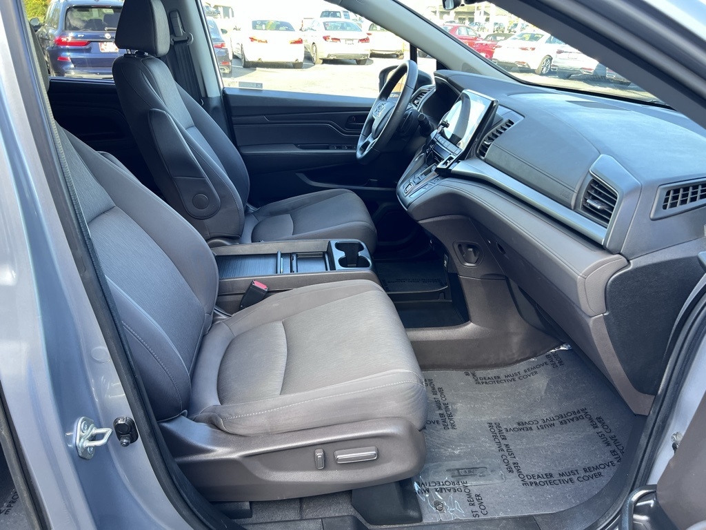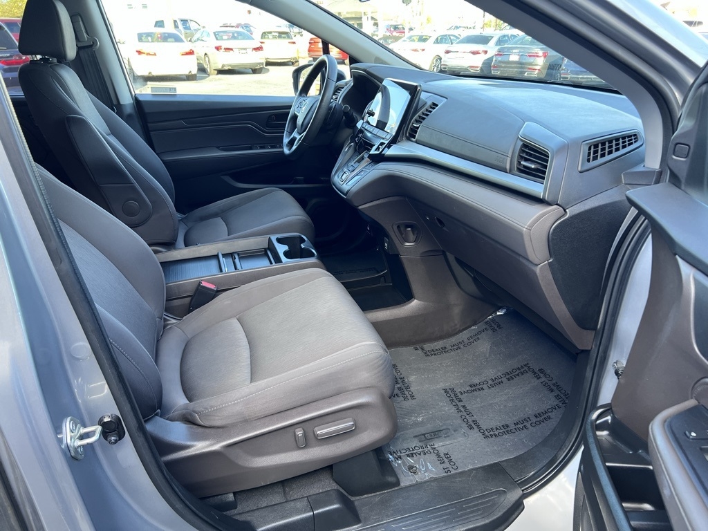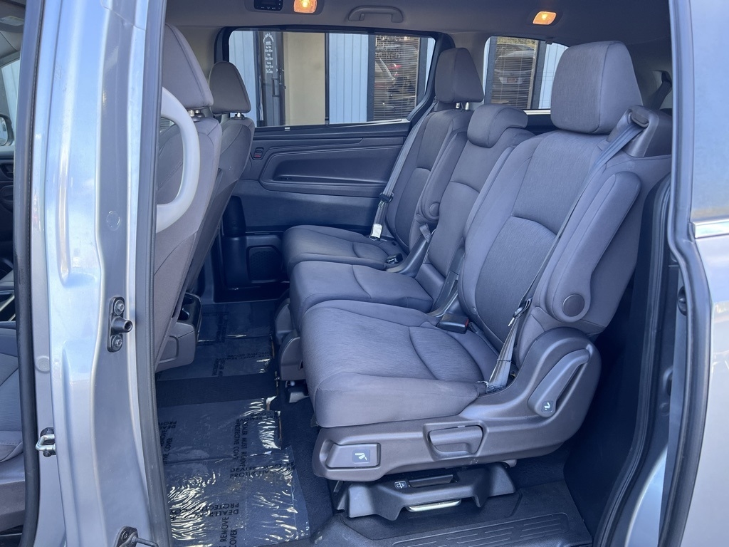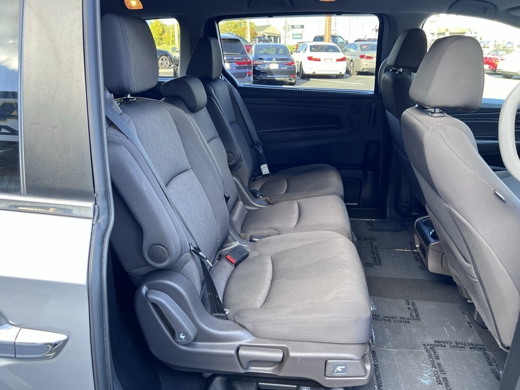 Odyssey EX, 4D Passenger Van, 3.5L V6 SOHC i-VTEC 24V, 10-Speed Automatic, FWD, Silver, Black Cloth, 3.61 Axle Ratio, 3rd row seats: split-bench, 4-Wheel Disc Brakes, 7 Speakers, A/V remote: CabinControl, ABS brakes, Adaptive Cruise Control: Adaptive Cruise Control (ACC) with Low-Speed Follow, Air Conditioning, Alloy wheels, AM/FM radio: SiriusXM, Anti-whiplash front head restraints, Apple CarPlay/Android Auto, Auto High-beam Headlights, Automatic temperature control, Blind Spot Information (BSI) System warning, Brake assist, Bumpers: body-color, Cloth Seat Trim, Delay-off headlights, Driver door bin, Driver vanity mirror, Driver's Seat Mounted Armrest, Dual front impact airbags, Dual front side impact airbags, Electronic Stability Control, Exterior Parking Camera Rear, Forward collision: Collision Mitigation Braking System (CMBS) + FCW mitigation, Four wheel independent suspension, Front anti-roll bar, Front Bucket Seats, Front dual zone A/C, Front fog lights, Front reading lights, Fully automatic headlights, Heated door mirrors, Heated Front Bucket Seats, Heated front seats, Illuminated entry, Knee airbag, Lane departure: Lane Keeping Assist System (LKAS) active, Low tire pressure warning, Occupant sensing airbag, Outside temperature display, Overhead airbag, Overhead console, Panic alarm, Passenger door bin, Passenger seat mounted armrest, Passenger vanity mirror, Power door mirrors, Power driver seat, Power passenger seat, Power steering, Power windows, Radio data system, Radio: 160-Watt AM/FM/HD/SiriusXM Audio System, Rear air conditioning, Rear anti-roll bar, Rear reading lights, Rear seat center armrest, Rear window defroster, Rear window wiper, Reclining 3rd row seat, Remote keyless entry, Security system, Speed control, Speed-sensing steering, Speed-Sensitive Wipers, Split folding rear seat, Spoiler, Steering wheel mounted audio controls, Tachometer, Telescoping steering wheel, Tilt steering wheel, Traction control, Trip computer, Turn signal indicator mirrors, Variably intermittent wipers, Wheels: 18" Pewter Gray-Painted Alloy, Odyssey EX, 4D Passenger Van, 3.5L V6 SOHC i-VTEC 24V, 10-Speed Automatic, FWD, Silver, Black Cloth.