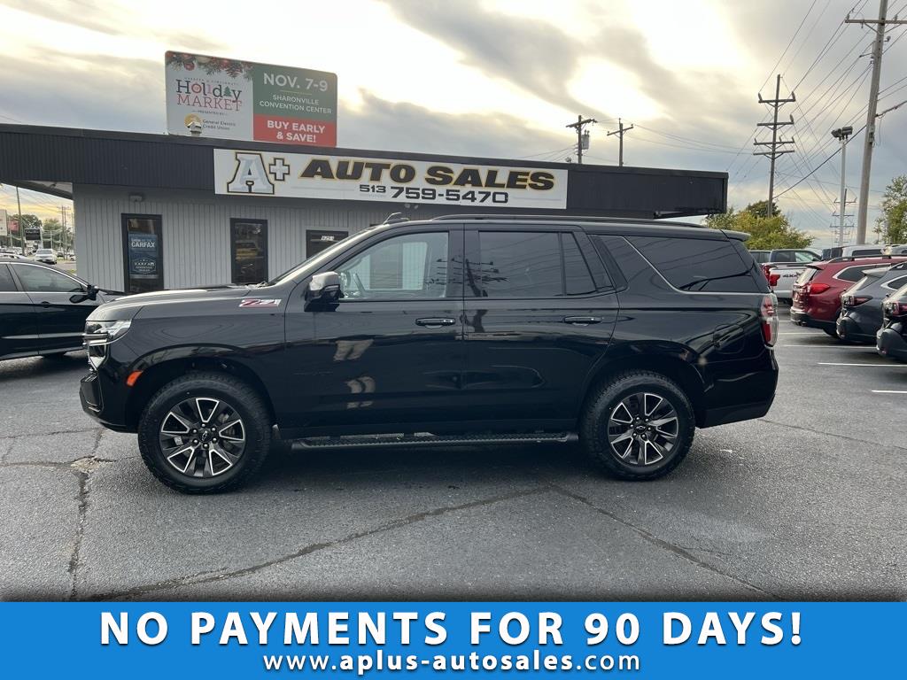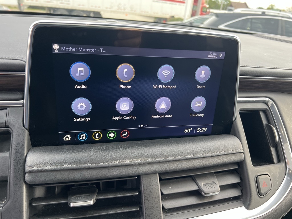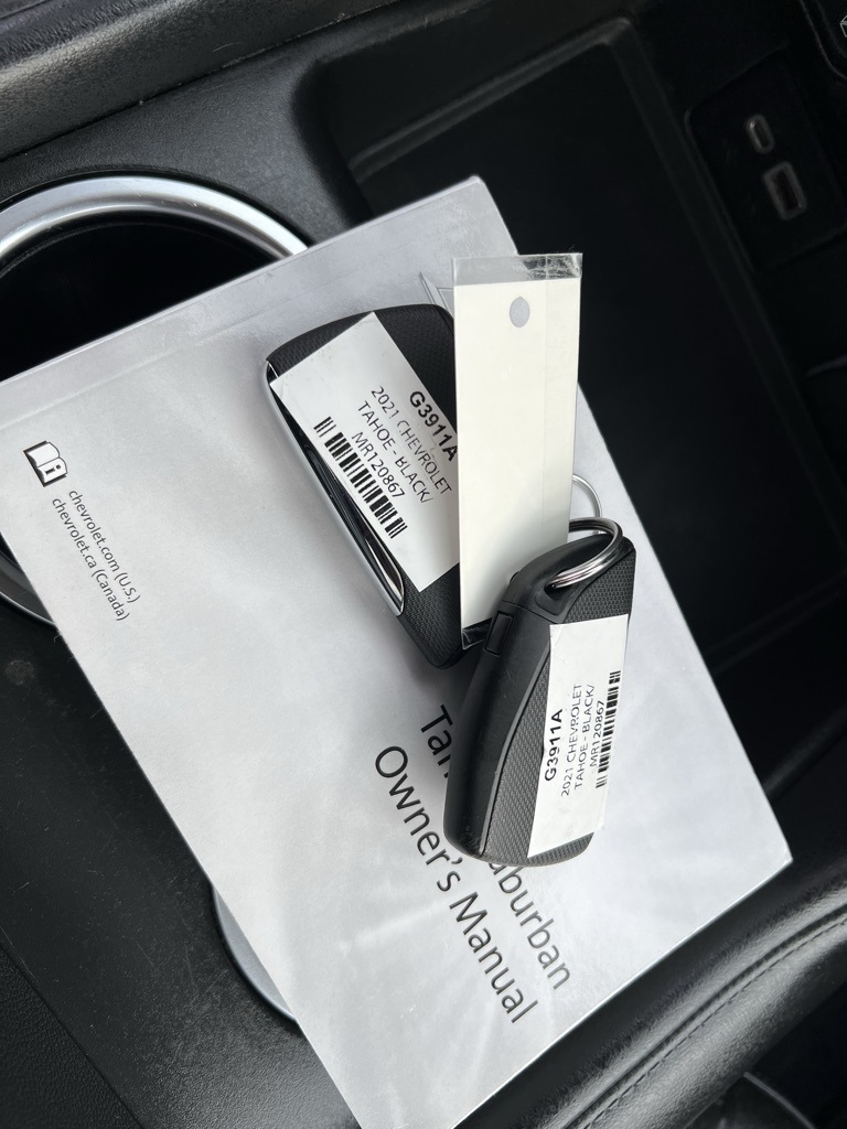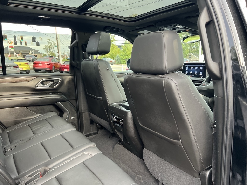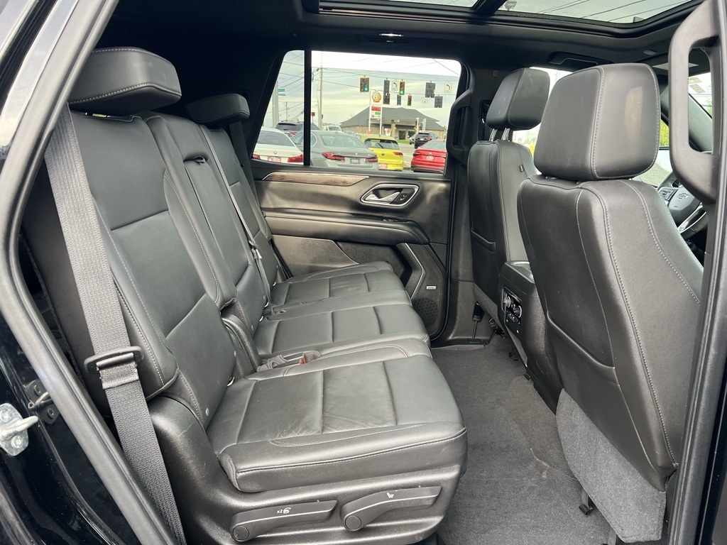 **New Tires**, Fresh Oil Change, Tahoe Z71, 4D Sport Utility, EcoTec3 5.3L V8, 10-Speed Automatic with Overdrive, 4WD, Black, Black Leather, 10-Way Power Driver & Passenger Seat Adjusters, 1st & 2nd Row Color-Keyed Carpeted Floor Mats, 2 USB Data Ports, 2-Speed Active Electronic AutoTrac Transfer Case, 2nd Row Pwr Release 60/40 Split-Folding Bench Seat, 3.23 Rear Axle Ratio, 3rd Row 60/40 Power-Folding Split-Bench Seat, 3rd row seats: split-bench, 4-Wheel Disc Brakes, 9 Speakers, ABS brakes, Advanced Trailering Package, Advanced Trailering System, Air Conditioning, Alloy wheels, AM/FM radio: SiriusXM with 360L, Apple CarPlay/Android Auto, Auto High-beam Headlights, Auto-Dimming Inside Rear-View Mirror, Auto-dimming Rear-View mirror, Automatic Heated Steering Wheel, Automatic temperature control, Black Tubular Assist Steps, Bose 9-Speaker Stereo Audio System Feature, Brake assist, Bright Front & Rear Door Sill Plates, Bumpers: body-color, Color-Keyed Carpeting Floor Covering, Compass, Delay-off headlights, Driver & Front Outboard Passenger Airbags, Driver Alert Package, Driver door bin, Driver vanity mirror, Dual front impact airbags, Dual front side impact airbags, Dual-Pane Power Panoramic Sunroof, Electronic Stability Control, Emergency communication system: OnStar and Chevrolet connected services capable, Extra Capacity Cooling System, Floor Console w/Storage Area, Four wheel independent suspension, Front & Rear Park Assist, Front anti-roll bar, Front Bucket Seats, Front Center Armrest, Front dual zone A/C, Front High-Approach Angle Fascia, Front High-Back Reclining Bucket Seats, Front reading lights, Fully automatic headlights, Garage door transmitter, Hands-Free Rear Power Programmable Liftgate, HD Radio, HD Surround Vision, Heated 2nd Row Outboard Seats, Heated door mirrors, Heated Driver & Front Passenger Seats, Heated front seats, Hill Descent Control, Hitch Guidance w/Hitch View, Illuminated entry, Infotainment Display, Integrated Trailer Brake Controller, Lane Change Alert w/Side Blind Zone Alert, Lane Keep Assist w/Lane Departure Warning, Leather Seat Trim, Leather steering wheel, Leather-Wrapped Steering Wheel, LED Daytime Running Lamps, License Plate Front Mounting Package, Low tire pressure warning, Luxury Package, Max Trailering Package, Memory seat, Memory Settings, Memory Settings for Driver, Occupant sensing airbag, Outside Heated Power-Adjustable Mirrors, Outside temperature display, Overhead airbag, Overhead console, Panic alarm, Passenger door bin, Passenger vanity mirror, Power door mirrors, Power driver seat, Power Liftgate, Power passenger seat, Power steering, Power Tilt & Telescopic Steering Column, Power windows, Preferred Equipment Group 2Z7, Premium audio system: Chevrolet Infotainment 3, Premium Smooth Ride Suspension, Radio: Chevrolet Infotainment 3 Plus System, Rain sensing wipers, Rear air conditioning, Rear anti-roll bar, Rear Cross Traffic Alert, Rear Pedestrian Alert, Rear reading lights, Rear seat center armrest, Rear window defroster, Rear window wiper, Red Horizontal-Mounted Recovery Hooks, Remote keyless entry, Remote Start, Roof rack: rails only, Security system, SiriusXM Radio w/360L, Speed control, Speed-sensing steering, Split folding rear seat, Spoiler, Steering wheel mounted audio controls, Tachometer, Telescoping steering wheel, Tilt steering wheel, Traction control, Trip computer, Universal Home Remote, Variably intermittent wipers, Voltmeter, Wheels: 20" x 9" Machined Aluminum, Z71 Signature Package (DISC), **Panoramic Moonroof**, Tahoe Z71, 4D Sport Utility, EcoTec3 5.3L V8, 10-Speed Automatic with Overdrive, 4WD, Black, Black Leather.