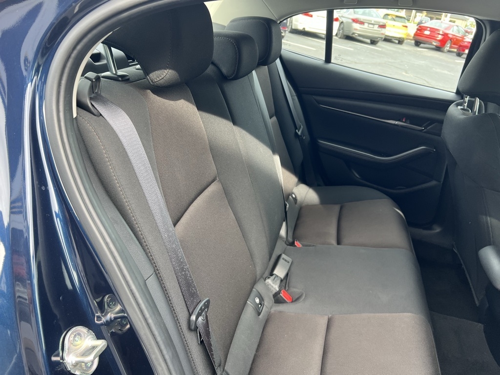 Mazda3 2.5 S, 4D Sedan, 2.5L I4 DOHC 16V LEV3-SULEV30 191hp, 6-Speed Automatic, FWD, Deep Crystal Blue Mica, Black Cloth, 16" x 6.5J Aluminum Alloy Wheels, 4-Wheel Disc Brakes, 6 Speakers, ABS brakes, Air Conditioning, Alloy wheels, AM/FM radio, AppLink/Apple CarPlay and Android Auto, Auto High-beam Headlights, Brake assist, Bumpers: body-color, Cloth Seat Trim, Compass, Delay-off headlights, Driver door bin, Driver vanity mirror, Dual front impact airbags, Dual front side impact airbags, Electronic Stability Control, Emergency communication system: Mazda Connected Services (3-year complimentary trial included), Exterior Parking Camera Rear, Front anti-roll bar, Front Bucket Seats, Front Center Armrest, Front reading lights, Front wheel independent suspension, Fully automatic headlights, Illuminated entry, Knee airbag, Low tire pressure warning, MAZDA CONNECT Infotainment System, Occupant sensing airbag, Outside temperature display, Overhead airbag, Overhead console, Panic alarm, Passenger door bin, Passenger vanity mirror, Power door mirrors, Power steering, Power windows, Radio data system, Radio: AM/FM Audio System, Rear side impact airbag, Rear window defroster, Remote keyless entry, Speed control, Speed-sensing steering, Split folding rear seat, Steering wheel mounted audio controls, Tachometer, Telescoping steering wheel, Tilt steering wheel, Traction control, Trip computer, Variably intermittent wipers, Mazda3 2.5 S, 4D Sedan, 2.5L I4 DOHC 16V LEV3-SULEV30 191hp, 6-Speed Automatic, FWD, Deep Crystal Blue Mica, Black Cloth.
