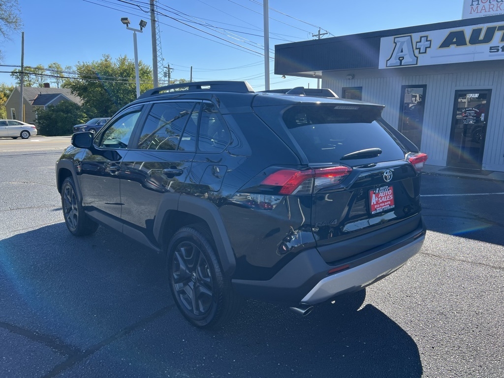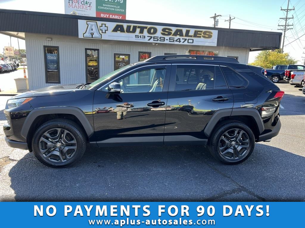 RAV4 Adventure, 4D Sport Utility, 2.5L 4-Cylinder DOHC Dual VVT-i, 8-Speed Automatic, AWD, Black, Black Artificial Leather, 19" Split 5-Spoke Alloy Wheels, 4-Wheel Disc Brakes, 6 Speakers, ABS brakes, Air Conditioning, Alloy wheels, AM/FM radio: SiriusXM, Auto High-beam Headlights, Automatic temperature control, Axle Ratio: 3.177, Brake assist, Bumpers: body-color, Delay-off headlights, Driver door bin, Driver vanity mirror, Dual front impact airbags, Dual front side impact airbags, Electronic Stability Control, Emergency communication system: Safety Connect (10-year trial), Exterior Parking Camera Rear, Four wheel independent suspension, Front anti-roll bar, Front Bucket Seats, Front Center Armrest, Front dual zone A/C, Front fog lights, Front reading lights, Fully automatic headlights, Heated door mirrors, Illuminated entry, Knee airbag, Leather Shift Knob, Leather steering wheel, Low tire pressure warning, Occupant sensing airbag, Outside temperature display, Overhead airbag, Overhead console, Panic alarm, Passenger door bin, Passenger vanity mirror, Power door mirrors, Power driver seat, Power steering, Power windows, Radio data system, Radio: AM/FM/XM Audio System, Rear anti-roll bar, Rear seat center armrest, Rear window defroster, Rear window wiper, Remote keyless entry, Security system, SofTex Seat Trim, Speed control, Speed-sensing steering, Split folding rear seat, Spoiler, Steering wheel mounted audio controls, Tachometer, Telescoping steering wheel, Tilt steering wheel, Traction control, Trip computer, Turn signal indicator mirrors, Variably intermittent wipers, RAV4 Adventure, 4D Sport Utility, 2.5L 4-Cylinder DOHC Dual VVT-i, 8-Speed Automatic, AWD, Black, Black Artificial Leather.