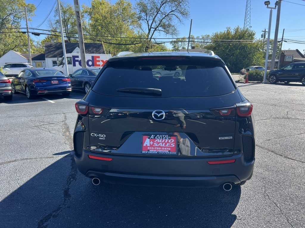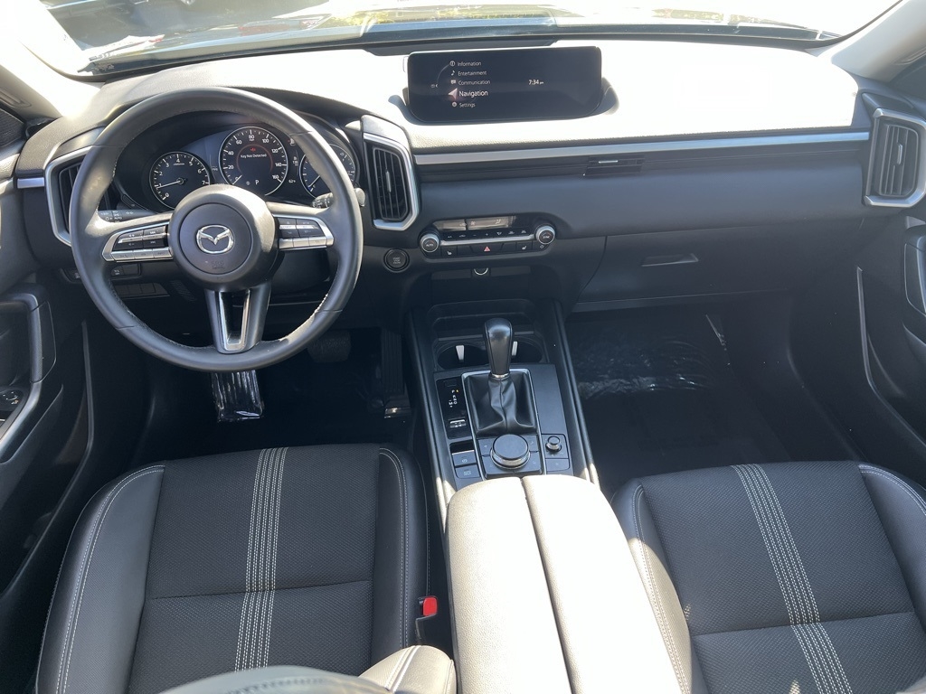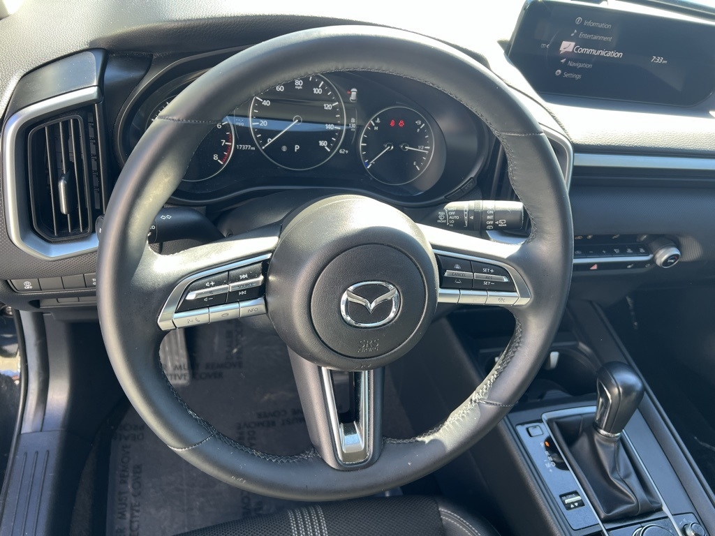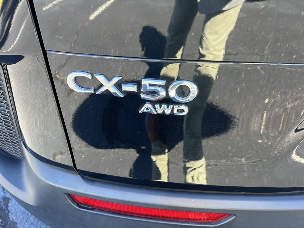 CX-50 2.5 S Preferred Package, 4D Sport Utility, SKYACTIV® 2.5L 4-Cylinder DOHC 16V, 6-Speed Automatic, AWD, Jet Black Mica, Gray Artificial Leather, 4-Wheel Disc Brakes, 4.367 Axle Ratio, 8 Speakers, ABS brakes, Air Conditioning, Alloy wheels, AM/FM radio, AppLink/Apple CarPlay and Android Auto, Auto High-beam Headlights, Automatic temperature control, Brake assist, Bumpers: body-color, Delay-off headlights, Driver door bin, Driver vanity mirror, Dual front impact airbags, Dual front side impact airbags, Electronic Stability Control, Emergency communication system: MAZDA CONNECT, Exterior Parking Camera Rear, Front anti-roll bar, Front Bucket Seats, Front Center Armrest, Front dual zone A/C, Front reading lights, Front wheel independent suspension, Fully automatic headlights, Half Leatherette Seat Trim, Heated door mirrors, Heated Front Bucket Seats, Heated front seats, Illuminated entry, Knee airbag, Leather Shift Knob, Leather steering wheel, Low tire pressure warning, Occupant sensing airbag, Outside temperature display, Overhead airbag, Overhead console, Panic alarm, Passenger door bin, Passenger vanity mirror, Power door mirrors, Power driver seat, Power Liftgate, Power steering, Power windows, Radio data system, Radio: AM/FM/HD Audio System, Rain sensing wipers, Rear seat center armrest, Rear window defroster, Rear window wiper, Remote keyless entry, Retractable Cargo Cover, Speed control, Speed-sensing steering, Split folding rear seat, Spoiler, Steering wheel mounted audio controls, Tachometer, Telescoping steering wheel, Tilt steering wheel, Traction control, Trip computer, Turn signal indicator mirrors, Variably intermittent wipers, Wheels: 17" x 7J Aluminum Alloy, CX-50 2.5 S Preferred Package, 4D Sport Utility, SKYACTIV® 2.5L 4-Cylinder DOHC 16V, 6-Speed Automatic, AWD, Jet Black Mica, Gray Artificial Leather.