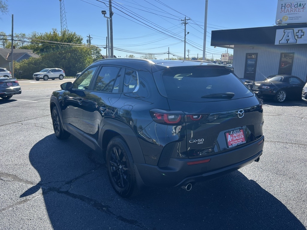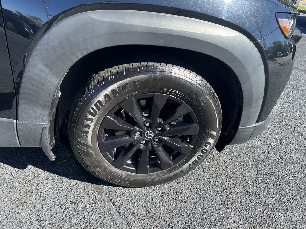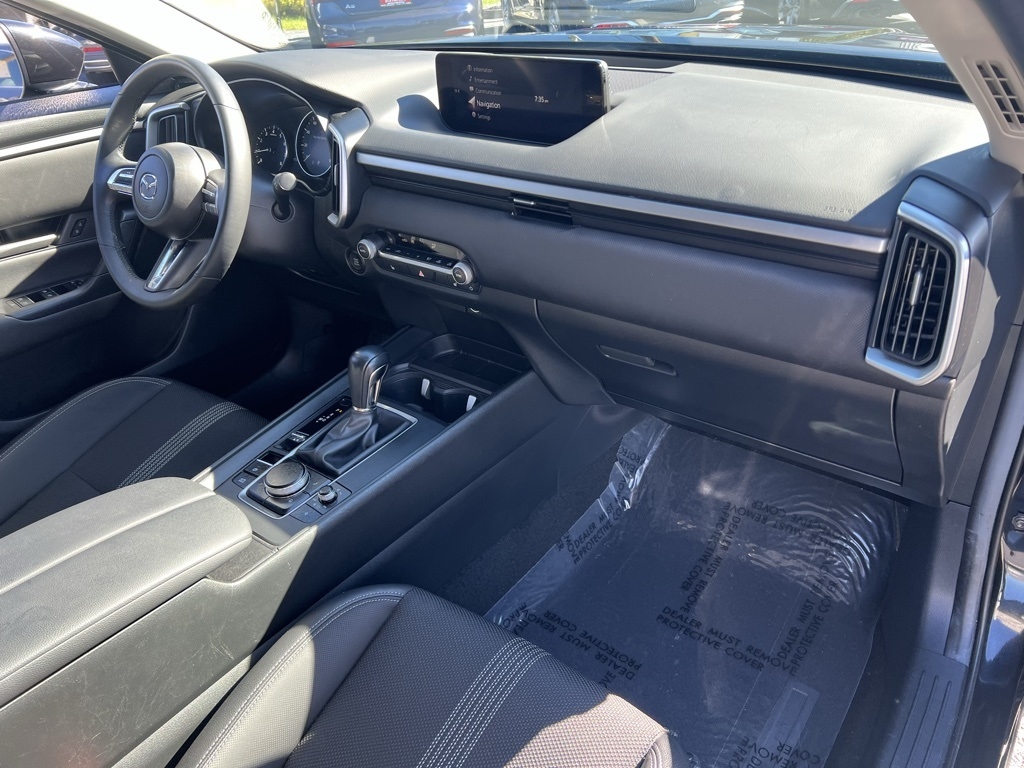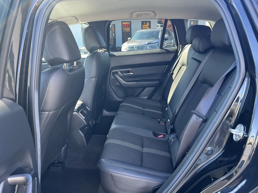 CX-50 2.5 S Preferred Package, 4D Sport Utility, SKYACTIV® 2.5L 4-Cylinder DOHC 16V, 6-Speed Automatic, AWD, Jet Black Mica, Gray Artificial Leather, 4-Wheel Disc Brakes, 4.367 Axle Ratio, 8 Speakers, ABS brakes, Air Conditioning, Alloy wheels, AM/FM radio, AppLink/Apple CarPlay and Android Auto, Auto High-beam Headlights, Automatic temperature control, Brake assist, Bumpers: body-color, Delay-off headlights, Driver door bin, Driver vanity mirror, Dual front impact airbags, Dual front side impact airbags, Electronic Stability Control, Emergency communication system: MAZDA CONNECT, Exterior Parking Camera Rear, Front anti-roll bar, Front Bucket Seats, Front Center Armrest, Front dual zone A/C, Front reading lights, Front wheel independent suspension, Fully automatic headlights, Half Leatherette Seat Trim, Heated door mirrors, Heated Front Bucket Seats, Heated front seats, Illuminated entry, Knee airbag, Leather Shift Knob, Leather steering wheel, Low tire pressure warning, Occupant sensing airbag, Outside temperature display, Overhead airbag, Overhead console, Panic alarm, Passenger door bin, Passenger vanity mirror, Power door mirrors, Power driver seat, Power Liftgate, Power steering, Power windows, Radio data system, Radio: AM/FM/HD Audio System, Rain sensing wipers, Rear seat center armrest, Rear window defroster, Rear window wiper, Remote keyless entry, Retractable Cargo Cover, Speed control, Speed-sensing steering, Split folding rear seat, Spoiler, Steering wheel mounted audio controls, Tachometer, Telescoping steering wheel, Tilt steering wheel, Traction control, Trip computer, Turn signal indicator mirrors, Variably intermittent wipers, Wheels: 17" x 7J Aluminum Alloy, CX-50 2.5 S Preferred Package, 4D Sport Utility, SKYACTIV® 2.5L 4-Cylinder DOHC 16V, 6-Speed Automatic, AWD, Jet Black Mica, Gray Artificial Leather.