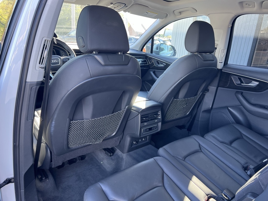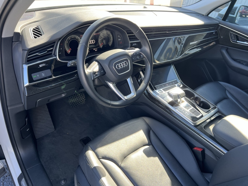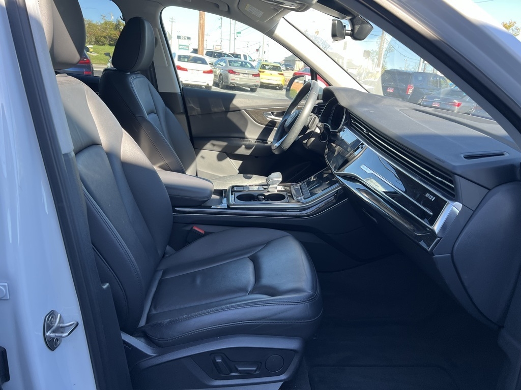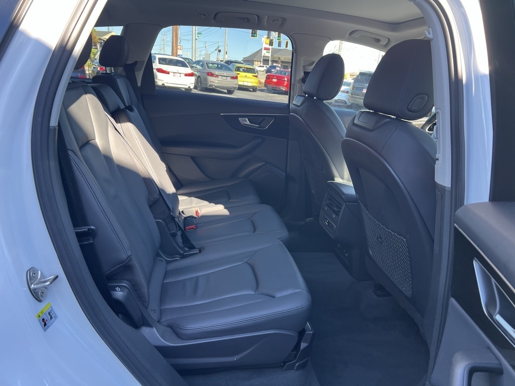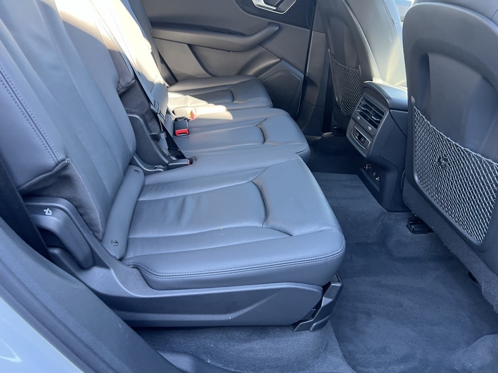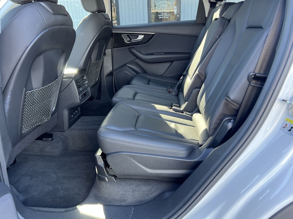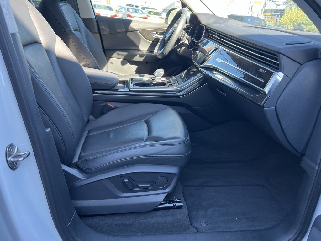 Q7 55 Premium quattro, 4D Sport Utility, 3.0L TFSI, 8-Speed Automatic with Tiptronic, quattro, White, Black Leather, 10 Speakers, 3.204 Axle Ratio, 3rd row seats: bench, 4-Wheel Disc Brakes, 4-Zone Automatic Climate Control, ABS brakes, Air Conditioning, Alloy wheels, AM/FM radio: SiriusXM, Audi smartphone interface (Apple CarPlay/Android Auto), Auto High-beam Headlights, Auto-dimming door mirrors, Auto-dimming Rear-View mirror, Automatic temperature control, Brake assist, Bumpers: body-color, Compass, Contour/Ambient LED Interior Lighting Package, Convenience Package, Delay-off headlights, Driver door bin, Driver vanity mirror, Dual front impact airbags, Dual front side impact airbags, Electronic Stability Control, Emergency communication system: Audi connect CARE, PRIME & PLUS, Executive Package, Exterior Parking Camera Rear, Four wheel independent suspension, Front anti-roll bar, Front Bucket Seats, Front Center Armrest, Front dual zone A/C, Front fog lights, Front reading lights, Fully automatic headlights, Garage door transmitter: HomeLink, Genuine wood door panel insert, Heated door mirrors, Heated Front Bucket Seats, Heated front seats, Illuminated entry, Interior Protection Package, Leather Seating Surfaces, Leather Shift Knob, Leather steering wheel, Low tire pressure warning, Luxury Package, Memory seat, Navigation System, Navigation system: Audi MMI Navigation plus with Touch Response, Occupant sensing airbag, Outside temperature display, Overhead airbag, Overhead console, Panic alarm, Passenger door bin, Passenger vanity mirror, Power door mirrors, Power driver seat, Power Liftgate, Power moonroof: Panoramic, Power passenger seat, Power steering, Power windows, Premium Plus Package, Radio data system, Radio: Audi Sound System, Rain sensing wipers, Rear air conditioning, Rear anti-roll bar, Rear fog lights, Rear reading lights, Rear seat center armrest, Rear side impact airbag, Rear window defroster, Rear window wiper, Reclining 3rd row seat, Remote keyless entry, Roof rack: rails only, Security system, Speed control, Speed-sensing steering, Split folding rear seat, Spoiler, Steering wheel memory, Steering wheel mounted audio controls, Tachometer, Telescoping steering wheel, Tilt steering wheel, Towing Package, Traction control, Trip computer, Turn signal indicator mirrors, Variably intermittent wipers, Wheels: 19" 5-Arm-Star Design, Q7 55 Premium quattro, 4D Sport Utility, 3.0L TFSI, 8-Speed Automatic with Tiptronic, quattro, White, Black Leather.