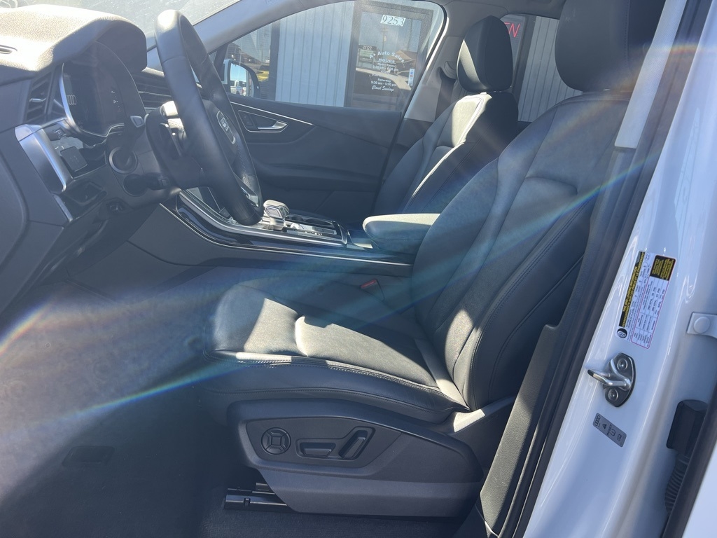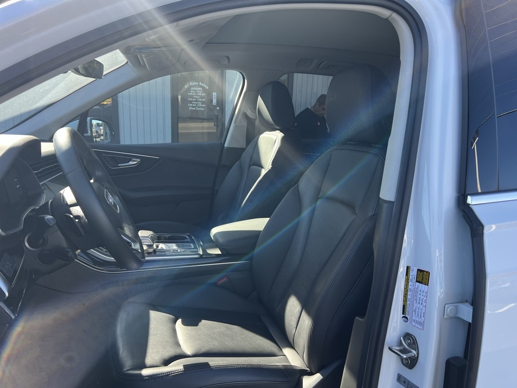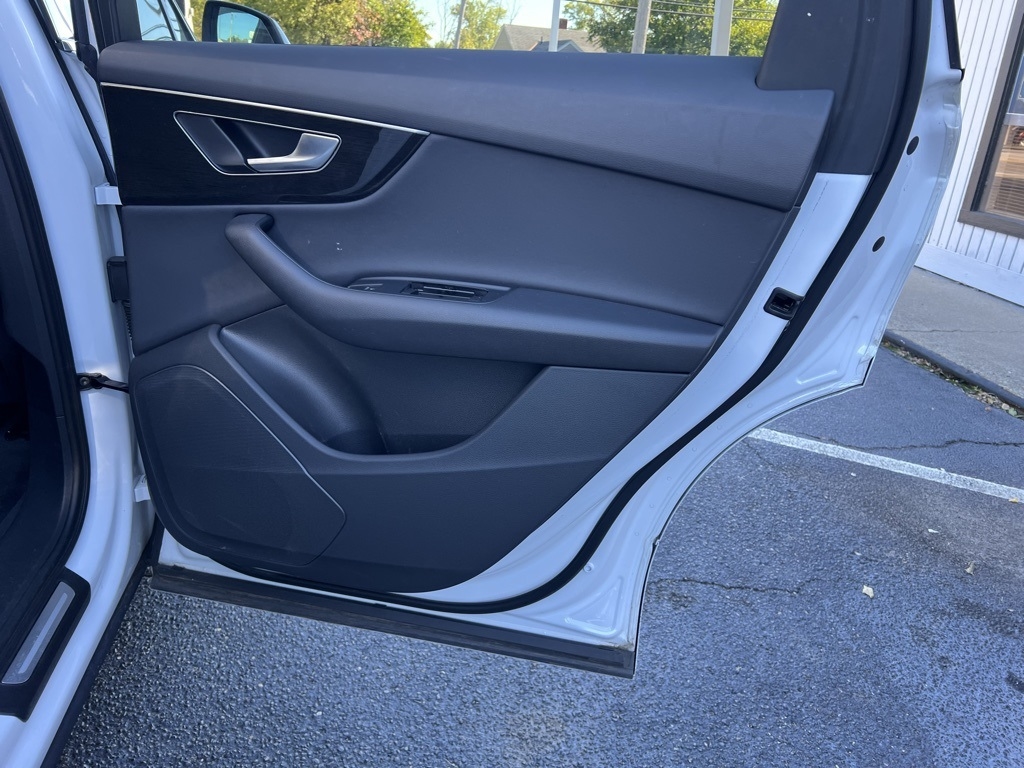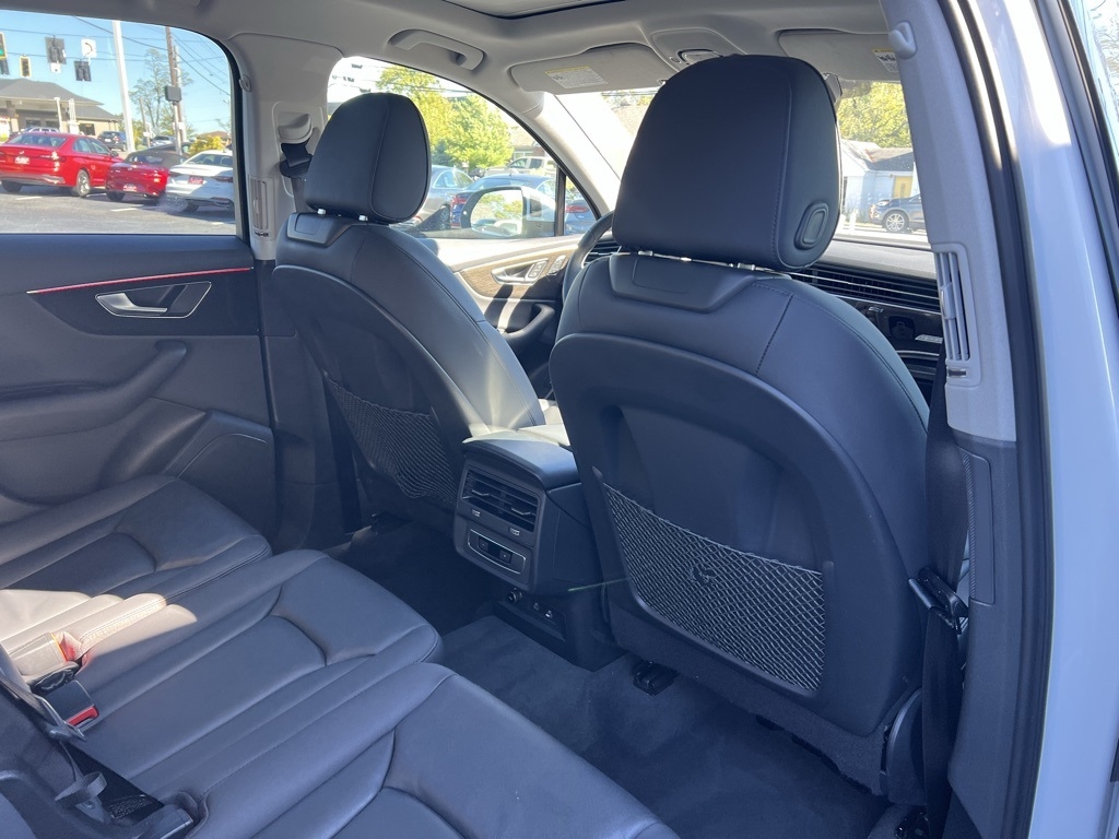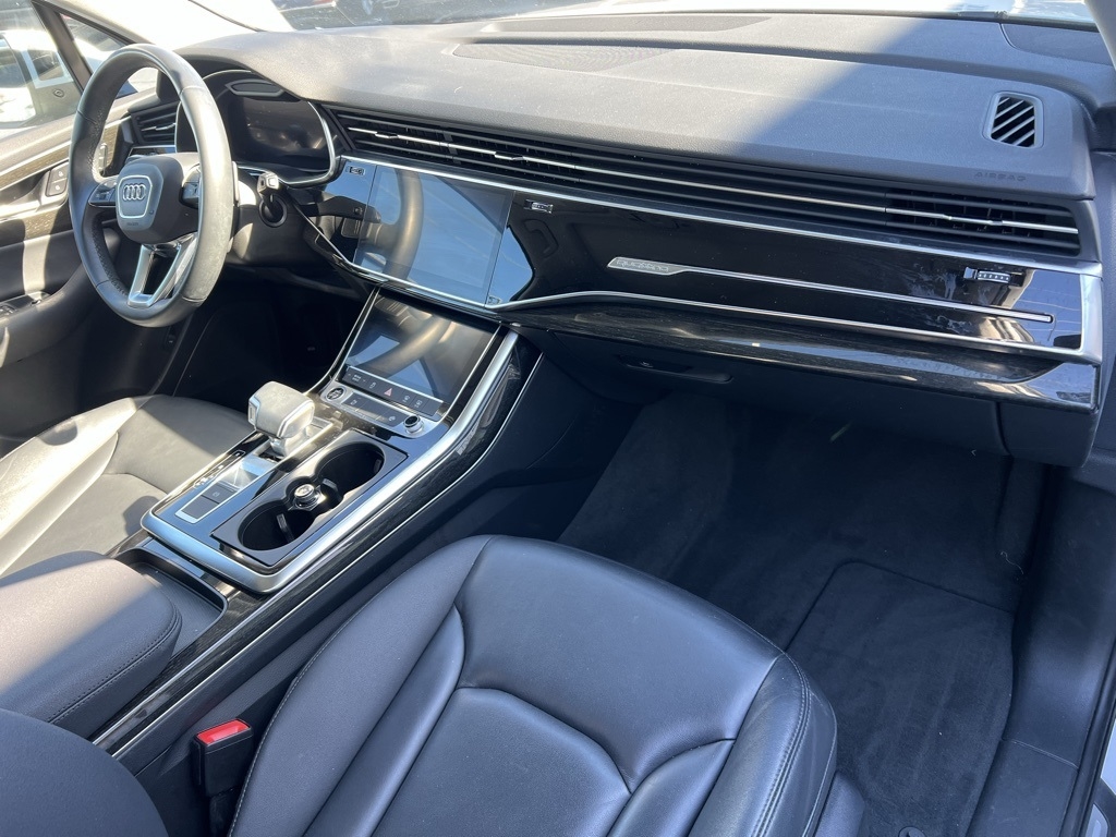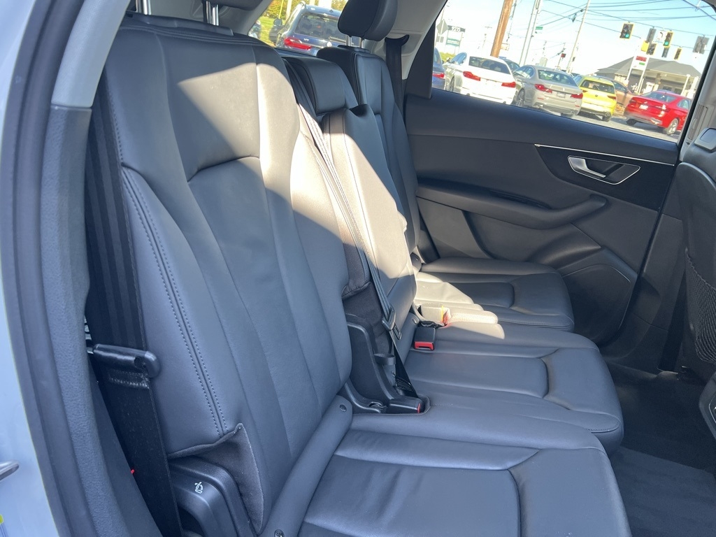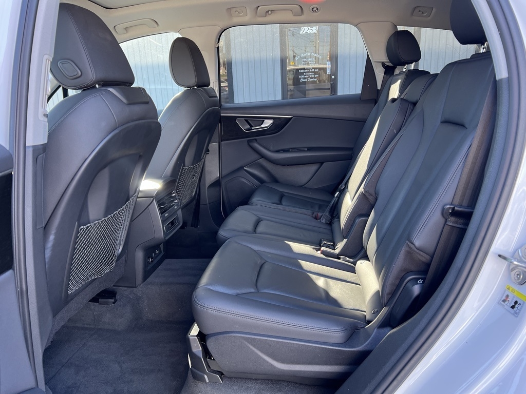 Q7 55 Premium quattro, 4D Sport Utility, 3.0L TFSI, 8-Speed Automatic with Tiptronic, quattro, White, Black Leather, 10 Speakers, 3.204 Axle Ratio, 3rd row seats: bench, 4-Wheel Disc Brakes, 4-Zone Automatic Climate Control, ABS brakes, Air Conditioning, Alloy wheels, AM/FM radio: SiriusXM, Audi smartphone interface (Apple CarPlay/Android Auto), Auto High-beam Headlights, Auto-dimming door mirrors, Auto-dimming Rear-View mirror, Automatic temperature control, Brake assist, Bumpers: body-color, Compass, Contour/Ambient LED Interior Lighting Package, Convenience Package, Delay-off headlights, Driver door bin, Driver vanity mirror, Dual front impact airbags, Dual front side impact airbags, Electronic Stability Control, Emergency communication system: Audi connect CARE, PRIME & PLUS, Executive Package, Exterior Parking Camera Rear, Four wheel independent suspension, Front anti-roll bar, Front Bucket Seats, Front Center Armrest, Front dual zone A/C, Front fog lights, Front reading lights, Fully automatic headlights, Garage door transmitter: HomeLink, Genuine wood door panel insert, Heated door mirrors, Heated Front Bucket Seats, Heated front seats, Illuminated entry, Interior Protection Package, Leather Seating Surfaces, Leather Shift Knob, Leather steering wheel, Low tire pressure warning, Luxury Package, Memory seat, Navigation System, Navigation system: Audi MMI Navigation plus with Touch Response, Occupant sensing airbag, Outside temperature display, Overhead airbag, Overhead console, Panic alarm, Passenger door bin, Passenger vanity mirror, Power door mirrors, Power driver seat, Power Liftgate, Power moonroof: Panoramic, Power passenger seat, Power steering, Power windows, Premium Plus Package, Radio data system, Radio: Audi Sound System, Rain sensing wipers, Rear air conditioning, Rear anti-roll bar, Rear fog lights, Rear reading lights, Rear seat center armrest, Rear side impact airbag, Rear window defroster, Rear window wiper, Reclining 3rd row seat, Remote keyless entry, Roof rack: rails only, Security system, Speed control, Speed-sensing steering, Split folding rear seat, Spoiler, Steering wheel memory, Steering wheel mounted audio controls, Tachometer, Telescoping steering wheel, Tilt steering wheel, Towing Package, Traction control, Trip computer, Turn signal indicator mirrors, Variably intermittent wipers, Wheels: 19" 5-Arm-Star Design, Q7 55 Premium quattro, 4D Sport Utility, 3.0L TFSI, 8-Speed Automatic with Tiptronic, quattro, White, Black Leather.