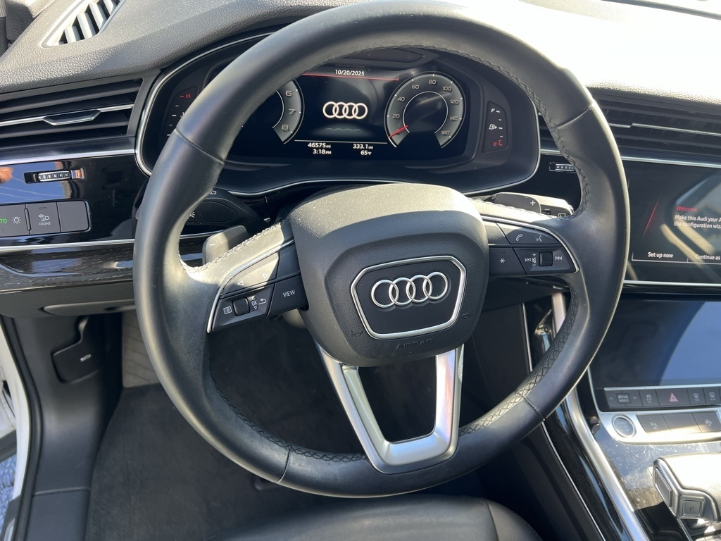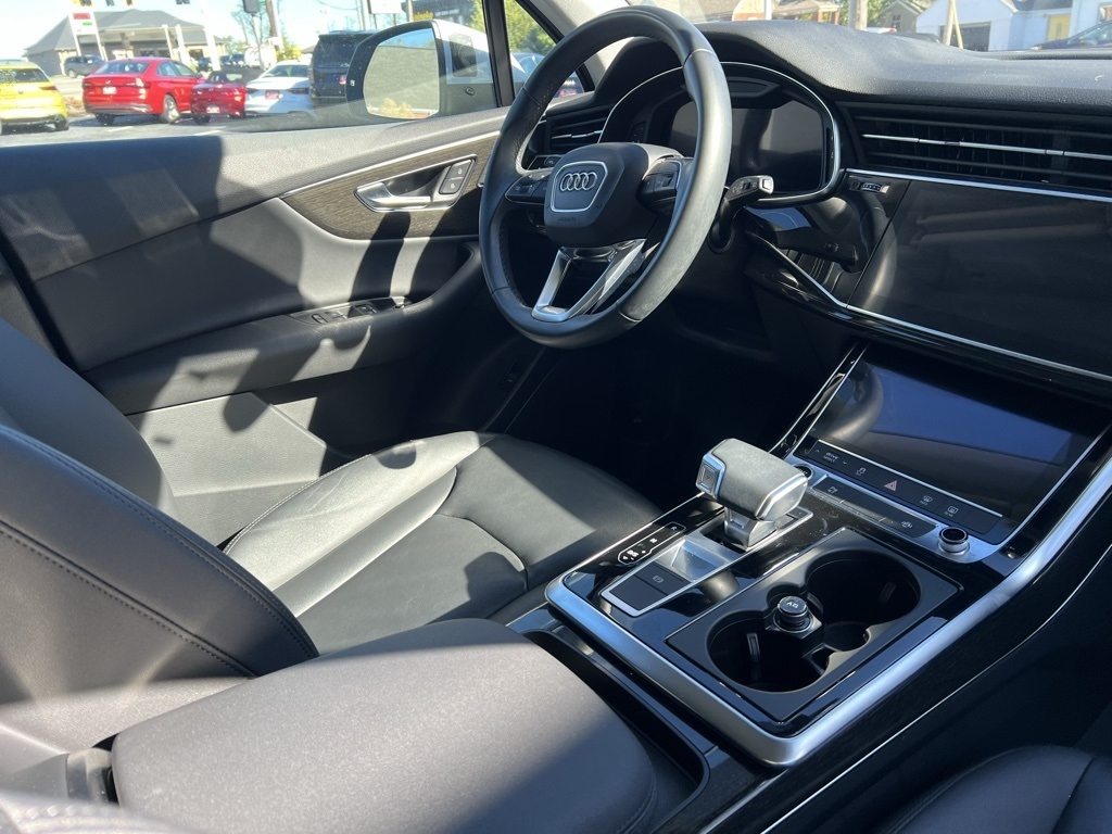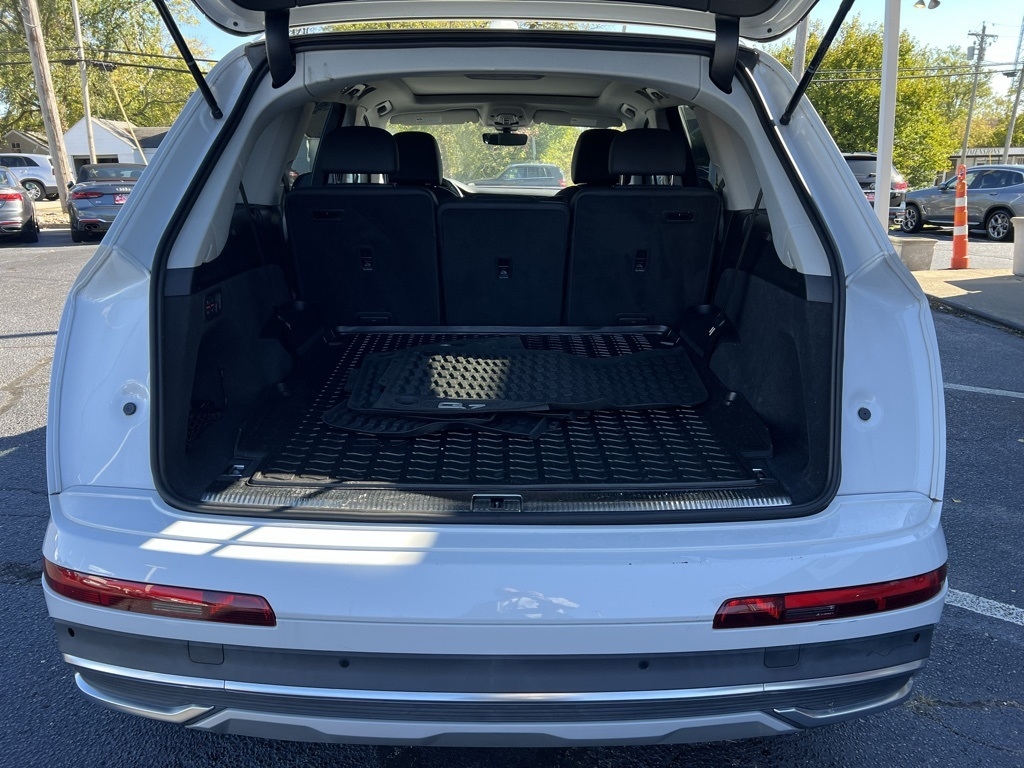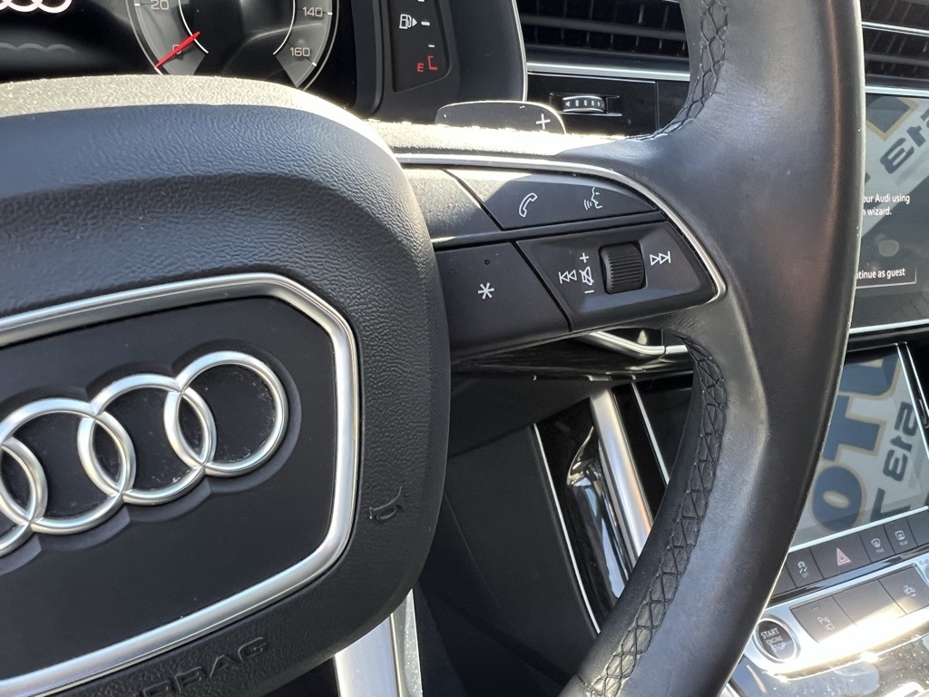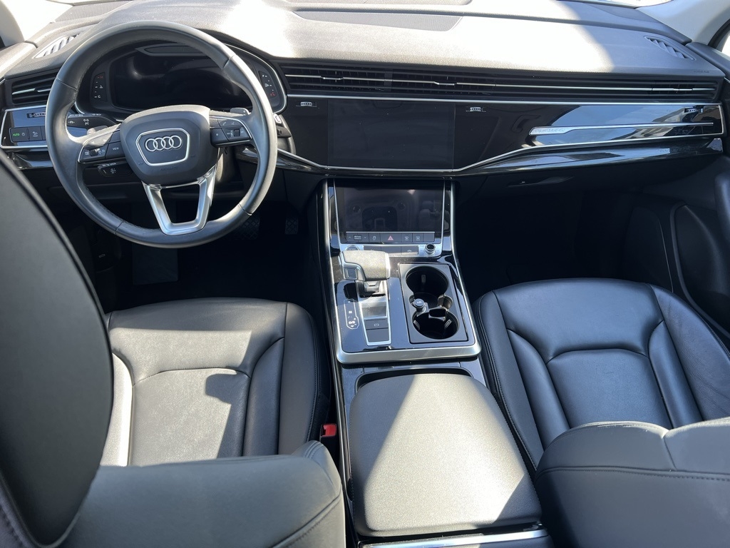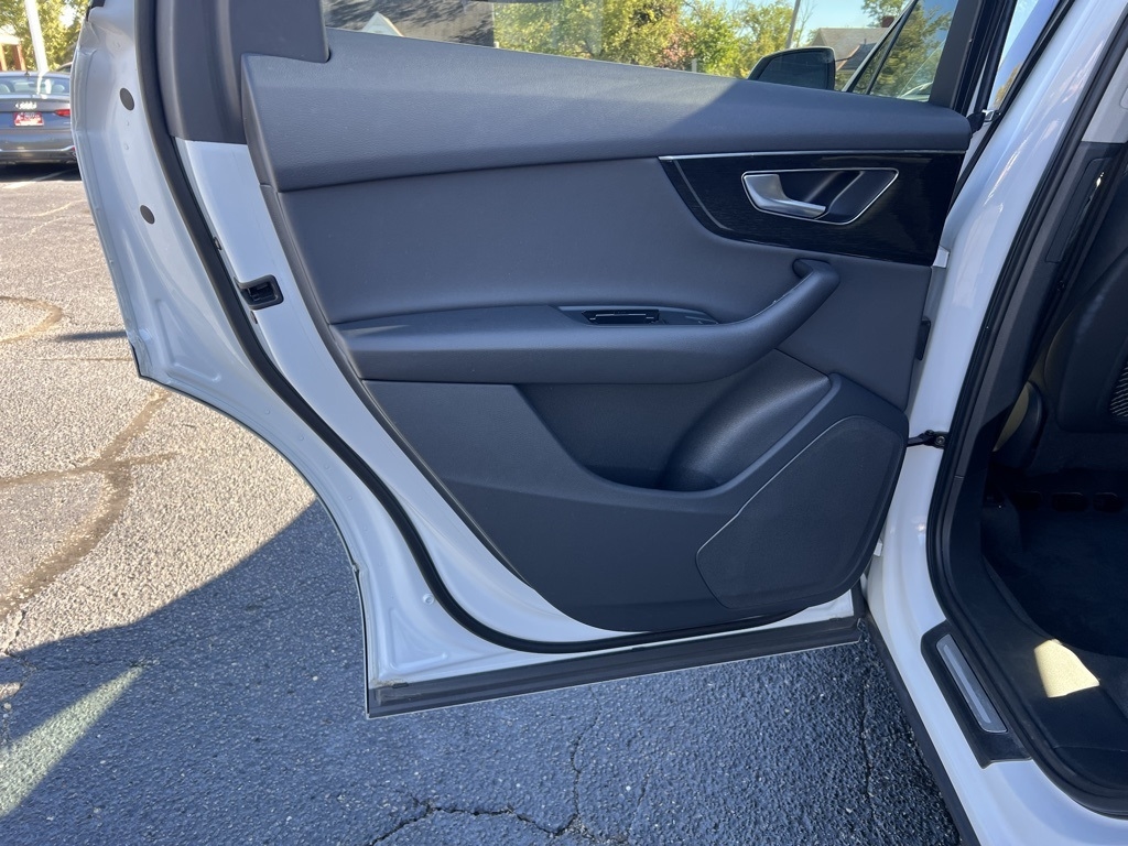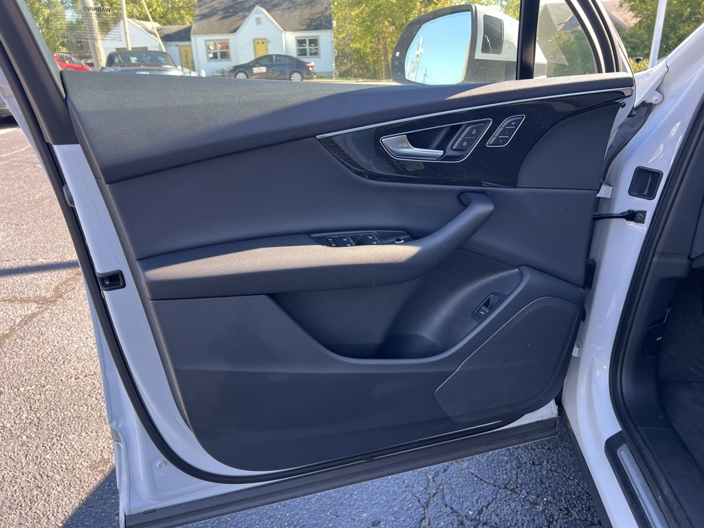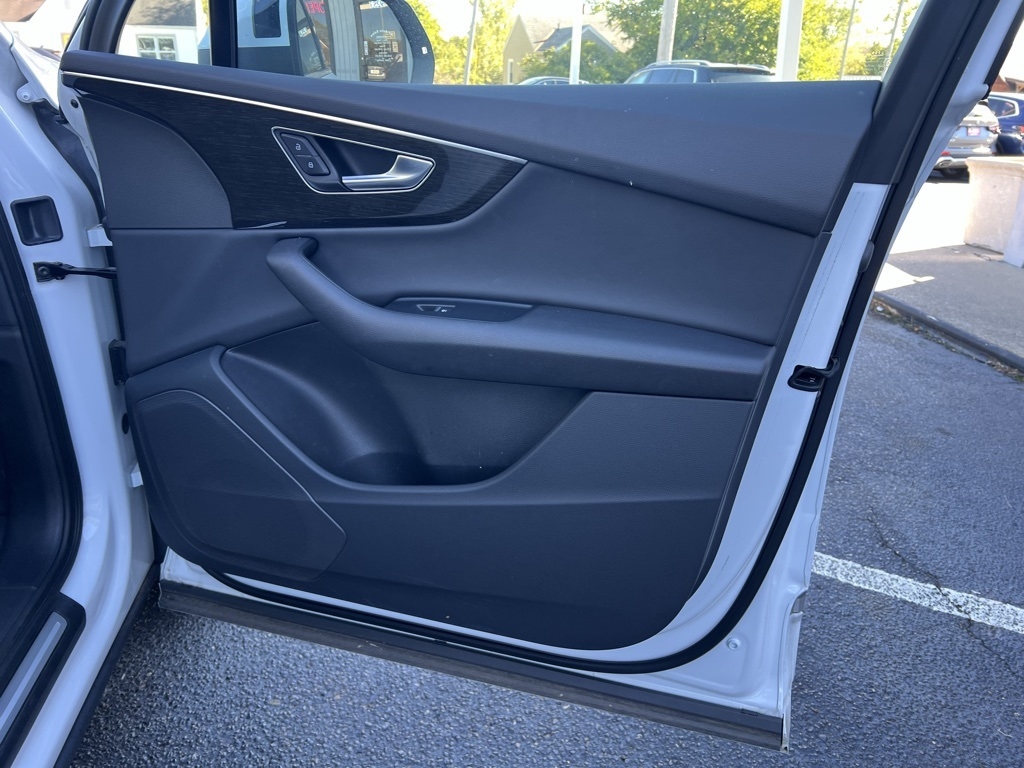 Q7 55 Premium quattro, 4D Sport Utility, 3.0L TFSI, 8-Speed Automatic with Tiptronic, quattro, White, Black Leather, 10 Speakers, 3.204 Axle Ratio, 3rd row seats: bench, 4-Wheel Disc Brakes, 4-Zone Automatic Climate Control, ABS brakes, Air Conditioning, Alloy wheels, AM/FM radio: SiriusXM, Audi smartphone interface (Apple CarPlay/Android Auto), Auto High-beam Headlights, Auto-dimming door mirrors, Auto-dimming Rear-View mirror, Automatic temperature control, Brake assist, Bumpers: body-color, Compass, Contour/Ambient LED Interior Lighting Package, Convenience Package, Delay-off headlights, Driver door bin, Driver vanity mirror, Dual front impact airbags, Dual front side impact airbags, Electronic Stability Control, Emergency communication system: Audi connect CARE, PRIME & PLUS, Executive Package, Exterior Parking Camera Rear, Four wheel independent suspension, Front anti-roll bar, Front Bucket Seats, Front Center Armrest, Front dual zone A/C, Front fog lights, Front reading lights, Fully automatic headlights, Garage door transmitter: HomeLink, Genuine wood door panel insert, Heated door mirrors, Heated Front Bucket Seats, Heated front seats, Illuminated entry, Interior Protection Package, Leather Seating Surfaces, Leather Shift Knob, Leather steering wheel, Low tire pressure warning, Luxury Package, Memory seat, Navigation System, Navigation system: Audi MMI Navigation plus with Touch Response, Occupant sensing airbag, Outside temperature display, Overhead airbag, Overhead console, Panic alarm, Passenger door bin, Passenger vanity mirror, Power door mirrors, Power driver seat, Power Liftgate, Power moonroof: Panoramic, Power passenger seat, Power steering, Power windows, Premium Plus Package, Radio data system, Radio: Audi Sound System, Rain sensing wipers, Rear air conditioning, Rear anti-roll bar, Rear fog lights, Rear reading lights, Rear seat center armrest, Rear side impact airbag, Rear window defroster, Rear window wiper, Reclining 3rd row seat, Remote keyless entry, Roof rack: rails only, Security system, Speed control, Speed-sensing steering, Split folding rear seat, Spoiler, Steering wheel memory, Steering wheel mounted audio controls, Tachometer, Telescoping steering wheel, Tilt steering wheel, Towing Package, Traction control, Trip computer, Turn signal indicator mirrors, Variably intermittent wipers, Wheels: 19" 5-Arm-Star Design, Q7 55 Premium quattro, 4D Sport Utility, 3.0L TFSI, 8-Speed Automatic with Tiptronic, quattro, White, Black Leather.