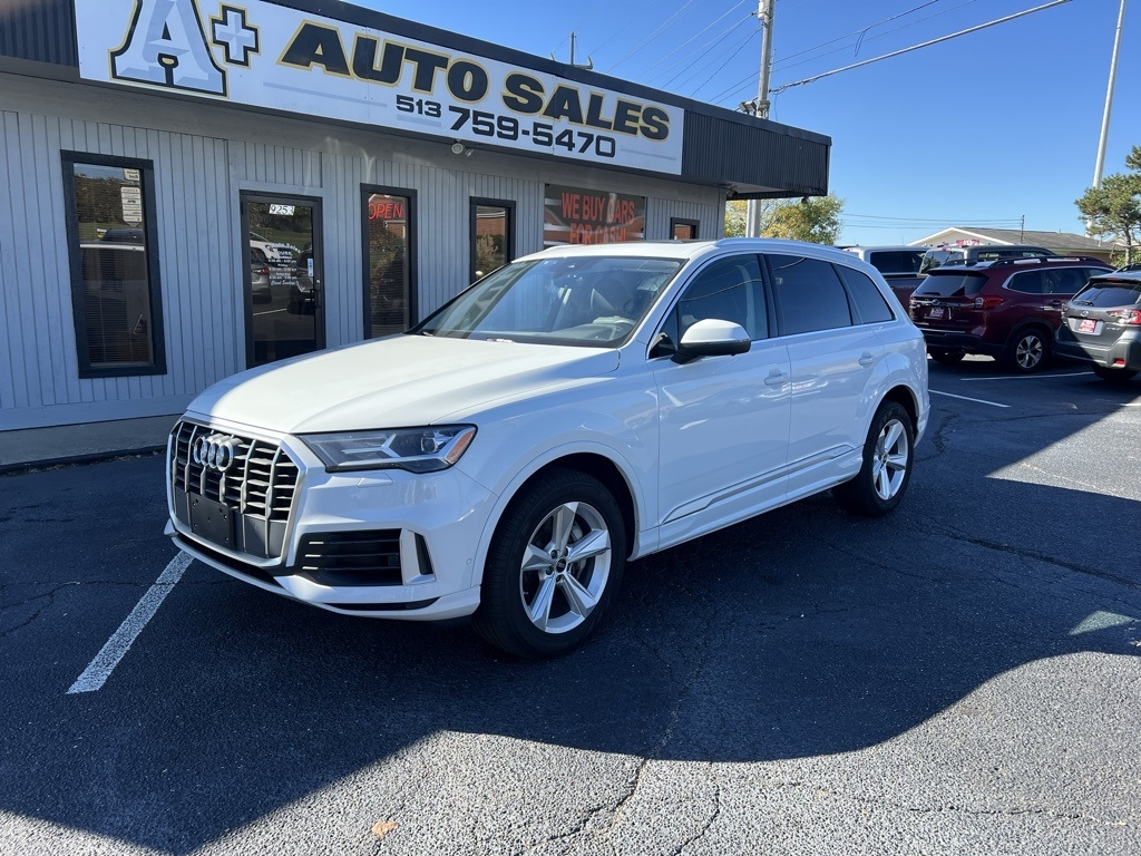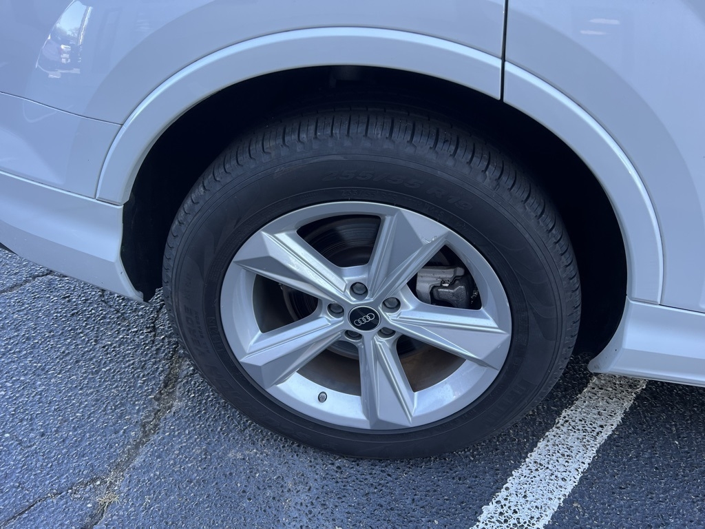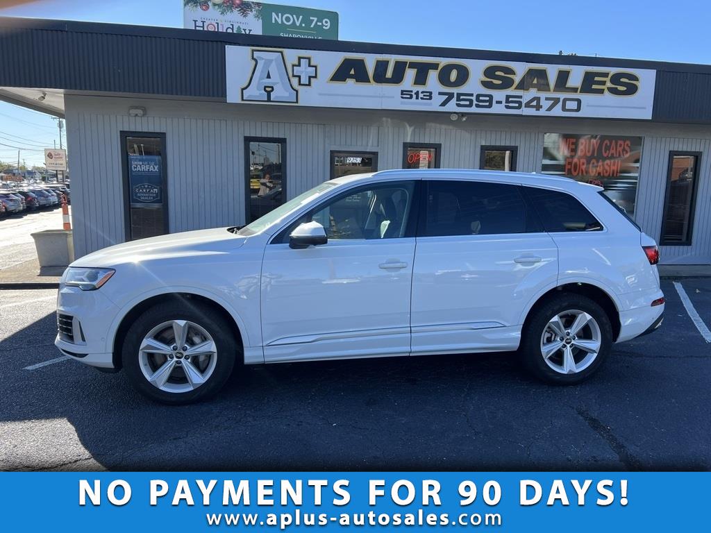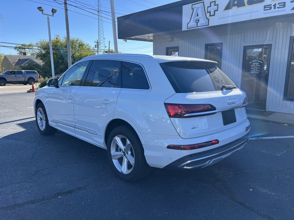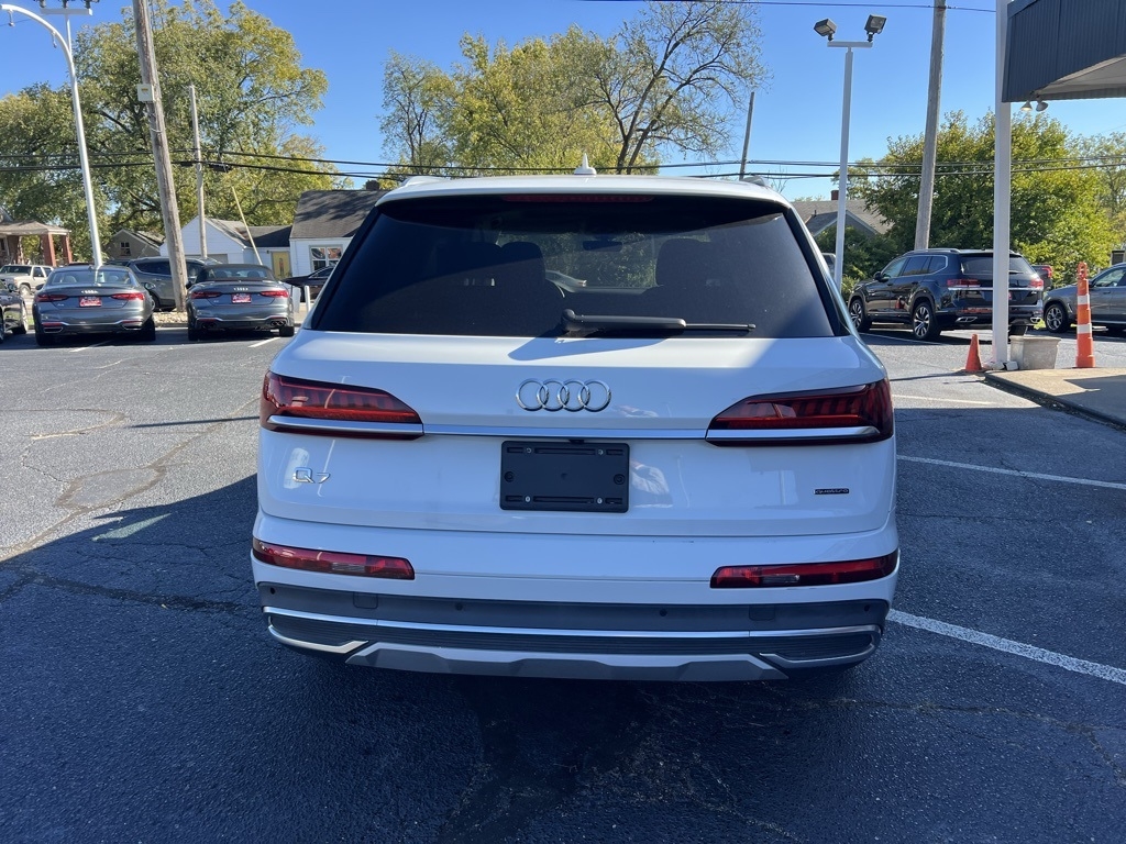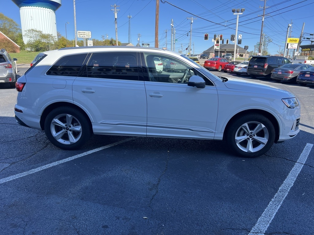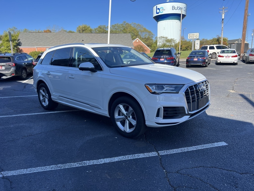 Q7 55 Premium quattro, 4D Sport Utility, 3.0L TFSI, 8-Speed Automatic with Tiptronic, quattro, White, Black Leather, 10 Speakers, 3.204 Axle Ratio, 3rd row seats: bench, 4-Wheel Disc Brakes, 4-Zone Automatic Climate Control, ABS brakes, Air Conditioning, Alloy wheels, AM/FM radio: SiriusXM, Audi smartphone interface (Apple CarPlay/Android Auto), Auto High-beam Headlights, Auto-dimming door mirrors, Auto-dimming Rear-View mirror, Automatic temperature control, Brake assist, Bumpers: body-color, Compass, Contour/Ambient LED Interior Lighting Package, Convenience Package, Delay-off headlights, Driver door bin, Driver vanity mirror, Dual front impact airbags, Dual front side impact airbags, Electronic Stability Control, Emergency communication system: Audi connect CARE, PRIME & PLUS, Executive Package, Exterior Parking Camera Rear, Four wheel independent suspension, Front anti-roll bar, Front Bucket Seats, Front Center Armrest, Front dual zone A/C, Front fog lights, Front reading lights, Fully automatic headlights, Garage door transmitter: HomeLink, Genuine wood door panel insert, Heated door mirrors, Heated Front Bucket Seats, Heated front seats, Illuminated entry, Interior Protection Package, Leather Seating Surfaces, Leather Shift Knob, Leather steering wheel, Low tire pressure warning, Luxury Package, Memory seat, Navigation System, Navigation system: Audi MMI Navigation plus with Touch Response, Occupant sensing airbag, Outside temperature display, Overhead airbag, Overhead console, Panic alarm, Passenger door bin, Passenger vanity mirror, Power door mirrors, Power driver seat, Power Liftgate, Power moonroof: Panoramic, Power passenger seat, Power steering, Power windows, Premium Plus Package, Radio data system, Radio: Audi Sound System, Rain sensing wipers, Rear air conditioning, Rear anti-roll bar, Rear fog lights, Rear reading lights, Rear seat center armrest, Rear side impact airbag, Rear window defroster, Rear window wiper, Reclining 3rd row seat, Remote keyless entry, Roof rack: rails only, Security system, Speed control, Speed-sensing steering, Split folding rear seat, Spoiler, Steering wheel memory, Steering wheel mounted audio controls, Tachometer, Telescoping steering wheel, Tilt steering wheel, Towing Package, Traction control, Trip computer, Turn signal indicator mirrors, Variably intermittent wipers, Wheels: 19" 5-Arm-Star Design, Q7 55 Premium quattro, 4D Sport Utility, 3.0L TFSI, 8-Speed Automatic with Tiptronic, quattro, White, Black Leather.