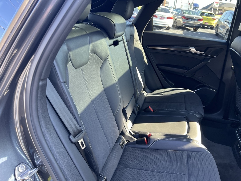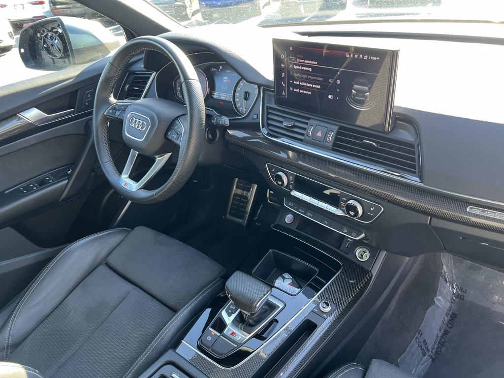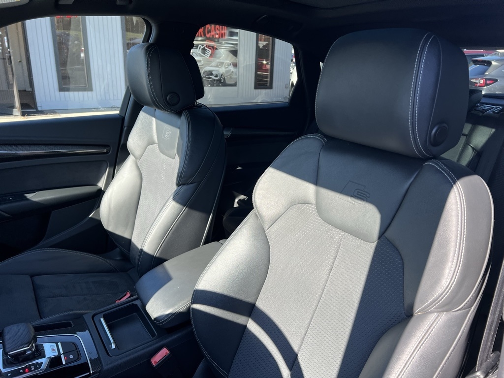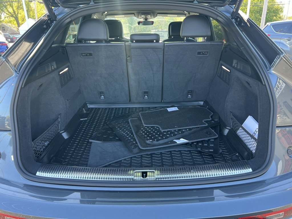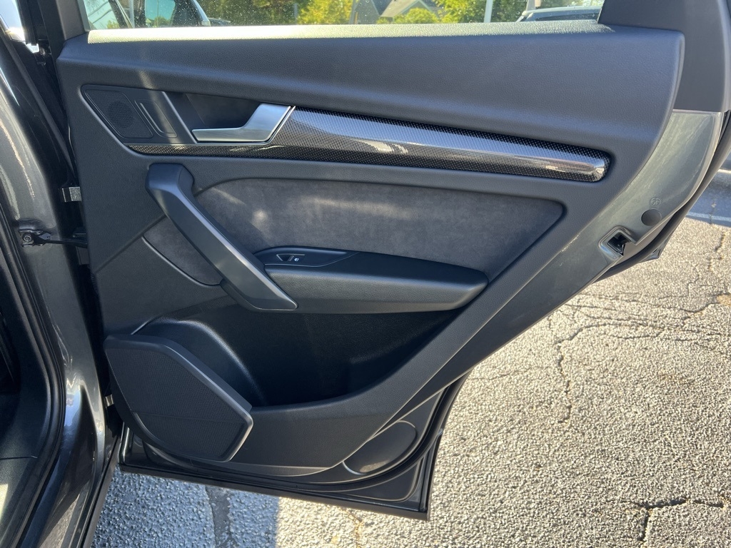 SQ5 Sportback Premium quattro, 4D Sport Utility, 3.0L TFSI, 8-Speed Automatic with Tiptronic, quattro, Gray, Black Leather, Premium Plus Package, S Sport Package, Warm Weather Package, 10 Speakers, 3.204 Axle Ratio, 4-Wheel Disc Brakes, ABS brakes, Adaptive suspension, Air Conditioning, Alloy wheels, AM/FM radio, AM/FM Stereo, Auto High-beam Headlights, Auto-dimming Rear-View mirror, Automatic temperature control, Brake assist, Bumpers: body-color, Compass, Convenience Package, Delay-off headlights, Driver door bin, Driver vanity mirror, Dual front impact airbags, Dual front side impact airbags, Electronic Stability Control, Emergency communication system: Audi connect CARE, Exterior Parking Camera Rear, Fine Nappa Leather Seats, Four wheel independent suspension, Front anti-roll bar, Front Bucket Seats, Front Center Armrest, Front dual zone A/C, Front fog lights, Front reading lights, Garage door transmitter: HomeLink, Heated door mirrors, Heated front seats, Heated Front Sport Seats, Illuminated entry, Leather Shift Knob, Leather/Dinamica Seating Surfaces, Low tire pressure warning, Navigation Package, Navigation System, Occupant sensing airbag, Outside temperature display, Overhead airbag, Overhead console, Panic alarm, Passenger door bin, Passenger vanity mirror, Power door mirrors, Power driver seat, Power Liftgate, Power passenger seat, Power steering, Power windows, Radio data system, Rain sensing wipers, Rear air conditioning, Rear anti-roll bar, Rear fog lights, Rear reading lights, Rear seat center armrest, Rear window defroster, Rear window wiper, Remote keyless entry, Security system, Speed control, Speed-sensing steering, Speed-Sensitive Wipers, Split folding rear seat, Spoiler, Sport steering wheel, Steering wheel mounted audio controls, Tachometer, Telescoping steering wheel, Tilt steering wheel, Traction control, Trip computer, Turn signal indicator mirrors, Variably intermittent wipers, Wheels: 20" 10-Spoke-Star Design, SQ5 Sportback Premium quattro, 4D Sport Utility, 3.0L TFSI, 8-Speed Automatic with Tiptronic, quattro, Gray, Black Leather, Premium Plus Package, S Sport Package, Warm Weather Package.