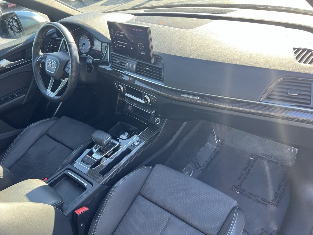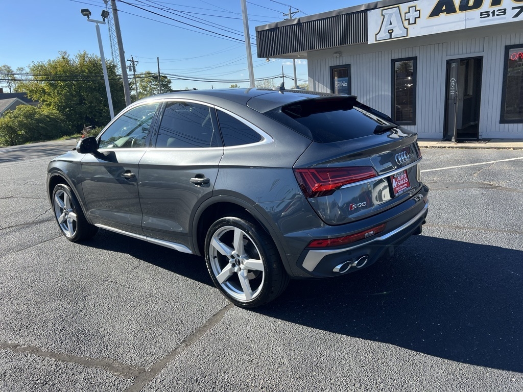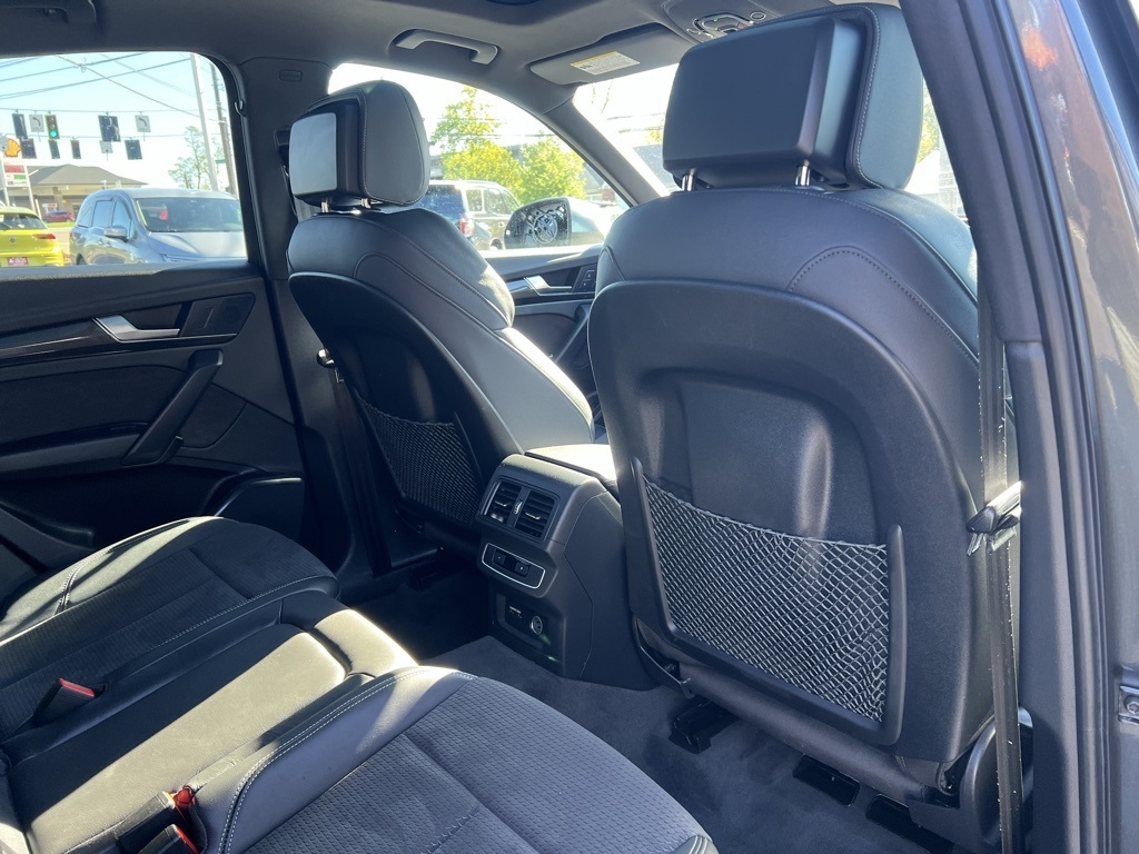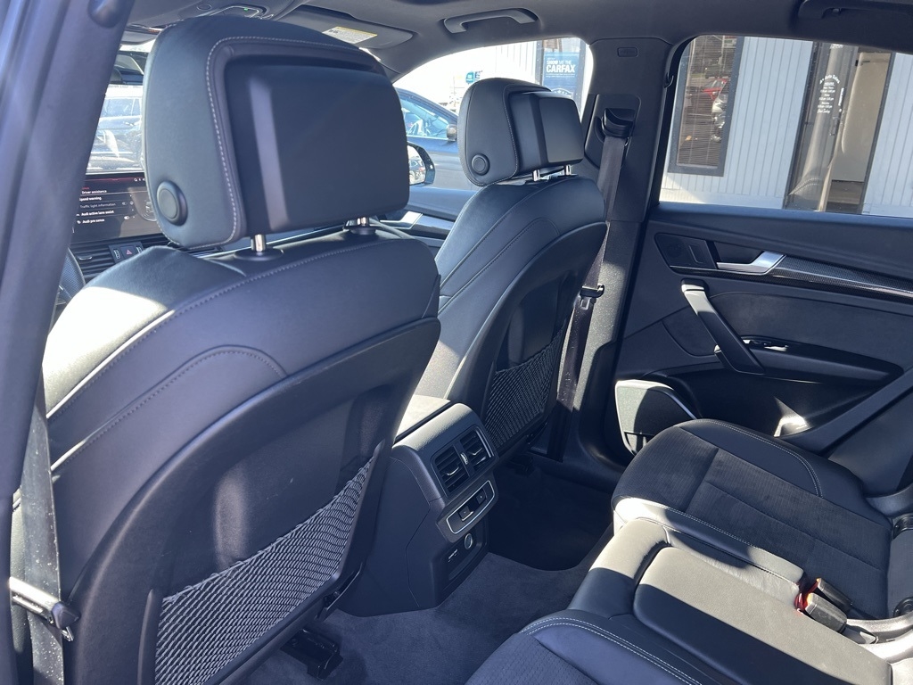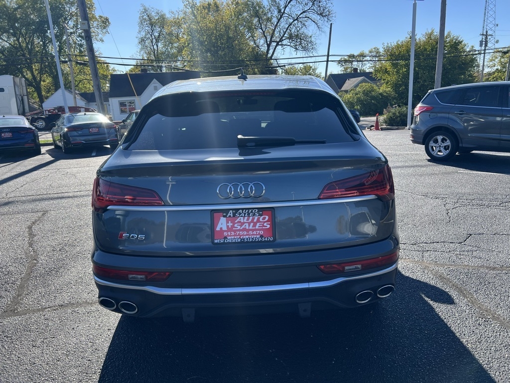 SQ5 Sportback Premium quattro, 4D Sport Utility, 3.0L TFSI, 8-Speed Automatic with Tiptronic, quattro, Gray, Black Leather, Premium Plus Package, S Sport Package, Warm Weather Package, 10 Speakers, 3.204 Axle Ratio, 4-Wheel Disc Brakes, ABS brakes, Adaptive suspension, Air Conditioning, Alloy wheels, AM/FM radio, AM/FM Stereo, Auto High-beam Headlights, Auto-dimming Rear-View mirror, Automatic temperature control, Brake assist, Bumpers: body-color, Compass, Convenience Package, Delay-off headlights, Driver door bin, Driver vanity mirror, Dual front impact airbags, Dual front side impact airbags, Electronic Stability Control, Emergency communication system: Audi connect CARE, Exterior Parking Camera Rear, Fine Nappa Leather Seats, Four wheel independent suspension, Front anti-roll bar, Front Bucket Seats, Front Center Armrest, Front dual zone A/C, Front fog lights, Front reading lights, Garage door transmitter: HomeLink, Heated door mirrors, Heated front seats, Heated Front Sport Seats, Illuminated entry, Leather Shift Knob, Leather/Dinamica Seating Surfaces, Low tire pressure warning, Navigation Package, Navigation System, Occupant sensing airbag, Outside temperature display, Overhead airbag, Overhead console, Panic alarm, Passenger door bin, Passenger vanity mirror, Power door mirrors, Power driver seat, Power Liftgate, Power passenger seat, Power steering, Power windows, Radio data system, Rain sensing wipers, Rear air conditioning, Rear anti-roll bar, Rear fog lights, Rear reading lights, Rear seat center armrest, Rear window defroster, Rear window wiper, Remote keyless entry, Security system, Speed control, Speed-sensing steering, Speed-Sensitive Wipers, Split folding rear seat, Spoiler, Sport steering wheel, Steering wheel mounted audio controls, Tachometer, Telescoping steering wheel, Tilt steering wheel, Traction control, Trip computer, Turn signal indicator mirrors, Variably intermittent wipers, Wheels: 20" 10-Spoke-Star Design, SQ5 Sportback Premium quattro, 4D Sport Utility, 3.0L TFSI, 8-Speed Automatic with Tiptronic, quattro, Gray, Black Leather, Premium Plus Package, S Sport Package, Warm Weather Package.