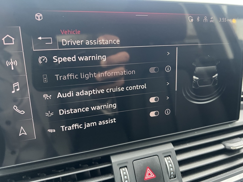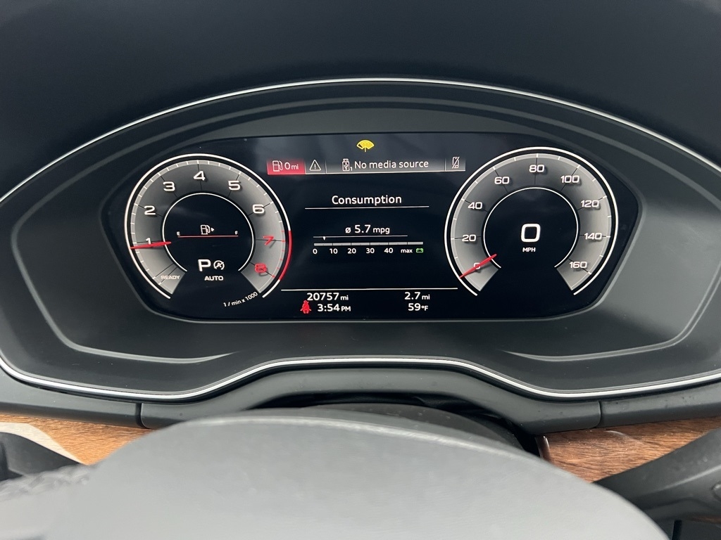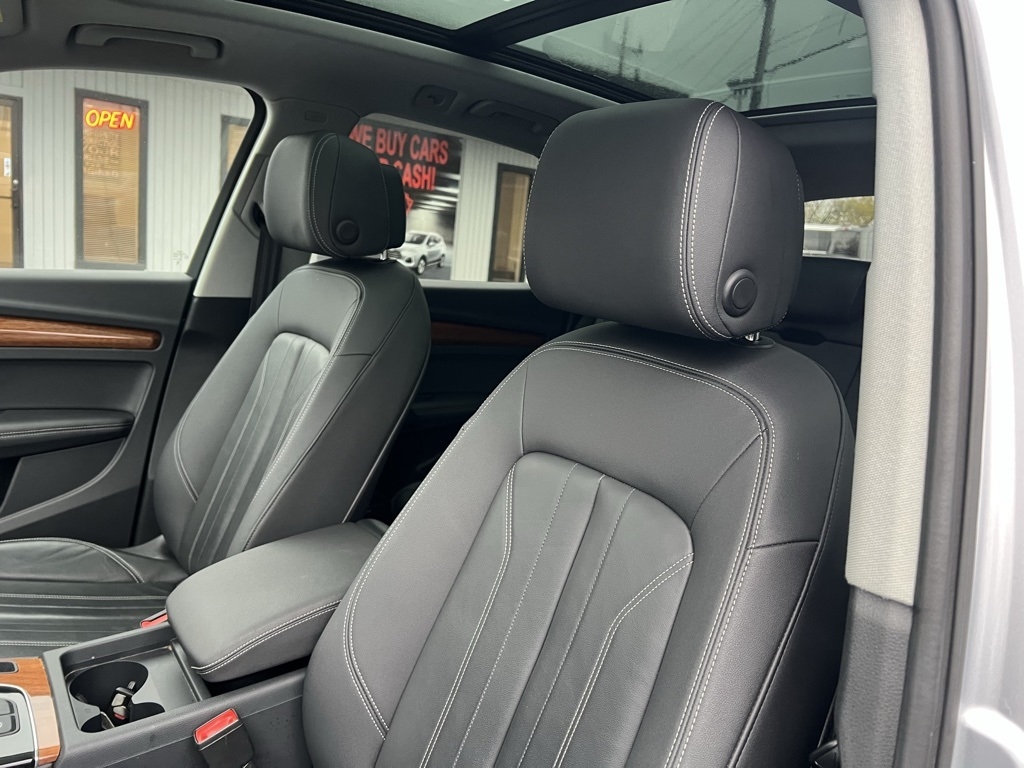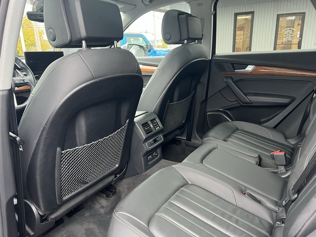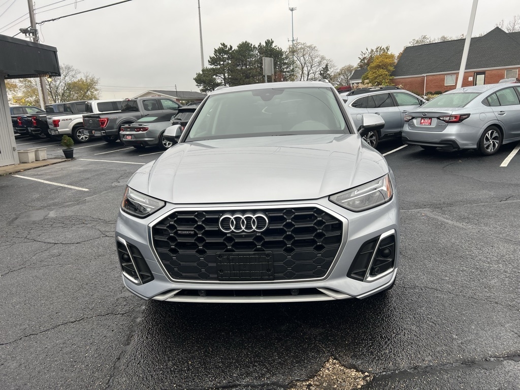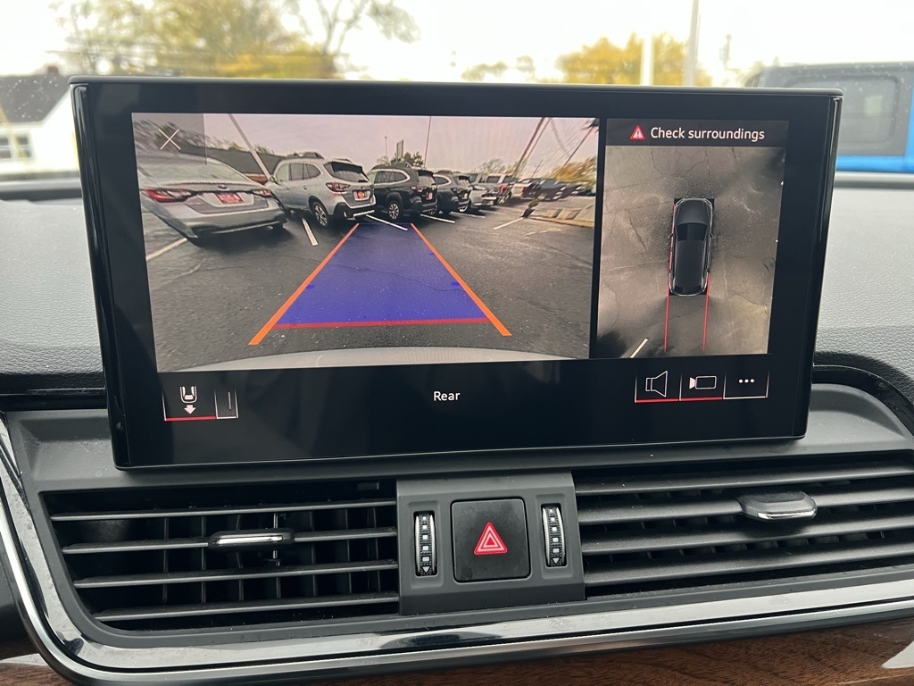 Q5 45 S line Premium quattro, 4D Sport Utility, 2.0L Turbocharged, 7-Speed Automatic S tronic, quattro, Silver Metallic, Black Leather, 10 Speakers, 4-Wheel Disc Brakes, 5.302 Axle Ratio, ABS brakes, Air Conditioning, All-Weather Floor Mats, Alloy wheels, AM/FM radio, Audi Active Lane Assist, Audi Advanced Key, Audi Guard Protection Kit, Audi Guard Wheel Lock Kit, Audi Virtual Cockpit Plus, Auto-Dimming Power Folding Exterior Mirrors, Auto-dimming Rear-View mirror, Automatic temperature control, Bang & Olufsen Sound System w/3D Sound, Brake assist, Bumpers: body-color, Cargo Mat, Compass, Convenience Package, Delay-off headlights, Driver door bin, Driver Seat Memory, Driver vanity mirror, Dual front impact airbags, Dual front side impact airbags, Electric Powered Steering Column Delete (DISC), Electronic Stability Control, Emergency communication system: Audi connect CARE, Exterior Parking Camera Rear, Four wheel independent suspension, Front anti-roll bar, Front Bucket Seats, Front Center Armrest, Front dual zone A/C, Front fog lights, Front reading lights, Garage door transmitter: HomeLink, Genuine wood console insert, Genuine wood dashboard insert, Genuine wood door panel insert, Hands-On Detection Steering Wheel, Heated 8-Way Power Front Bucket Seats, Heated door mirrors, Heated front seats, Heated Steering Wheel, Illuminated entry, Leather Seating Surfaces, Leather Shift Knob, Leatherette Covered Center Console & Door Armrests, Low tire pressure warning, Occupant sensing airbag, Outside temperature display, Overhead airbag, Overhead console, Panic alarm, Panoramic Sunroof, Passenger door bin, Passenger vanity mirror, Power Adjustable Steering Column, Power door mirrors, Power driver seat, Power Liftgate, Power passenger seat, Power steering, Power windows, Premium Plus Package, Privacy Trunk Cover, Radio data system, Radio: Audi Sound System, Rain sensing wipers, Rear air conditioning, Rear anti-roll bar, Rear fog lights, Rear reading lights, Rear seat center armrest, Rear window defroster, Rear window wiper, Remote keyless entry, Roof rack, Security system, SiriusXM w/360L, Speed control, Speed-sensing steering, Speed-Sensitive Wipers, Split folding rear seat, Spoiler, Steering wheel mounted audio controls, Tachometer, Telescoping steering wheel, Tilt steering wheel, Top View Camera System, Traction control, Traffic Jam Assist, Trip computer, Turn signal indicator mirrors, Variably intermittent wipers, Wheels: 18" 5-Arm-Turbine Design, Wheels: 19" 5-Double-Arm Design Bi-Color Finish, Q5 45 S line Premium quattro, 4D Sport Utility, 2.0L Turbocharged, 7-Speed Automatic S tronic, quattro, Silver Metallic, Black Leather.
