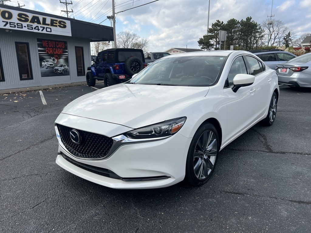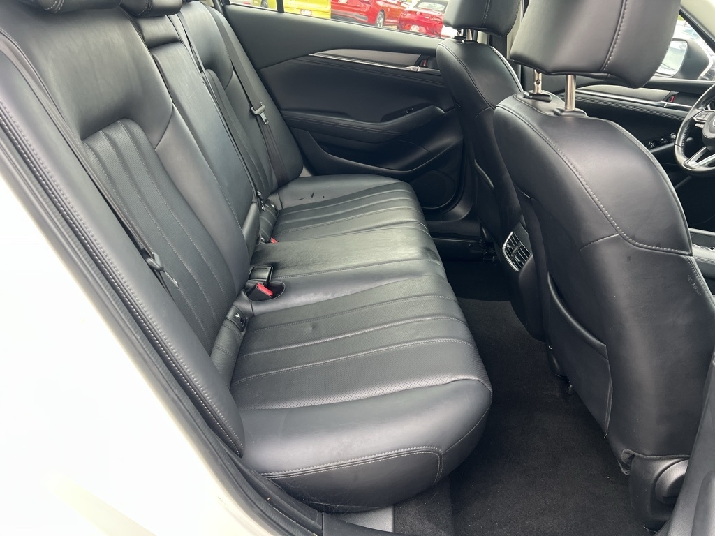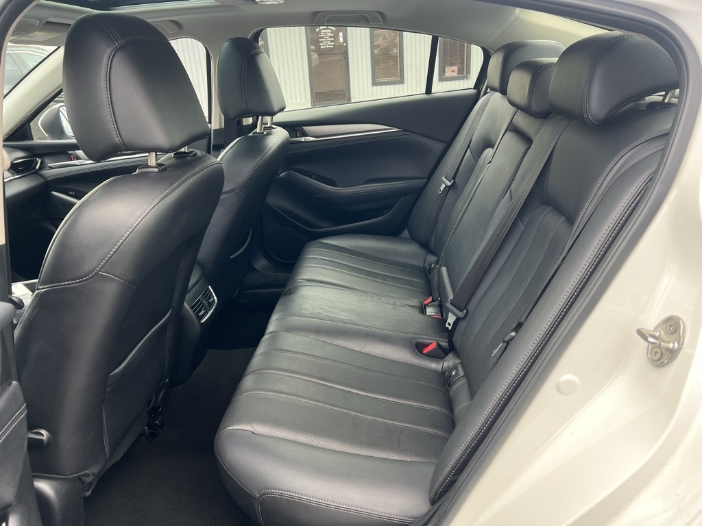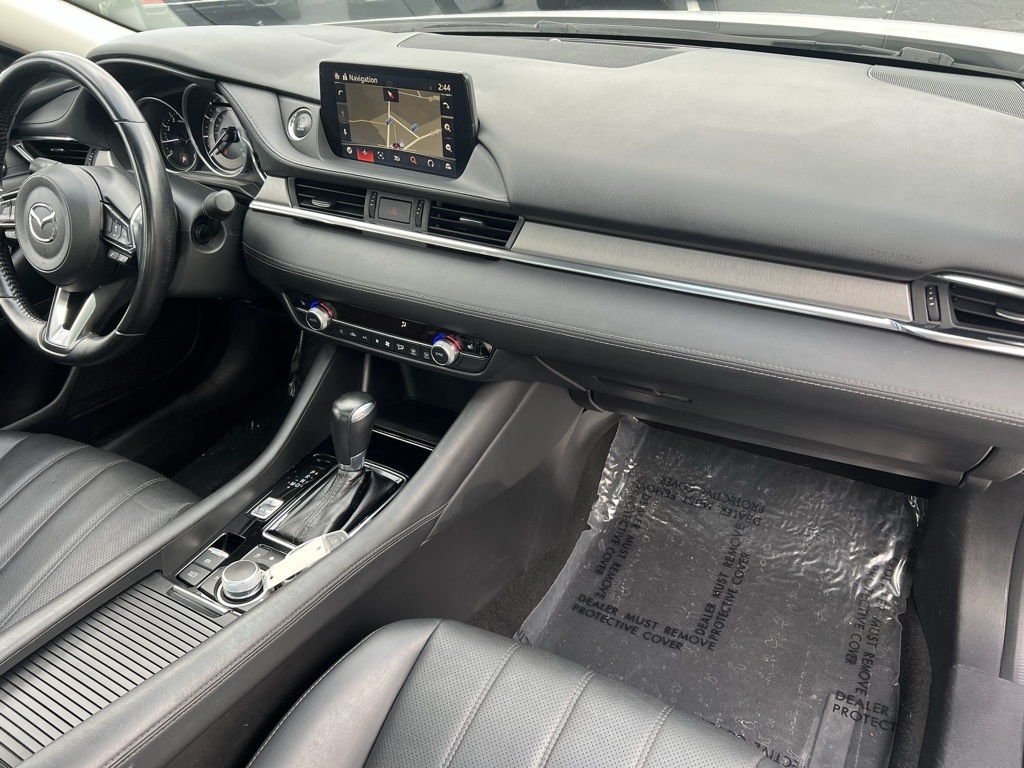 Mazda6 Touring, 4D Sedan, SKYACTIV®-G 2.5L I4 DOHC 16V, 6-Speed Automatic, FWD, Snowflake White Pearl Mica, Black Artificial Leather, 3-Level Heated Front Sport Bucket Seats, 4-Wheel Disc Brakes, 6 Speakers, ABS brakes, Air Conditioning, Alloy wheels, AM/FM radio, Anti-whiplash front head restraints, AppLink/Apple CarPlay and Android Auto, Auto High-beam Headlights, Automatic temperature control, Brake assist, Bumpers: body-color, Compass, Delay-off headlights, Driver door bin, Driver vanity mirror, Dual front impact airbags, Dual front side impact airbags, Electronic Stability Control, Emergency communication system: MAZDA CONNECT, Exterior Parking Camera Rear, Four wheel independent suspension, Front anti-roll bar, Front Bucket Seats, Front Center Armrest w/Storage, Front dual zone A/C, Front reading lights, Fully automatic headlights, Heated front seats, Illuminated entry, Leather Shift Knob, Leatherette Seat Trim, Low tire pressure warning, MAZDA CONNECT Infotainment System Voice Command, Occupant sensing airbag, Outside temperature display, Overhead airbag, Overhead console, Panic alarm, Passenger door bin, Passenger vanity mirror, Power door mirrors, Power driver seat, Power moonroof, Power steering, Power windows, Radio data system, Radio: AM/FM/HD, Rain sensing wipers, Rear anti-roll bar, Rear reading lights, Rear seat center armrest, Rear window defroster, Remote keyless entry, Snowflake White Pearl Mica Paint Charge, Speed control, Speed-sensing steering, Split folding rear seat, Steering wheel mounted audio controls, Tachometer, Telescoping steering wheel, Tilt steering wheel, Traction control, Trip computer, Turn signal indicator mirrors, Variably intermittent wipers, Wheels: 19" x 7.5J w/Gun Metallic Finish, Mazda6 Touring, 4D Sedan, SKYACTIV®-G 2.5L I4 DOHC 16V, 6-Speed Automatic, FWD, Snowflake White Pearl Mica, Black Artificial Leather.