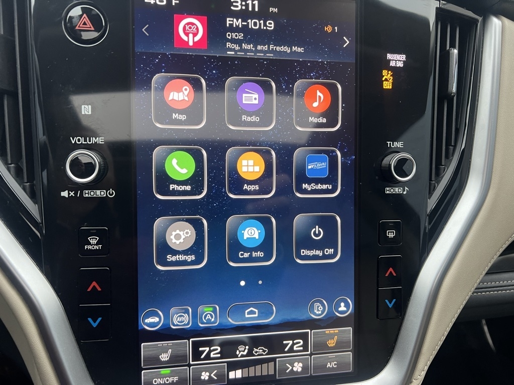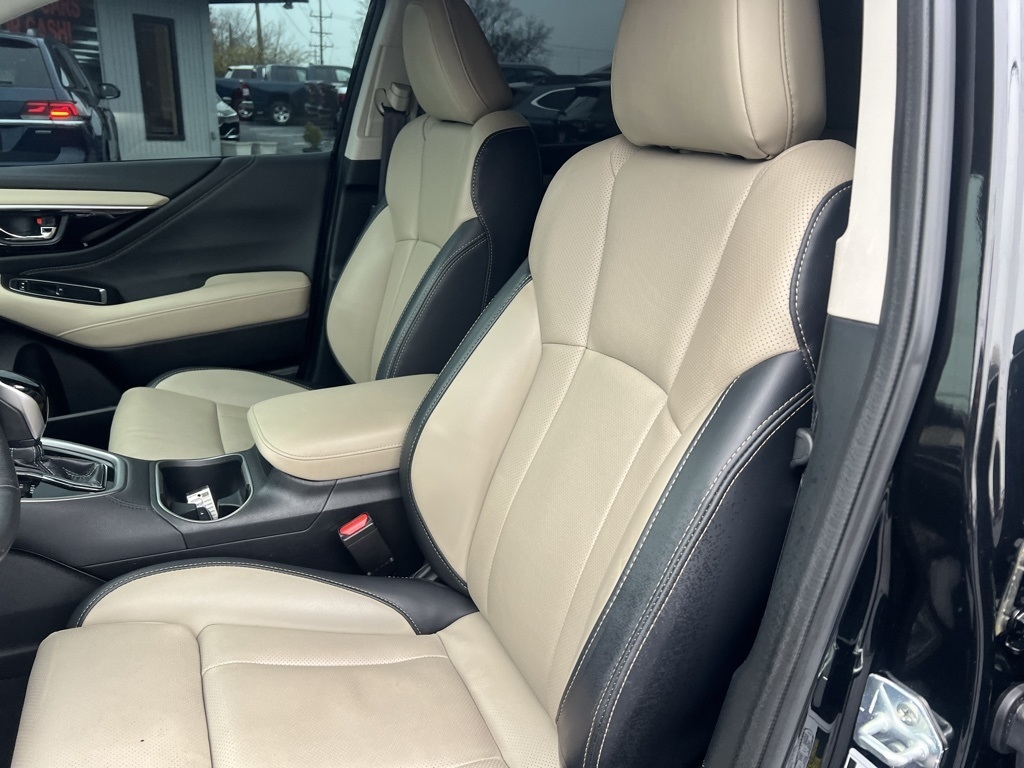 Outback Limited, 4D Sport Utility, 2.5L 4-Cylinder DOHC 16V, CVT Lineartronic, AWD, Crystal Black Silica, Ivory Leather, 12 Speakers, 3.90 Axle Ratio, 4-Wheel Disc Brakes, ABS brakes, Air Conditioning, All-Weather Floor Liners, Alloy wheels, AM/FM radio: SiriusXM, Auto High-beam Headlights, Auto-Dimming Exterior Mirror w/Approach Light, Auto-dimming Rear-View mirror, Automatic temperature control, Brake assist, Bumpers: body-color, Compass, Driver door bin, Driver vanity mirror, DriverFocus (Driver Monitoring System), Dual front impact airbags, Dual front side impact airbags, Electronic Stability Control, Emergency communication system: STARLINK Safety Plus (3-year free trial), Exterior Parking Camera Rear, Four wheel independent suspension, Front anti-roll bar, Front Bucket Seats, Front Center Armrest w/Storage, Front dual zone A/C, Front fog lights, Front reading lights, Fully automatic headlights, Garage door transmitter: HomeLink, harman/kardon® Speakers, Heated door mirrors, Heated Front Bucket Seats, Heated front seats, Heated rear seats, Heated Steering Wheel, Illuminated entry, Knee airbag, Leather Shift Knob, Leather steering wheel, LED Upgrade, Low tire pressure warning, Memory seat, Occupant sensing airbag, Outside temperature display, Overhead airbag, Overhead console, Panic alarm, Passenger door bin, Passenger vanity mirror, Perforated Leather-Trimmed Upholstery, Power door mirrors, Power driver seat, Power Liftgate, Power Moonroof, Power Moonroof & Htd Steering Wheel & Nav System, Power passenger seat, Power steering, Power windows, Radio: Subaru STARLINK 11.6" Multimedia Nav System, Radio: Subaru STARLINK 11.6" Multimedia Plus Sys, Rear anti-roll bar, Rear Bumper Cover, Rear Seat Back Protector, Rear seat center armrest, Rear window defroster, Rear window wiper, Remote keyless entry, Roof rack, Security system, Speed control, Speed-sensing steering, Split folding rear seat, Spoiler, Steering wheel mounted audio controls, Tachometer, Telescoping steering wheel, Tilt steering wheel, Traction control, Trip computer, Turn signal indicator mirrors, Variably intermittent wipers, Wheels: 18" x 7J Black Aluminum-Alloy, Outback Limited, 4D Sport Utility, 2.5L 4-Cylinder DOHC 16V, CVT Lineartronic, AWD, Crystal Black Silica, Ivory Leather.