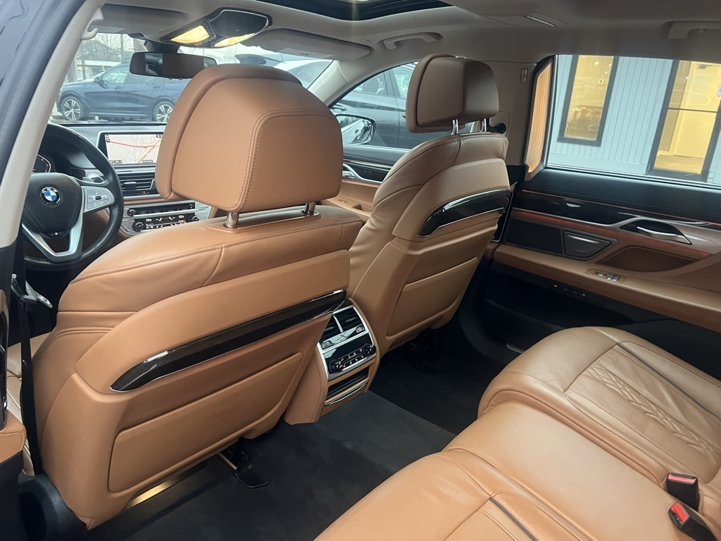 7 Series 740i xDrive, 4D Sedan, 3.0L I6 DOHC 24V TwinPower Turbo, 8-Speed Automatic, AWD, Black Sapphire Metallic, Cognac Leather, Executive Package, Luxury Rear Seating Package, Premium Package, 16 Speakers, 4-Wheel Disc Brakes, 7" Touch Command Tablet, ABS brakes, Adaptive suspension, Air Conditioning, Alloy wheels, AM/FM radio: SiriusXM, Anti-whiplash front head restraints, Apple CarPlay & Android Auto Compatibility, Auto High-beam Headlights, Auto tilt-away steering wheel, Auto-dimming door mirrors, Auto-dimming Rear-View mirror, Auto-leveling suspension, Automatic temperature control, Brake assist, Bumpers: body-color, Ceramic Controls, Connected Package Pro, ConnectedDrive Services, Dakota Leather Upholstery, Delay-off headlights, Door auto-latch, Drive Recorder, Driver door bin, Driver vanity mirror, Dual front impact airbags, Dual front side impact airbags, Electronic Stability Control, Emergency communication system: BMW Assist eCall, Four wheel independent suspension, Front anti-roll bar, Front Bucket Seats, Front Center Armrest, Front dual zone A/C, Front reading lights, Front Ventilated Seats, Fully automatic headlights, Garage door transmitter, Genuine wood console insert, Genuine wood dashboard insert, Genuine wood door panel insert, Gesture Control, harman/kardon Surround Sound System, harman/kardon® Speakers, Head restraints memory, Head-Up Display, Heated door mirrors, Heated front seats, Heated Front Seats, Armrests & Steering Wheel, Heated steering wheel, Heated Steering Wheel w/Fr & Rr Seats & Armrests, Illuminated entry, Instrument Panel w/Nappa Leather Finish, Knee airbag, Leather Shift Knob, Leather steering wheel, Low tire pressure warning, Memory seat, Multi-Contour Seats, Navigation System, Occupant sensing airbag, Outside temperature display, Overhead airbag, Overhead console, Panic alarm, Panoramic Moonroof Delete, Panoramic Sky Lounge LED Roof, Passenger door bin, Passenger vanity mirror, Perforated Nappa Leather Upholstery, Power adjustable front head restraints, Power door mirrors, Power driver seat, Power moonroof: Panorama, Power passenger seat, Power Rear Sunshade & Rear Side Window Shades, Power steering, Power windows, Radio data system, Radio: AM/FM/HD, Rain sensing wipers, Rear air conditioning, Rear anti-roll bar, Rear Comfort Seats, Rear dual zone A/C, Rear Massaging Seats, Rear reading lights, Rear seat center armrest, Rear Ventilated Seats, Rear Window Blind, Rear window defroster, Remote keyless entry, Security system, SiriusXM w/360L, Speed control, Speed-sensing steering, Speed-Sensitive Wipers, Sport steering wheel, Steering wheel memory, Steering wheel mounted audio controls, Tachometer, Telescoping steering wheel, Tilt steering wheel, Traction control, Trip computer, Variably intermittent wipers, Weather band radio, Wheels: 18" x 8.0" V-Spoke Style 642, WiFi Hotspot, Wireless Charging, 7 Series 740i xDrive, 4D Sedan, 3.0L I6 DOHC 24V TwinPower Turbo, 8-Speed Automatic, AWD, Black Sapphire Metallic, Cognac Leather, Executive Package, Luxury Rear Seating Package, Premium Package.