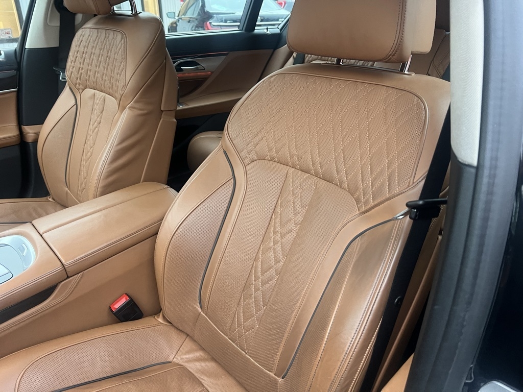 7 Series 740i xDrive, 4D Sedan, 3.0L I6 DOHC 24V TwinPower Turbo, 8-Speed Automatic, AWD, Black Sapphire Metallic, Cognac Leather, Executive Package, Luxury Rear Seating Package, Premium Package, 16 Speakers, 4-Wheel Disc Brakes, 7" Touch Command Tablet, ABS brakes, Adaptive suspension, Air Conditioning, Alloy wheels, AM/FM radio: SiriusXM, Anti-whiplash front head restraints, Apple CarPlay & Android Auto Compatibility, Auto High-beam Headlights, Auto tilt-away steering wheel, Auto-dimming door mirrors, Auto-dimming Rear-View mirror, Auto-leveling suspension, Automatic temperature control, Brake assist, Bumpers: body-color, Ceramic Controls, Connected Package Pro, ConnectedDrive Services, Dakota Leather Upholstery, Delay-off headlights, Door auto-latch, Drive Recorder, Driver door bin, Driver vanity mirror, Dual front impact airbags, Dual front side impact airbags, Electronic Stability Control, Emergency communication system: BMW Assist eCall, Four wheel independent suspension, Front anti-roll bar, Front Bucket Seats, Front Center Armrest, Front dual zone A/C, Front reading lights, Front Ventilated Seats, Fully automatic headlights, Garage door transmitter, Genuine wood console insert, Genuine wood dashboard insert, Genuine wood door panel insert, Gesture Control, harman/kardon Surround Sound System, harman/kardon® Speakers, Head restraints memory, Head-Up Display, Heated door mirrors, Heated front seats, Heated Front Seats, Armrests & Steering Wheel, Heated steering wheel, Heated Steering Wheel w/Fr & Rr Seats & Armrests, Illuminated entry, Instrument Panel w/Nappa Leather Finish, Knee airbag, Leather Shift Knob, Leather steering wheel, Low tire pressure warning, Memory seat, Multi-Contour Seats, Navigation System, Occupant sensing airbag, Outside temperature display, Overhead airbag, Overhead console, Panic alarm, Panoramic Moonroof Delete, Panoramic Sky Lounge LED Roof, Passenger door bin, Passenger vanity mirror, Perforated Nappa Leather Upholstery, Power adjustable front head restraints, Power door mirrors, Power driver seat, Power moonroof: Panorama, Power passenger seat, Power Rear Sunshade & Rear Side Window Shades, Power steering, Power windows, Radio data system, Radio: AM/FM/HD, Rain sensing wipers, Rear air conditioning, Rear anti-roll bar, Rear Comfort Seats, Rear dual zone A/C, Rear Massaging Seats, Rear reading lights, Rear seat center armrest, Rear Ventilated Seats, Rear Window Blind, Rear window defroster, Remote keyless entry, Security system, SiriusXM w/360L, Speed control, Speed-sensing steering, Speed-Sensitive Wipers, Sport steering wheel, Steering wheel memory, Steering wheel mounted audio controls, Tachometer, Telescoping steering wheel, Tilt steering wheel, Traction control, Trip computer, Variably intermittent wipers, Weather band radio, Wheels: 18" x 8.0" V-Spoke Style 642, WiFi Hotspot, Wireless Charging, 7 Series 740i xDrive, 4D Sedan, 3.0L I6 DOHC 24V TwinPower Turbo, 8-Speed Automatic, AWD, Black Sapphire Metallic, Cognac Leather, Executive Package, Luxury Rear Seating Package, Premium Package.