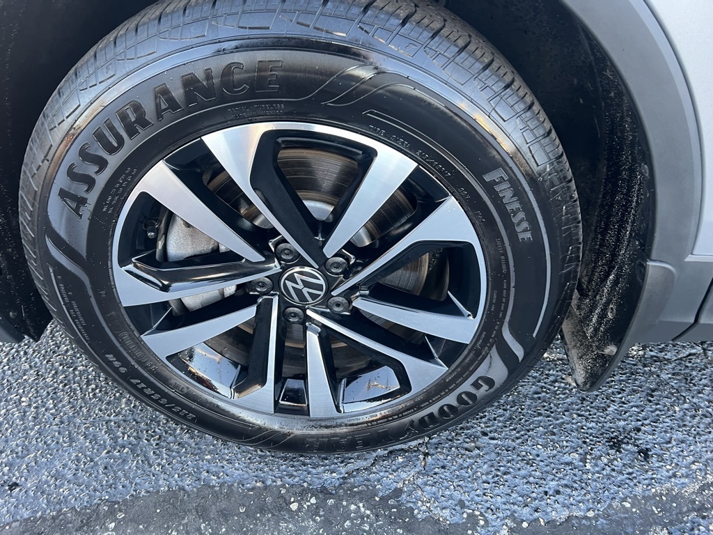 Tiguan 2.0T S, 4D Sport Utility, 2.0L TSI DOHC, 8-Speed Automatic with Tiptronic, FWD, Silver, Black Cloth, 3.33 Axle Ratio, 3rd row seats: bench, 4-Wheel Disc Brakes, 4-Wheel Independent Suspension, 6 Speakers, ABS brakes, Air Conditioning, Alloy wheels, AM/FM radio, Brake assist, Bumpers: body-color, Cloth Seating Surfaces, Compass, Delay-off headlights, Driver door bin, Driver vanity mirror, Dual front impact airbags, Dual front side impact airbags, Electronic Stability Control, Emergency communication system: VW Car-Net Safe & Secure 5-year, Exterior Parking Camera Rear, Four wheel independent suspension, Front anti-roll bar, Front Bucket Seats, Front Center Armrest, Front reading lights, Fully automatic headlights, Heated door mirrors, Heated Front Seats, Heated front seats, Illuminated entry, Leather Shift Knob, Low tire pressure warning, Occupant sensing airbag, Outside temperature display, Overhead airbag, Overhead console, Panic alarm, Passenger door bin, Passenger vanity mirror, Power door mirrors, Power steering, Power windows, Radio data system, Rain sensing wipers, Rear anti-roll bar, Rear reading lights, Rear seat center armrest, Rear window defroster, Rear window wiper, Remote keyless entry, Speed control, Speed-sensing steering, Split folding rear seat, Spoiler, Steering wheel mounted audio controls, Tachometer, Telescoping steering wheel, Tilt steering wheel, Traction control, Trip computer, Turn signal indicator mirrors, Variably intermittent wipers, Wheels: 17" 2-Tone Machined Twin 5-Spoke Alloy, Tiguan 2.0T S, 4D Sport Utility, 2.0L TSI DOHC, 8-Speed Automatic with Tiptronic, FWD, Silver, Black Cloth.