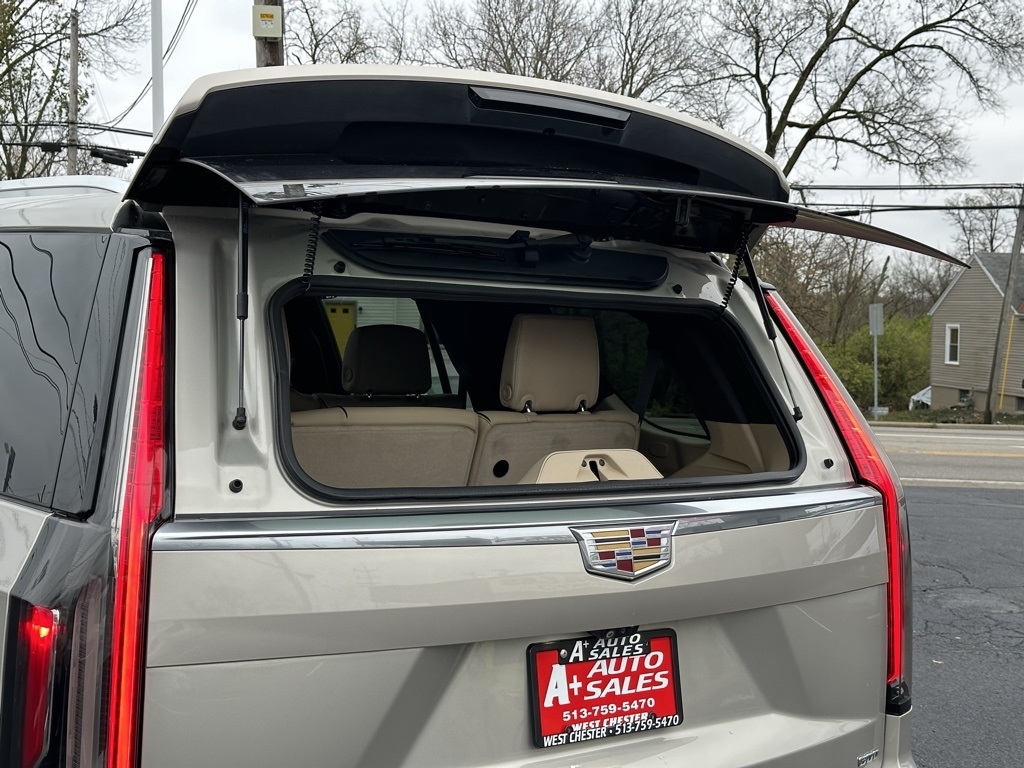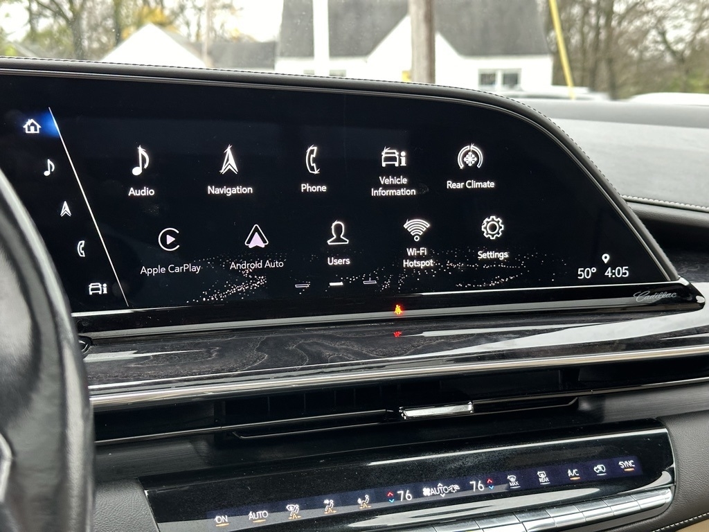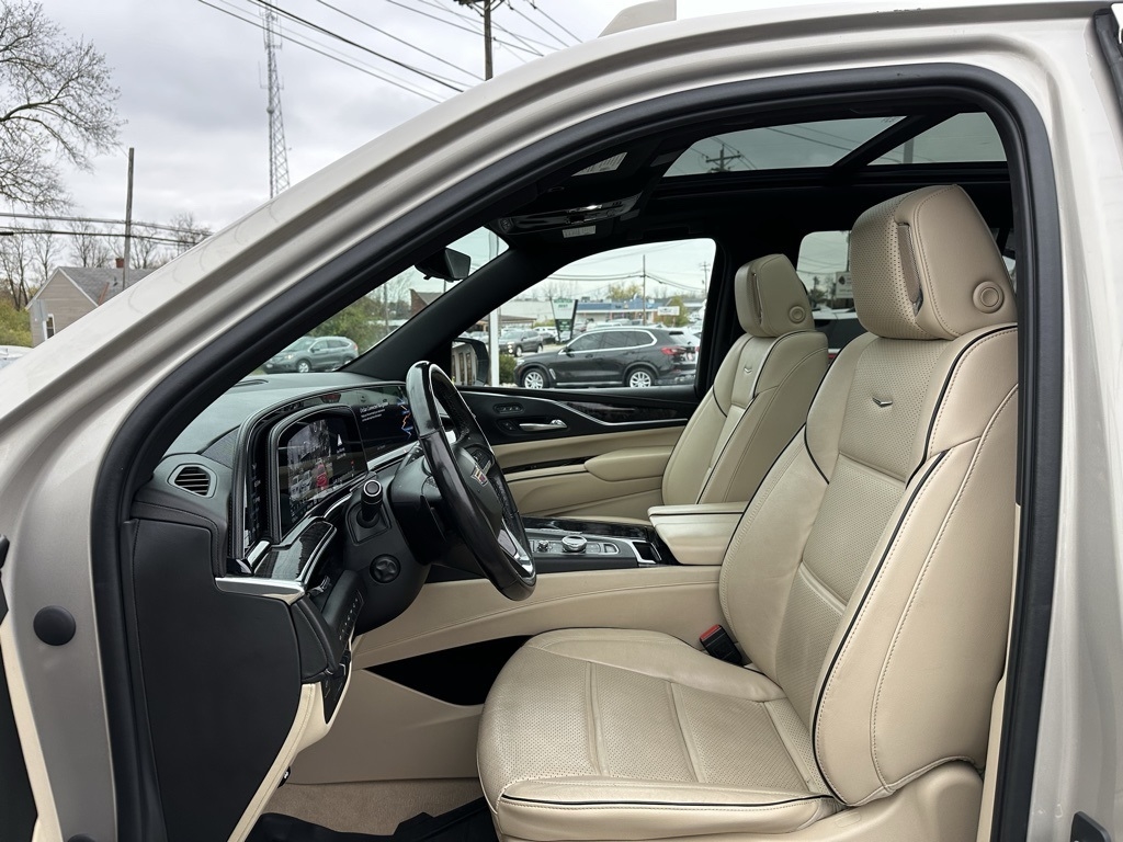 4WD, Parchment With Jet Black Accents Leather, Heavy-Duty Trailering Package, 16.9" Diagonal OLED Infotainment Screen, 19 Speakers, 1st 2nd & 3rd Row All-Weather Floor Mats (LPO), 2-Presets Memory For Driver Seat Adjuster, 2nd Row 60/40 Split-Folding Power Release Bench, 3.23 Axle Ratio, 3rd row seats: split-bench, 4-Way Power Driver Lumbar Seat Adjuster, 4-Way Power Front Passenger Lumbar Seat Adjuster, 4-Wheel Disc Brakes, 8-Way Power Driver Seat Adjuster, 8-Way Power Front Passenger Seat Adjuster, ABS brakes, Adaptive Cruise Control, Air Conditioning, Air Ionizer, Air Ride Adaptive Suspension, AKG Studio 19-Speaker Audio System, All-Weather Integrated Cargo Liner (LPO), Alloy wheels, AM/FM radio: SiriusXM with 360L, Apple CarPlay/Android Auto, Audio memory, Auto High-beam Headlights, Auto tilt-away steering wheel, Auto-dimming door mirrors, Auto-dimming Rear-View mirror, Automatic Emergency Braking, Automatic Seat Belt Tightening, Automatic temperature control, Brake assist, Bumpers: body-color, Compass, Delay-off headlights, Door Lock & Latch Shields, Driver Assist Tech Package, Driver door bin, Driver vanity mirror, Dual front impact airbags, Dual front side impact airbags, Electronic Cruise Control w/Set & Resume Speed, Electronic Limited-Slip Differential, Electronic Stability Control, Emergency communication system: OnStar and Cadillac connected services capable, Enhanced Automatic Emergency Braking, Enhanced Automatic Parking Assist, Four wheel independent suspension, Front anti-roll bar, Front Bucket Seats, Front Center Armrest w/Storage, Front dual zone A/C, Front License Plate Bracket, Front reading lights, Fully automatic headlights, Garage door transmitter, Glass Breakage Sensor, HD Radio, Heads-Up Display, Heated & Ventilated Driver & Front Passenger Seats, Heated door mirrors, Heated Driver & Front Passenger Seats, Heated front seats, Heated rear seats, Heated steering wheel, Hitch Guidance w/Hitch View, Illuminated entry, Illuminating Front & Rear Sill Plates, In-Vehicle Trailering System App, Integrated Trailer Brake Controller, Interior Protection Package (LPO), Lane Change Alert w/Side Blind Zone Alert, Lane Keep Assist w/Lane Departure Warning, Leather Seating Surfaces w/Mini-Chevron Perf Inserts, Leather steering wheel, Low tire pressure warning, Magnetic Ride Control Suspension, Mechanical Limited-Slip Differential, Memory seat, Navigation System, Occupant sensing airbag, Outside temperature display, Overhead airbag, Overhead console, Panic alarm, Passenger door bin, Passenger vanity mirror, Performance Package, Power door mirrors, Power driver seat, Power Liftgate, Power moonroof, Power Panoramic Tilt-Sliding Sunroof, Power passenger seat, Power steering, Power windows, Preferred Equipment Group 1SB, Premium Smooth Ride Suspension, Radio data system, Radio: AM/FM/SiriusXM w/Navigation, Rain sensing wipers, Rear air conditioning, Rear anti-roll bar, Rear Camera Mirror, Rear Camera Mirror Washer, Rear Cross Traffic Alert, Rear reading lights, Rear window defroster, Rear window wiper, Reconfigurable Full-Color Head-Up Display, Remote keyless entry, Reverse Automatic Braking, Roof rack: rails only, Running Board Assist Steps, Security system, SiriusXM w/360L, Soft Closing Front & Rear Doors, Speed control, Split folding rear seat, Spoiler, Steering wheel memory, Steering wheel mounted audio controls, Tachometer, Teen Driver, Telescoping steering wheel, Theft-Deterrent Alarm System, Tilt steering wheel, Traction control, Trailer Side Blind Zone Alert, Trip computer, Turn signal indicator mirrors, Variably intermittent wipers, Vehicle Inclination Sensor, Vehicle Interior Movement Sensor, Ventilated front seats, Voltmeter, Wheels: 22" 14-Spoke Alloy w/Polished Finish, Wireless Apple CarPlay/Wireless Android Auto, 4WD, Parchment With Jet Bla